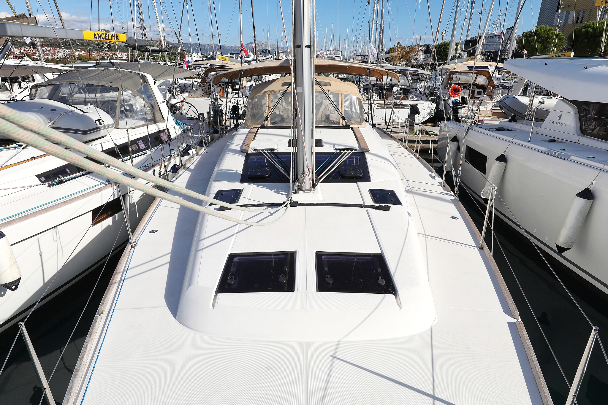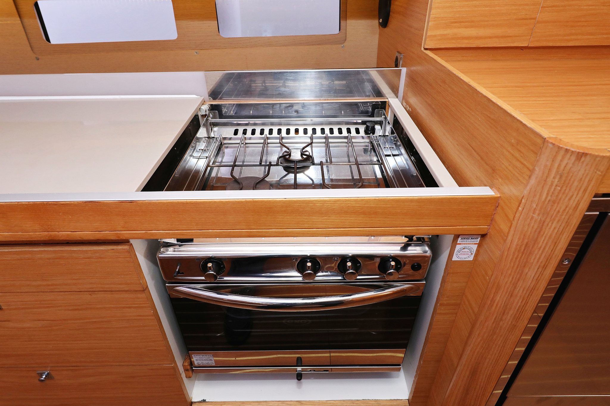 | Outside | 220V shore connection, Bathing platform, Bimini top, Boat hook, Cockpit shower, Refrigerator in cockpit, Cockpit speakers, Cockpit light, Cockpit cushions, Cockpit table, Delta anchor, Electr. anchor windlass, Fender, Mooring lines, Gangway, BBQ, Ball fender, Solar panels, Sprayhood, Sink on cockpit , Teak on bathing platform, Teak in cockpit, Water hose, Winches |