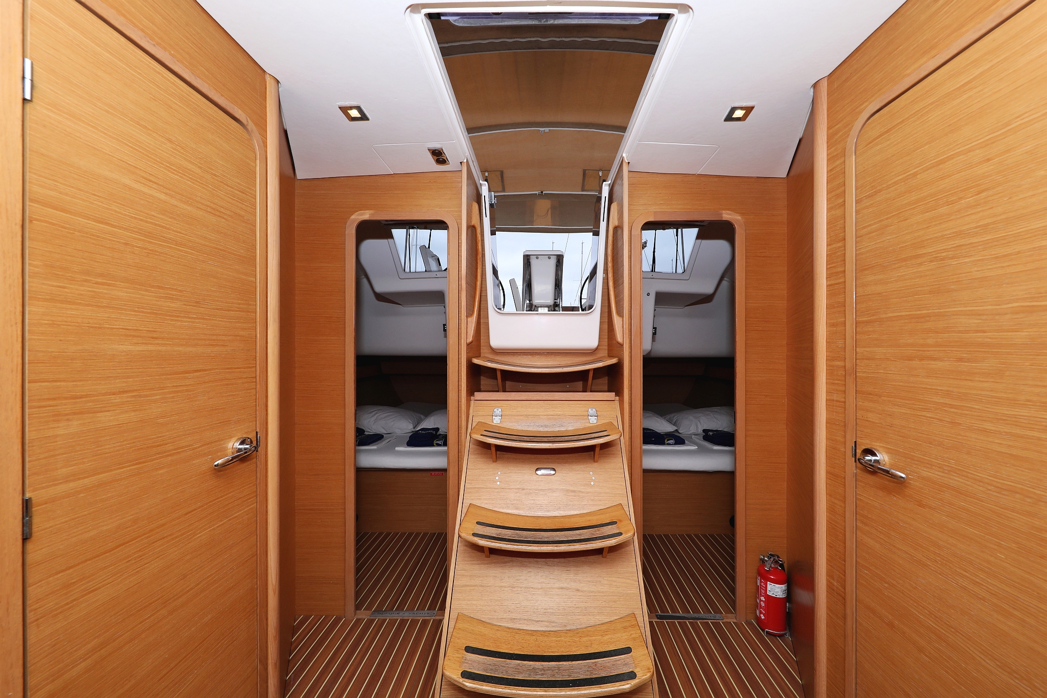 | Navigation | Binoculars, GPS with chart plotter in cockpit, Hand bearing compass, Compass, Navigation set, Nautical charts, Tridata (Log, Echosounder, Windm.), Anemometer |