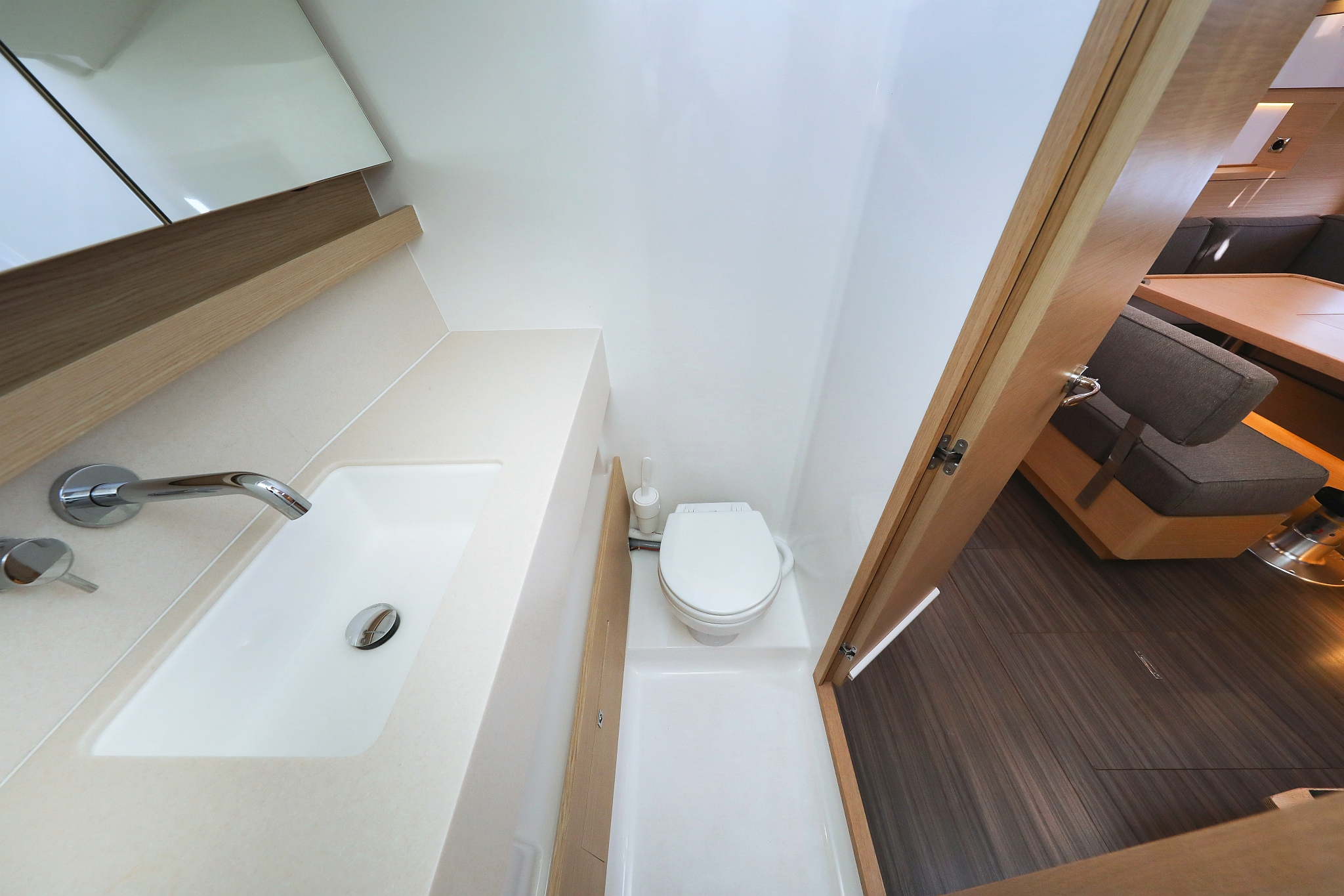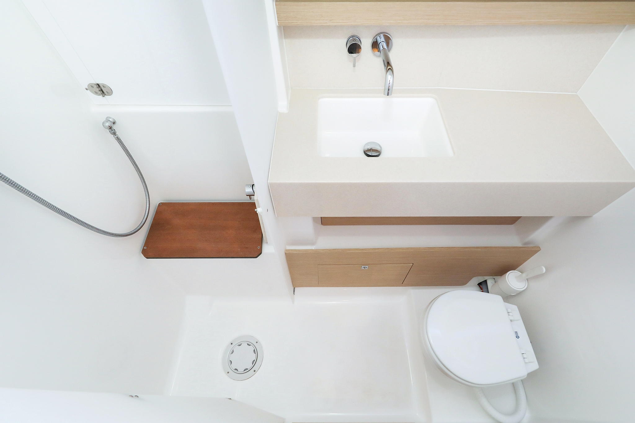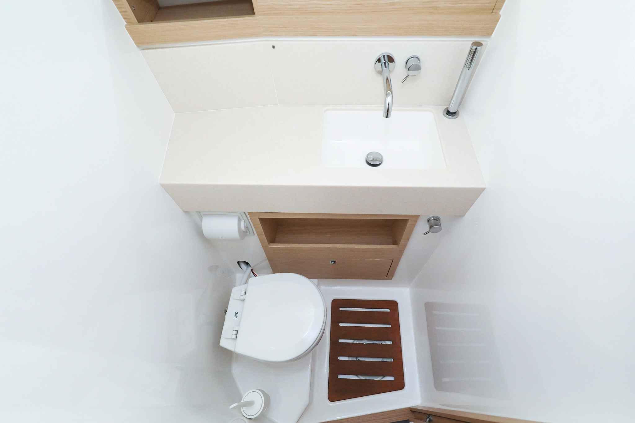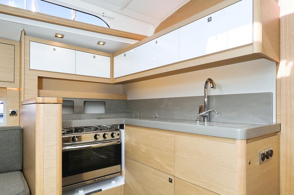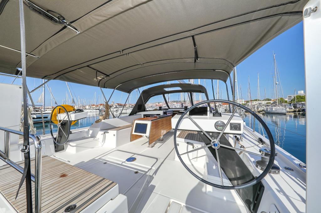 | Outside | 220V shore connection, Anchor with chain, Bathing platform, Bimini top, Boat hook, Cockpit shower, Cockpit speakers, Cockpit cushions, Cockpit table, Fender, Mooring lines, Gangway, BBQ, Solar panels, Sprayhood, Teak in cockpit, Water hose, Winches |