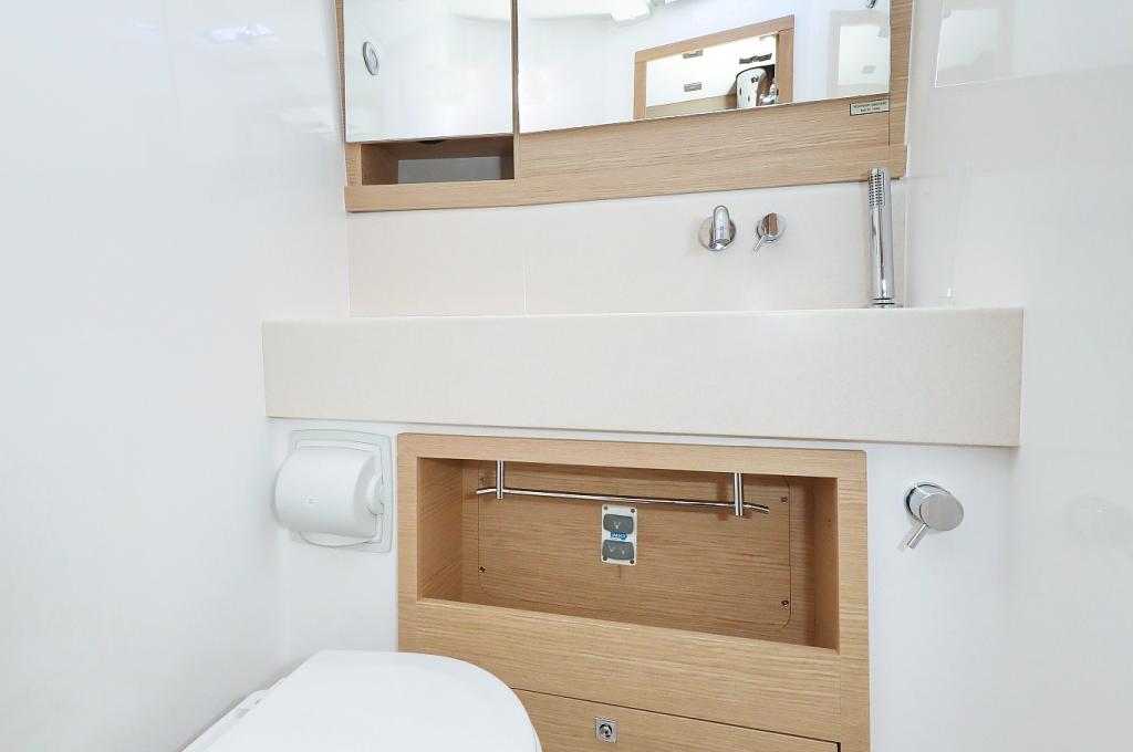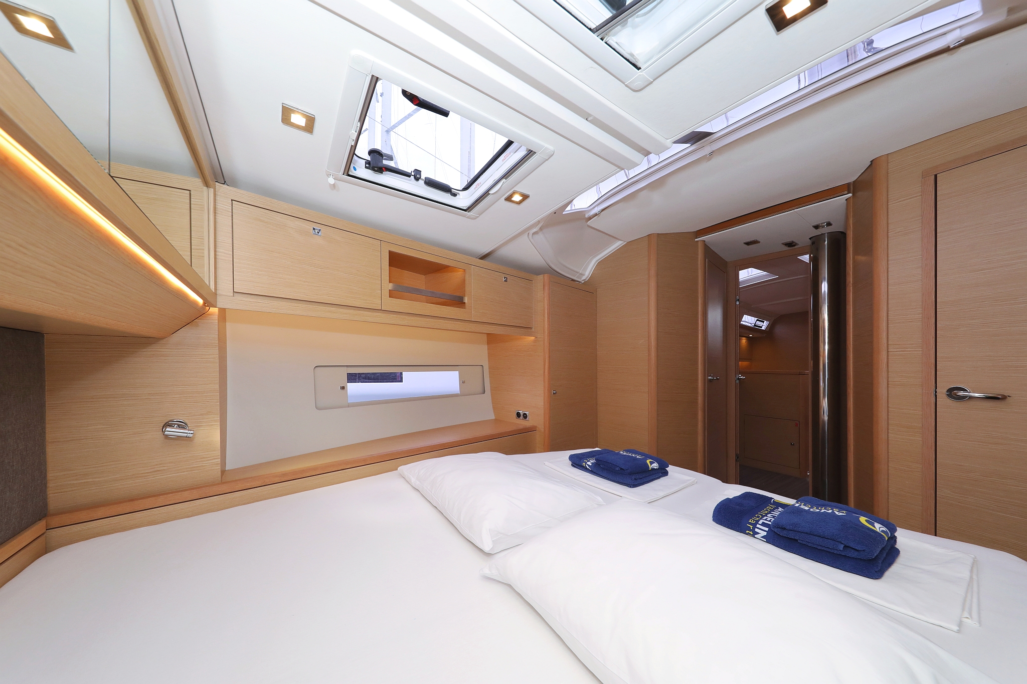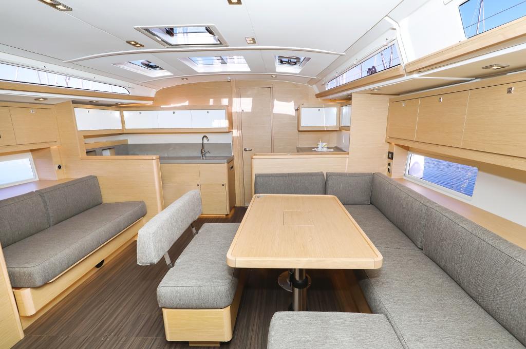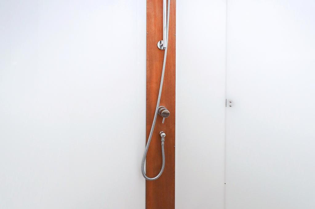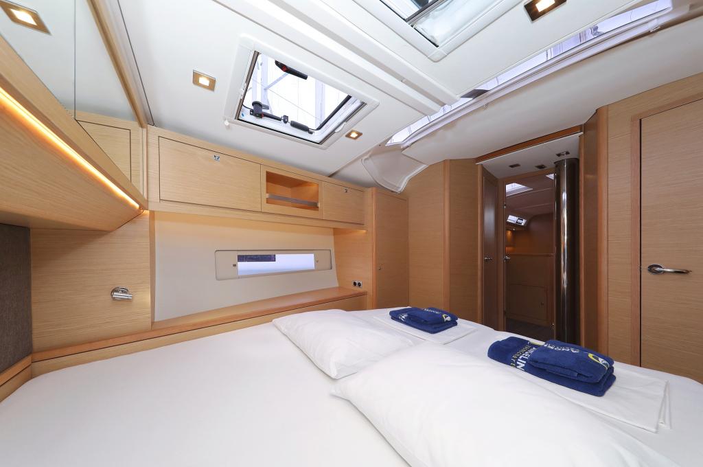 | Outside | 220V shore connection, Anchor with chain, Bathing platform, Bimini top, Boat hook, Cockpit shower, Cockpit speakers, Cockpit cushions, Cockpit table, Fender, Mooring lines, Gangway, BBQ, Solar panels, Sprayhood, Teak in cockpit, Water hose, Winches |