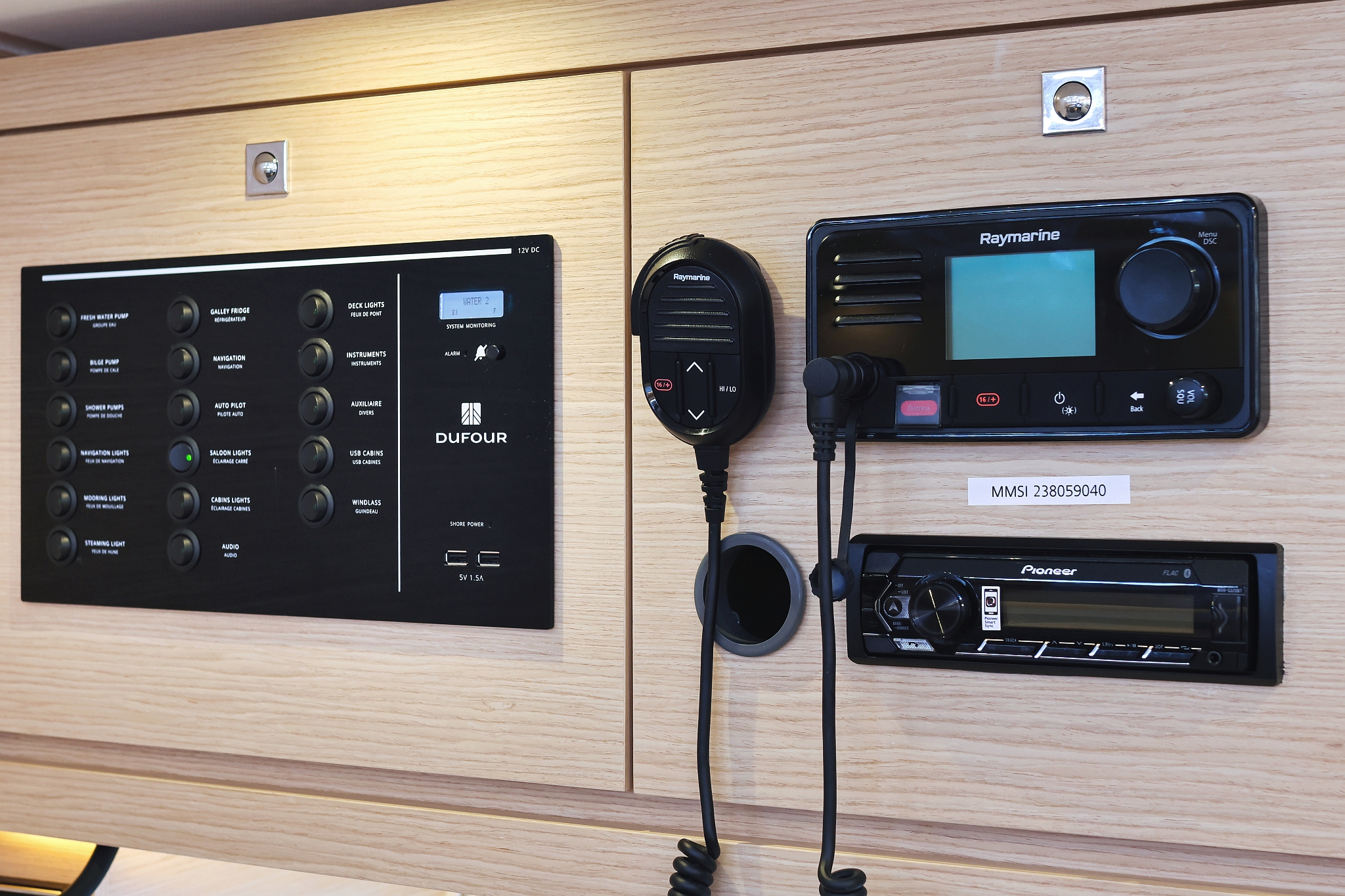 | Safety | Autopilot, Lightning buoy, First aid kit, Tools, Bowthruster, Electr. bilge pump, Solid life vests, Fire extinguisher, Manual bilge pump, Lifebelts, Fog horn, Distress signals, Radar reflector, Life raft, Torchlight, VHF Radio, Second anchor |