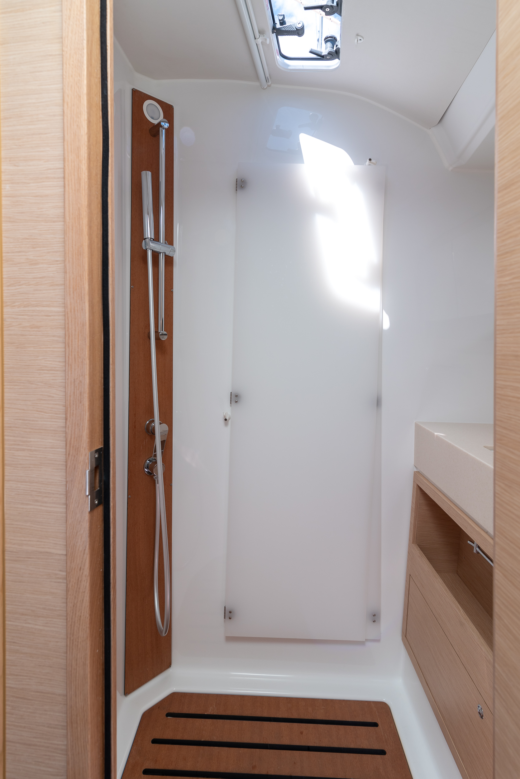 | Outside | 220V shore connection, Anchor with chain, Bathing ladder, Bathing platform, Bimini top, Boat hook, Cockpit shower hot/cold, Cockpit speakers, Cockpit light, Cockpit cushions, Cockpit table, Jerry cans for diesel, Electr. anchor windlass, Fender, BBQ, Sprayhood, Teak in cockpit, Winches |