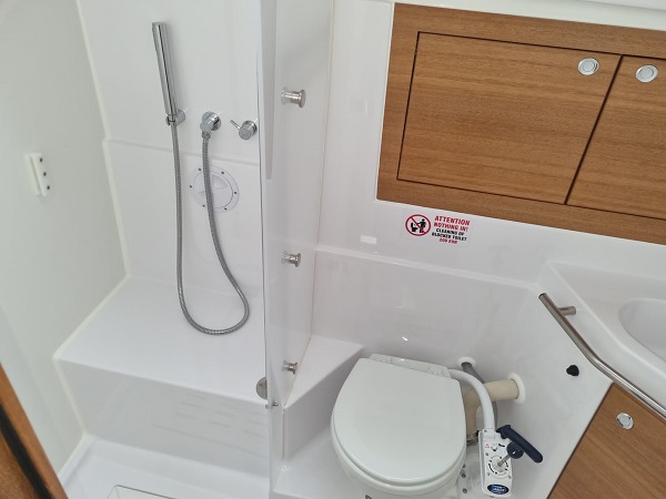 | Outside | 220V shore connection, Outside shower, Bimini top, Cockpit shower, Cockpit table, Electr. anchor windlass, Sprayhood |