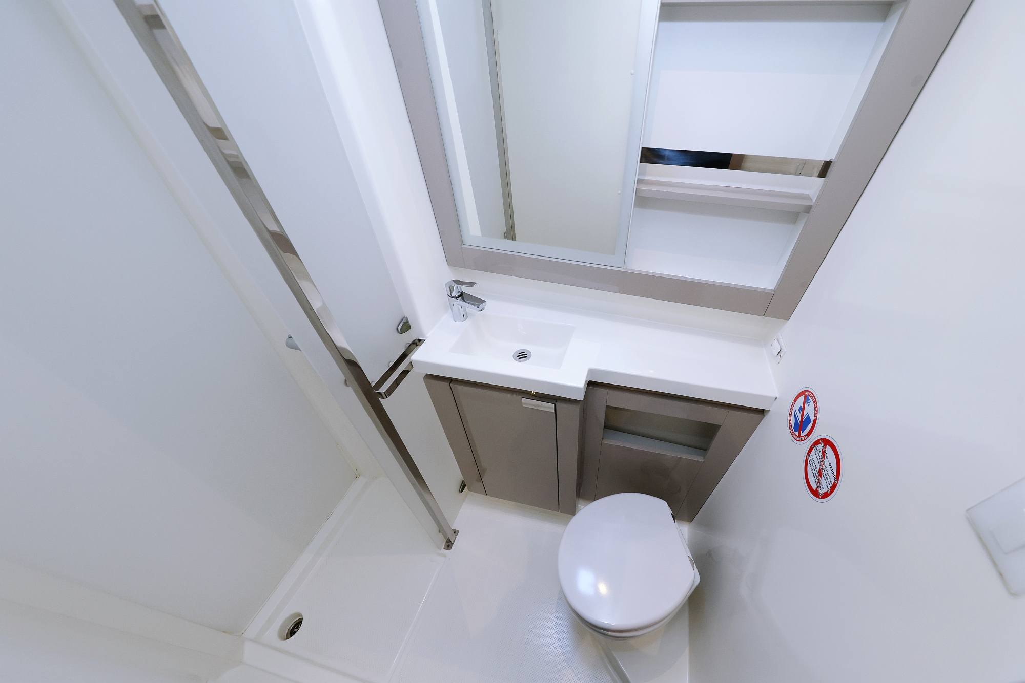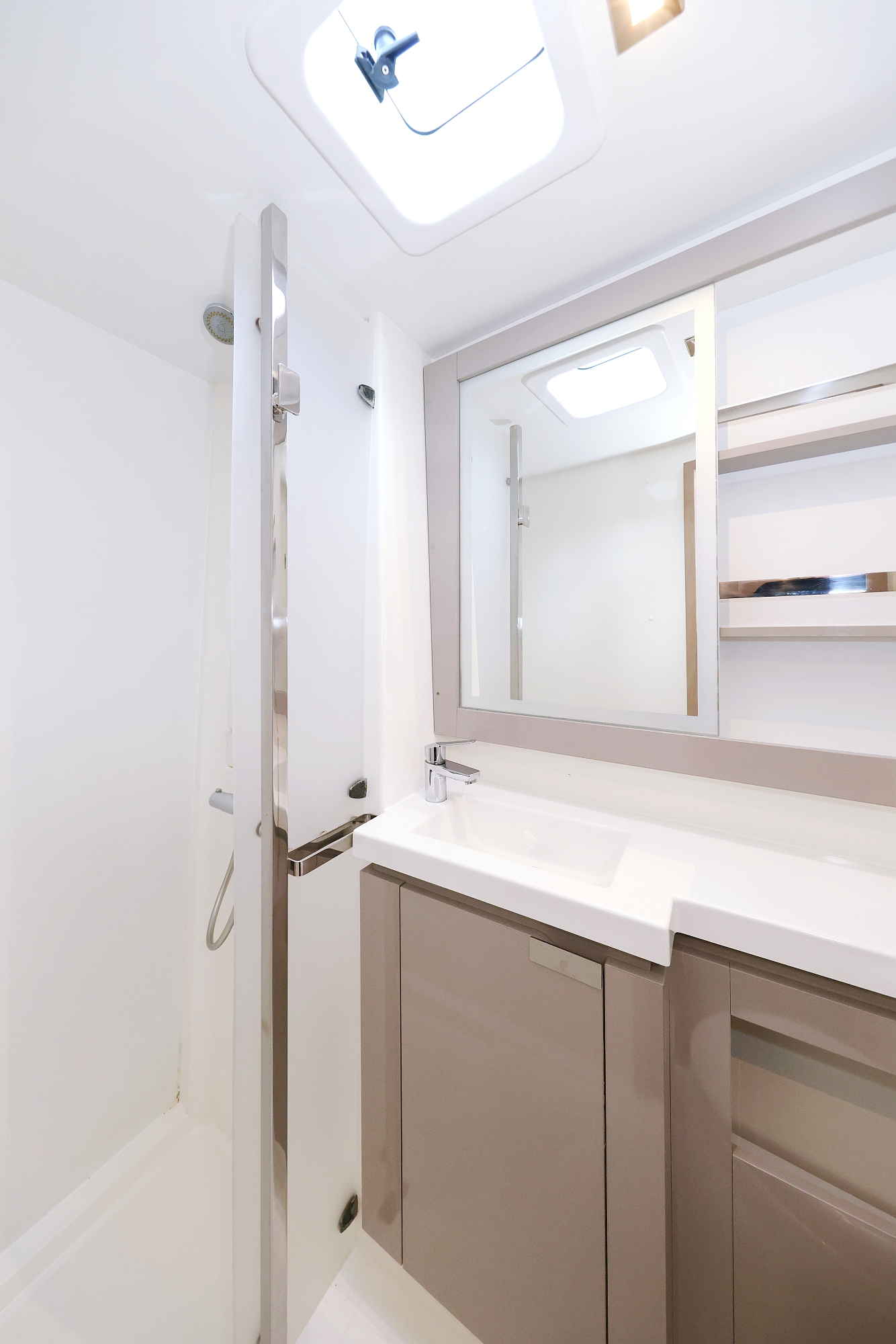 | Inside | 12V/220V sockets, 220V sockets, Oven, Clock, Black water tank, Freezer, Heating, Hi-Fi system, Inverter 12V/220V, Dock A/C 220V (cool&heat), Refrigerator, Battery charger, Shore power cable, Speakers in saloon, Microwave oven, Moka pot, Pantry equipment, Radio with bluetooth, Sink, Kettle |