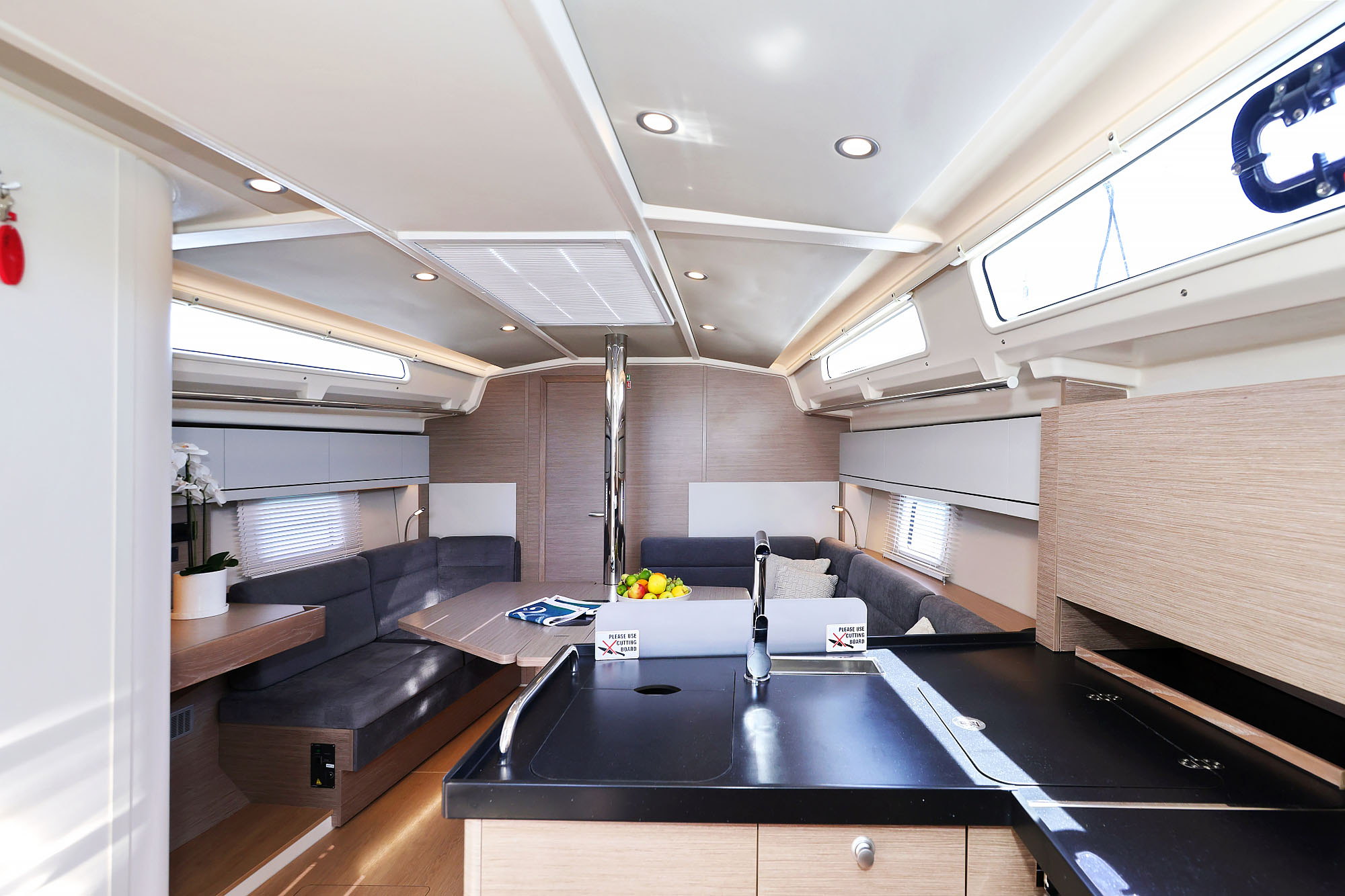 | Outside | Bathing platform, Bimini top, Cockpit shower, Cockpit speakers, Cockpit table, Electr. main sail winch, Sprayhood, Teak in cockpit |