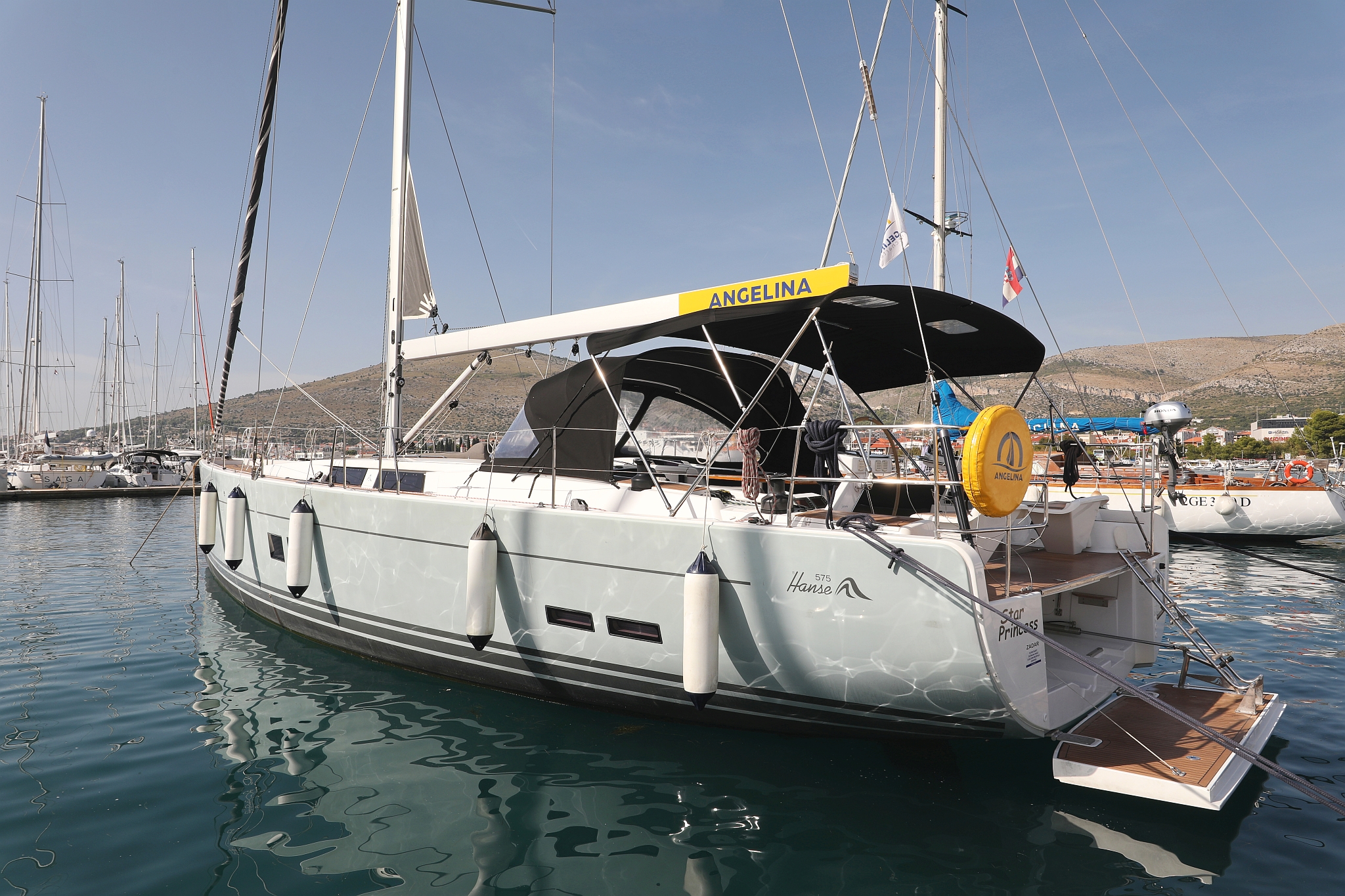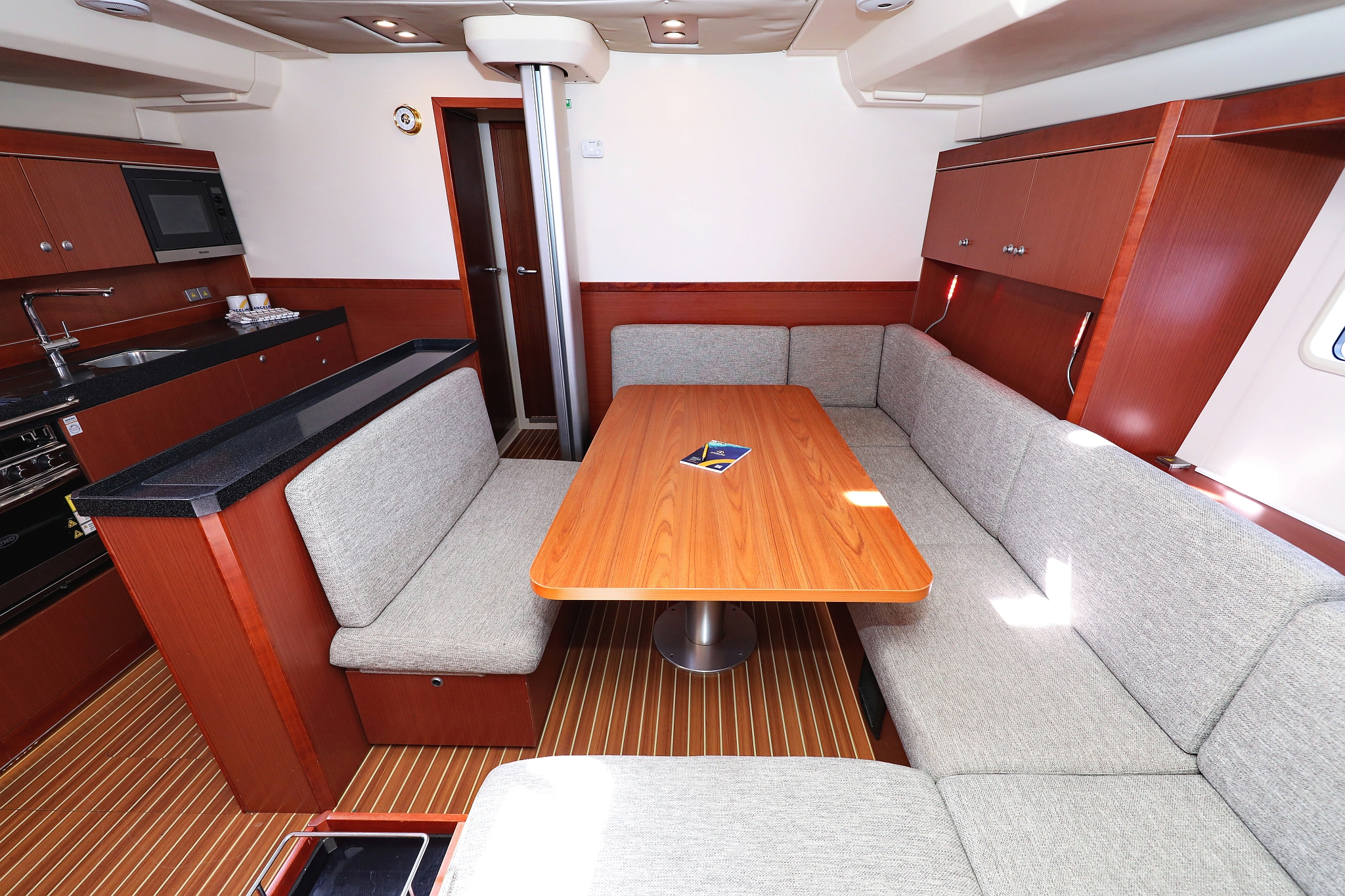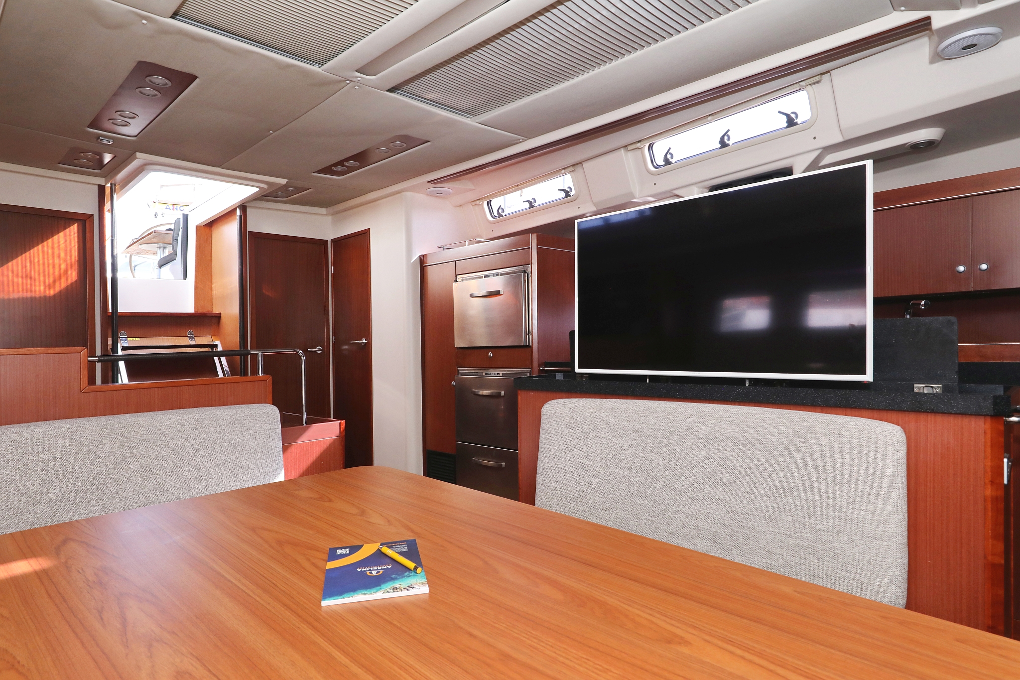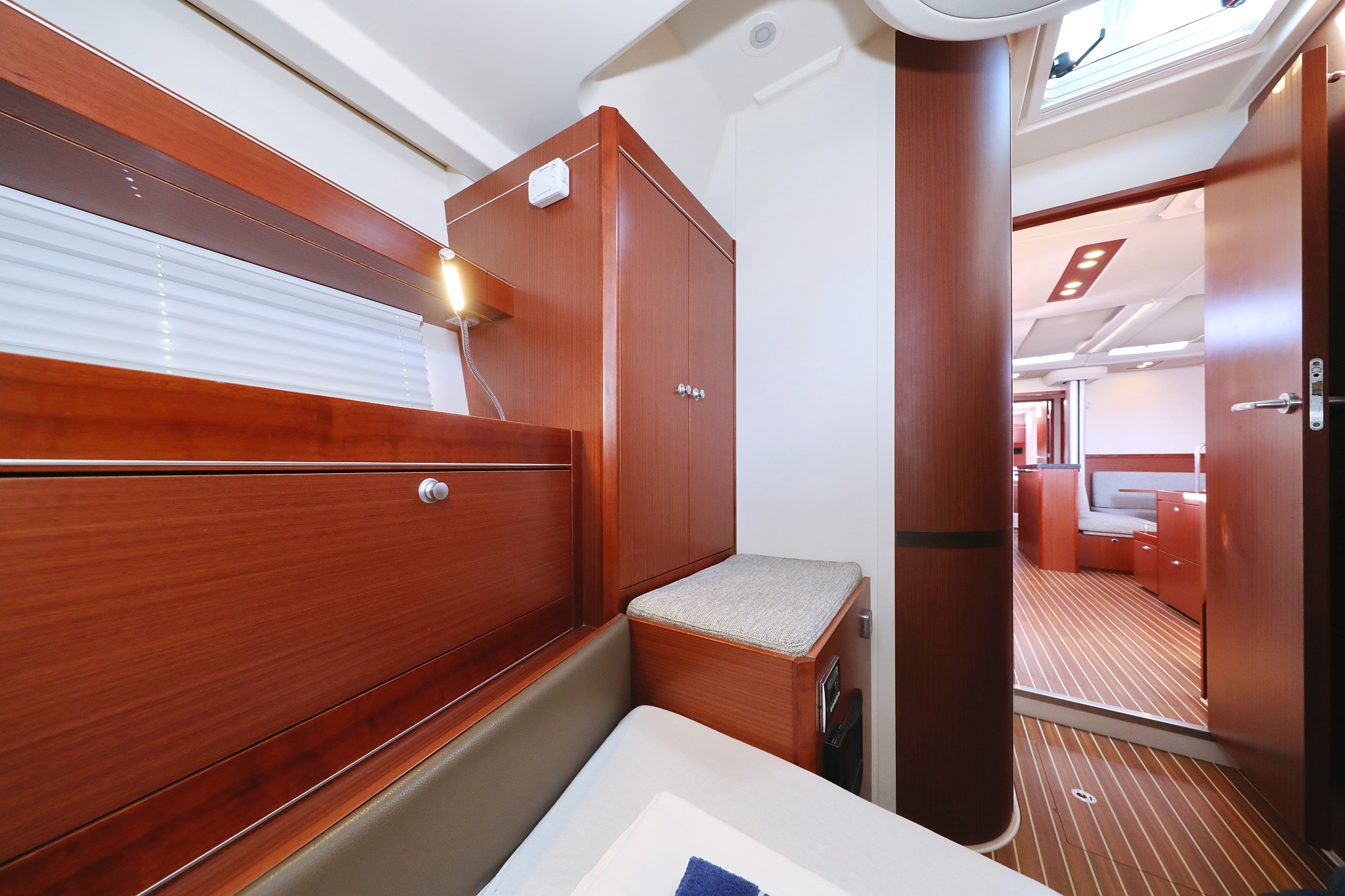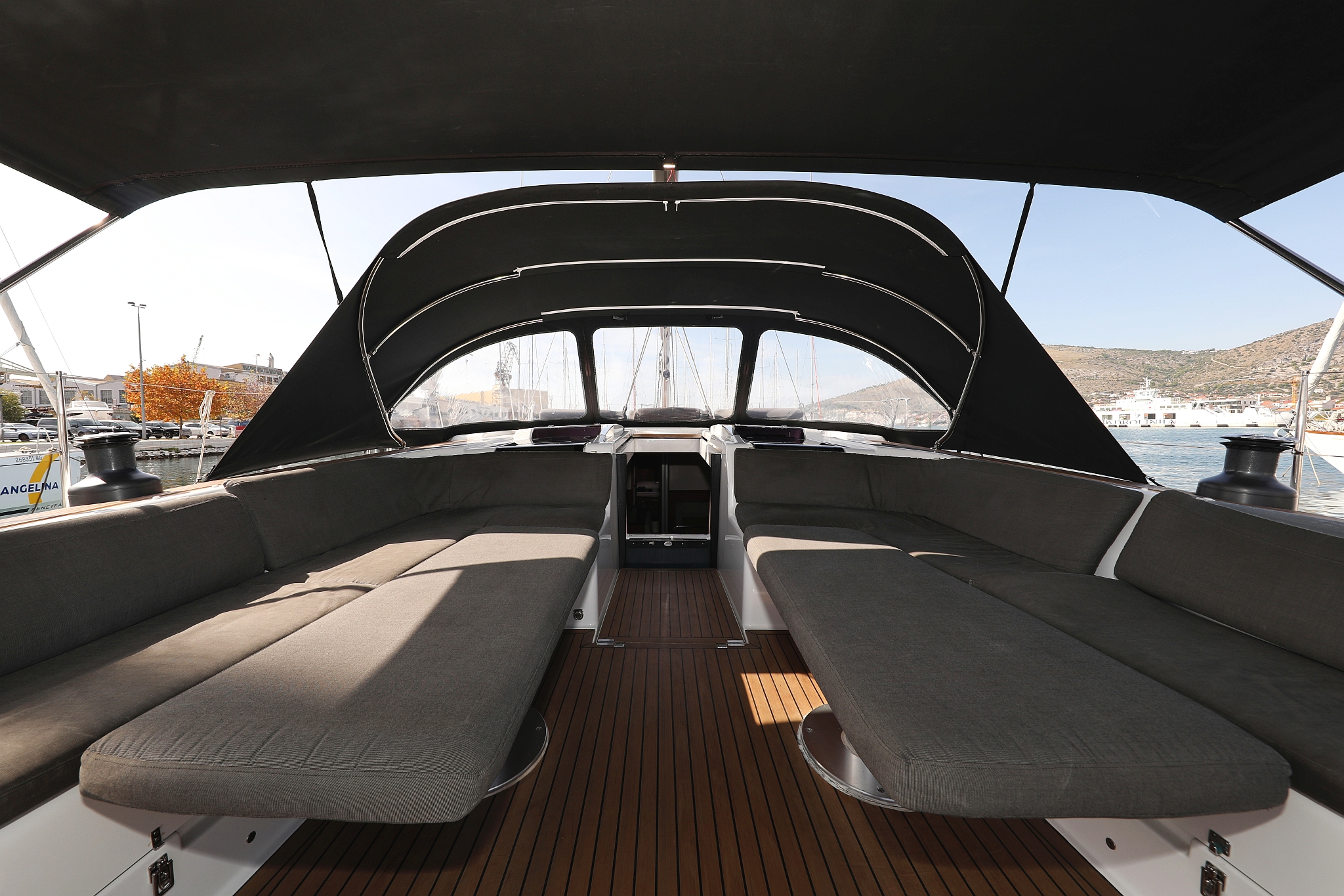 | Outside | 220V shore connection, Bathing platform, Bimini top, Cockpit shower, Cockpit speakers, Cockpit light, Cockpit cushions, Cockpit table, Electr. anchor windlass, Electr. genoa winch, Electr. main sail winch, Fender, Gangway, Ball fender, Sprayhood, Teak in cockpit, Teak deck, LED submarine lights, Winches |