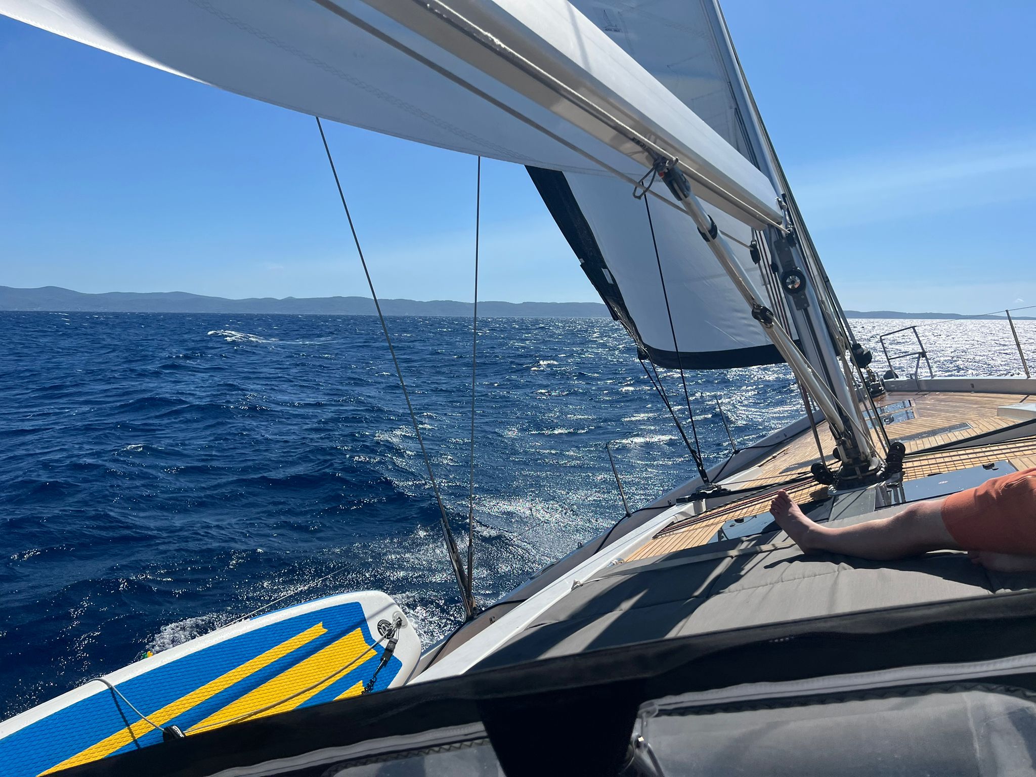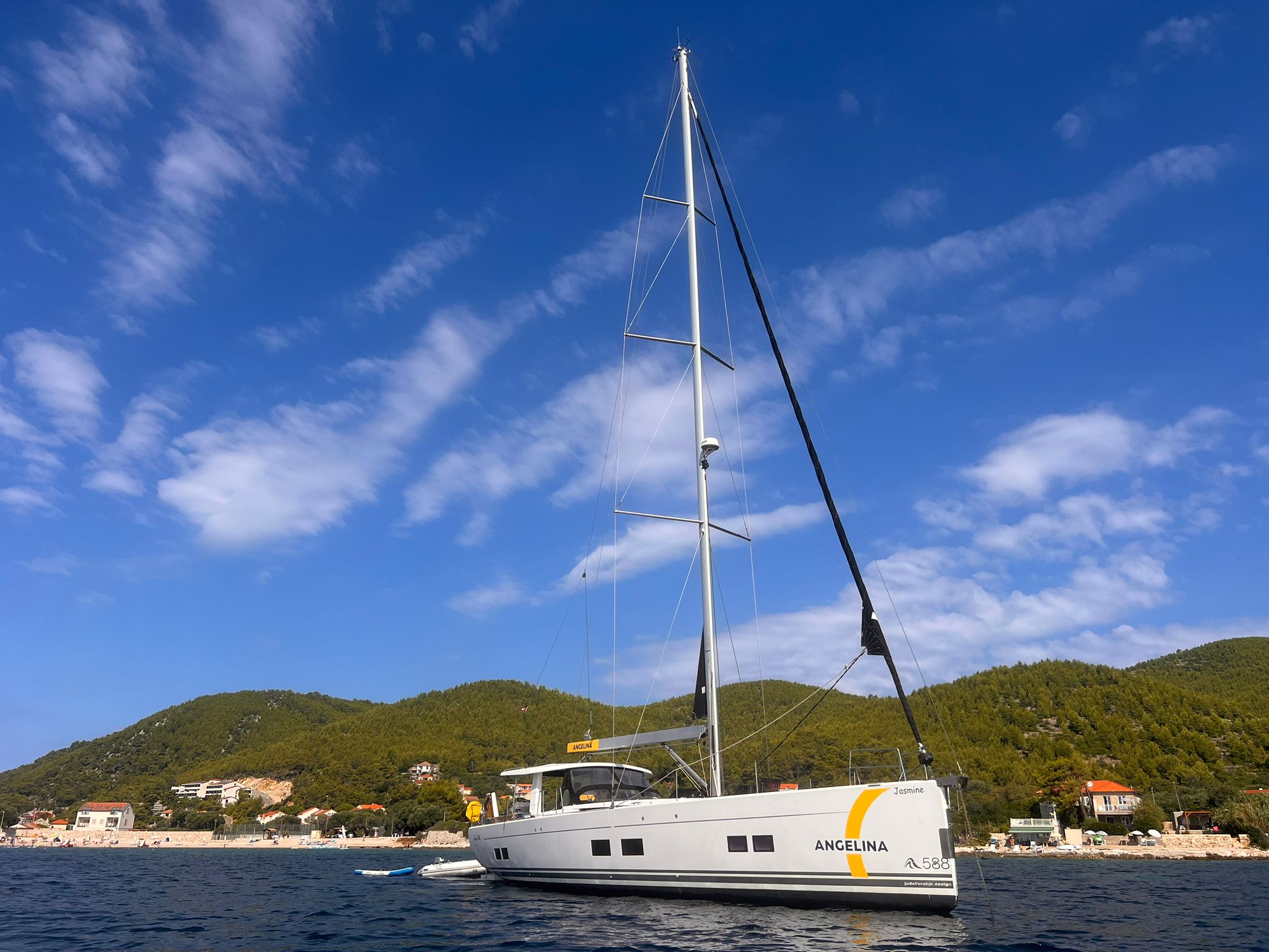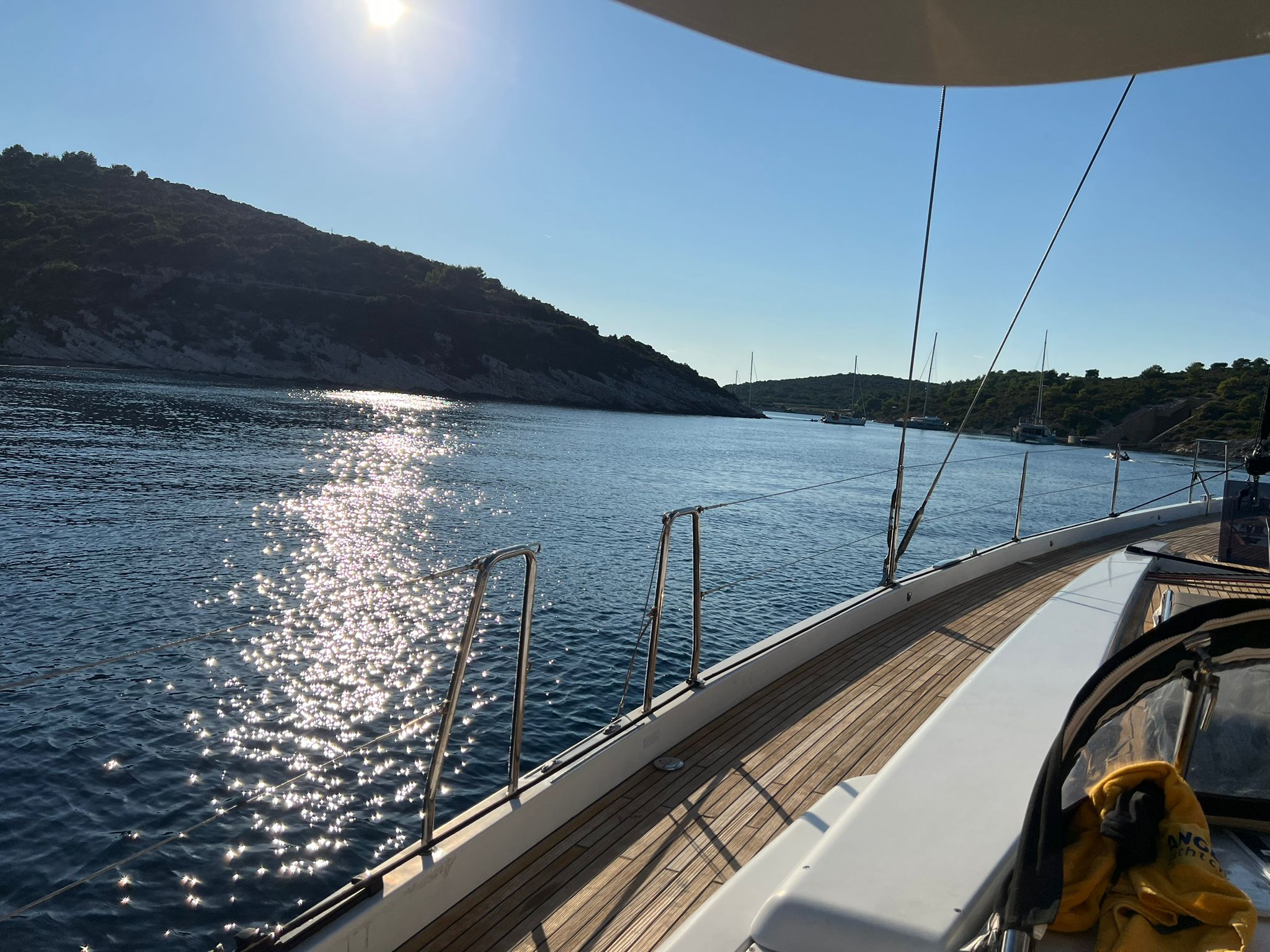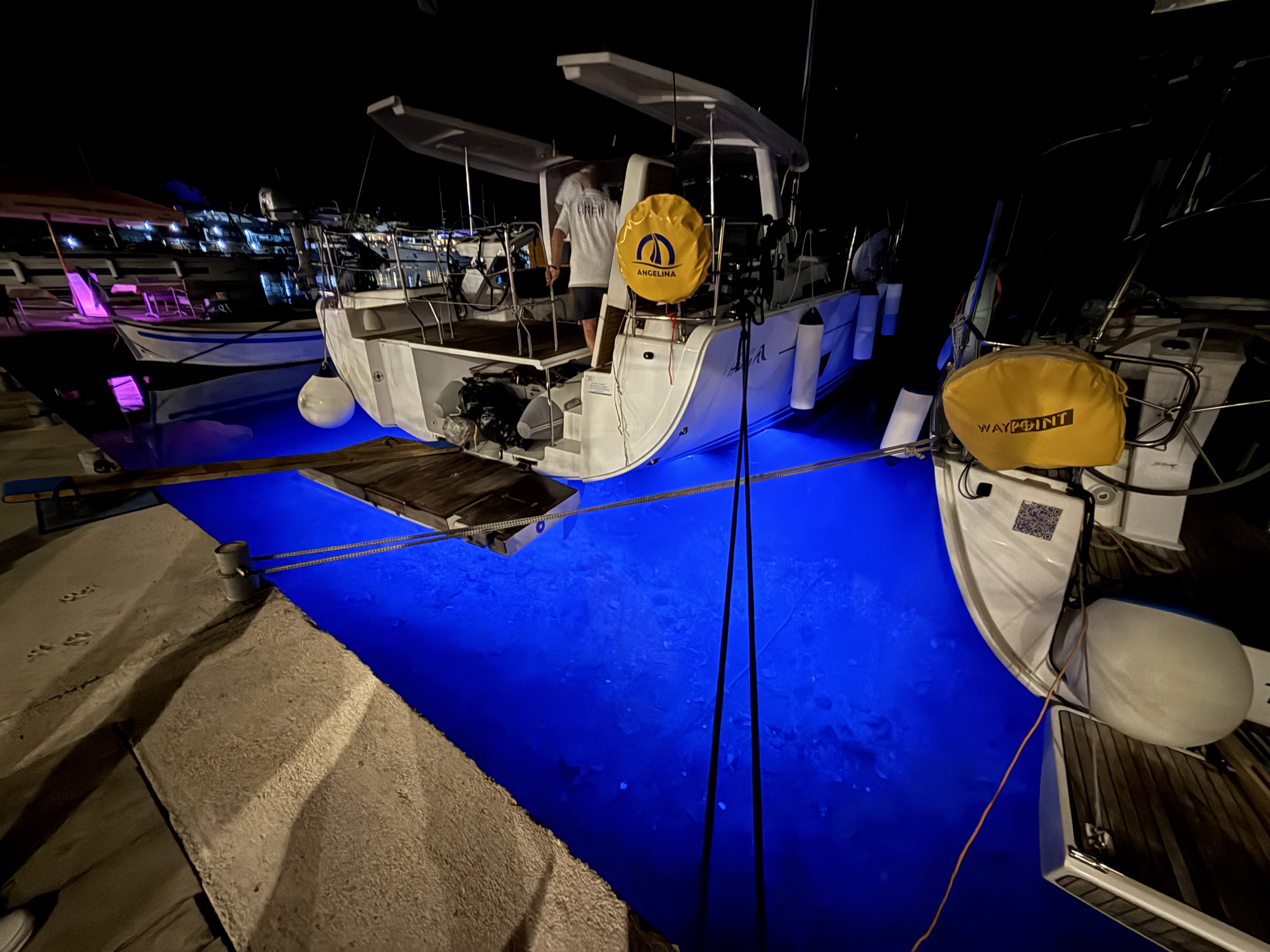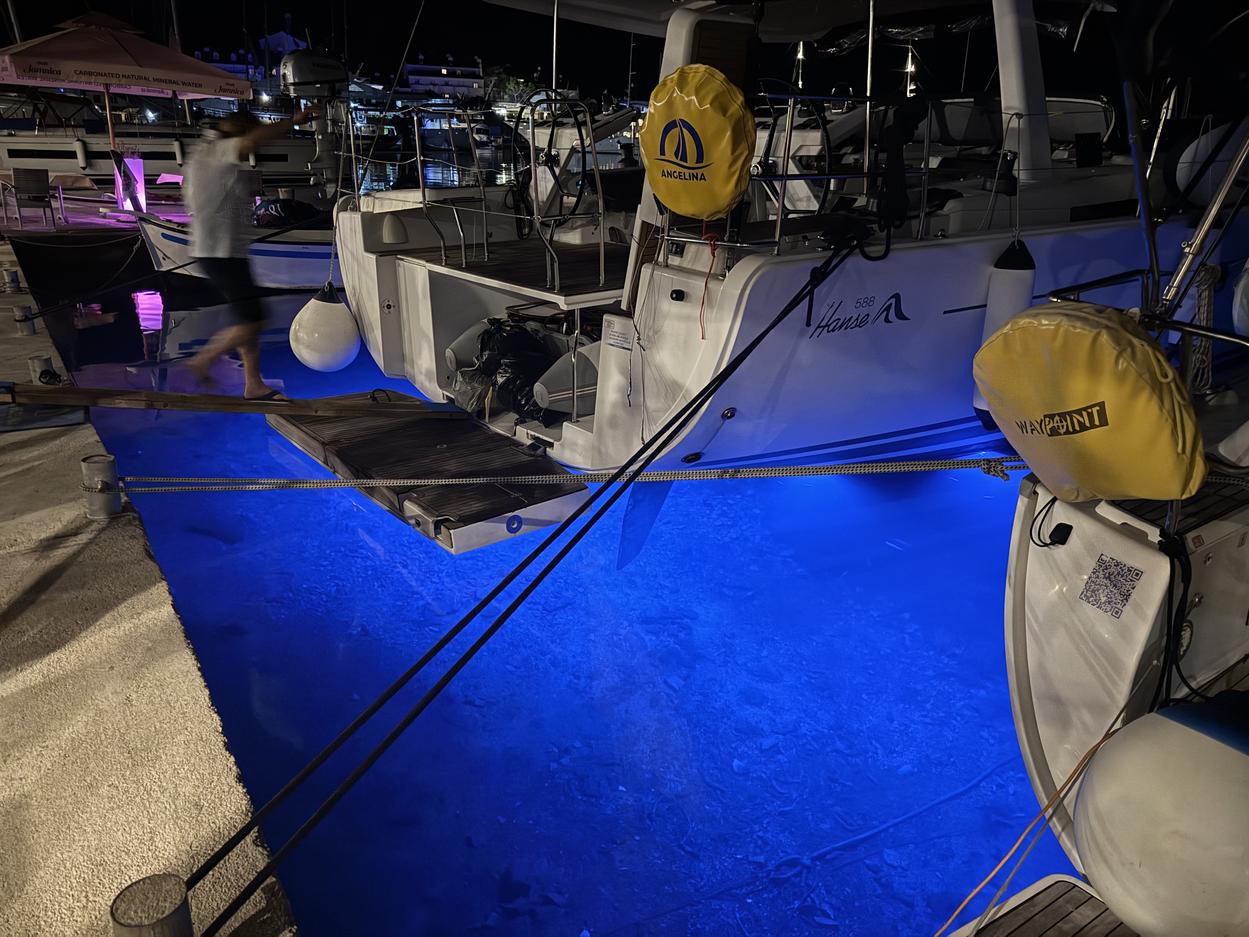 | Outside | 220V shore connection, Bathing platform, Boat hook, Cockpit shower hot/cold, Refrigerator in cockpit, Cockpit speakers, Cockpit cushions, Cockpit table, Lowerable cockpit table, Deck cushions, Electr. anchor windlass, electr. winch, Fender, Mooring lines, Gangway, Hardtop, Anchor Jambo, Solar panels, Sprayhood, Teak deck, LED submarine lights, Water hose, Winches |