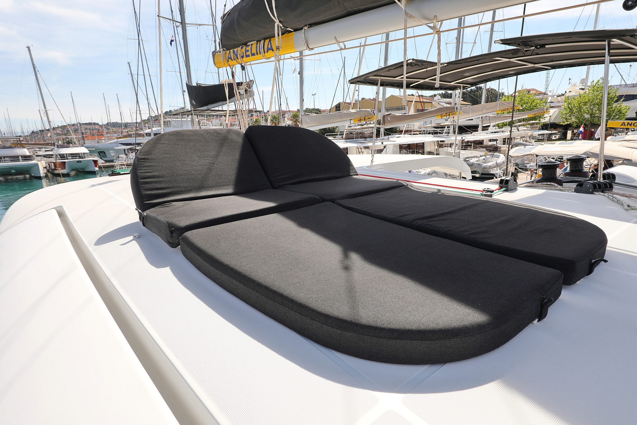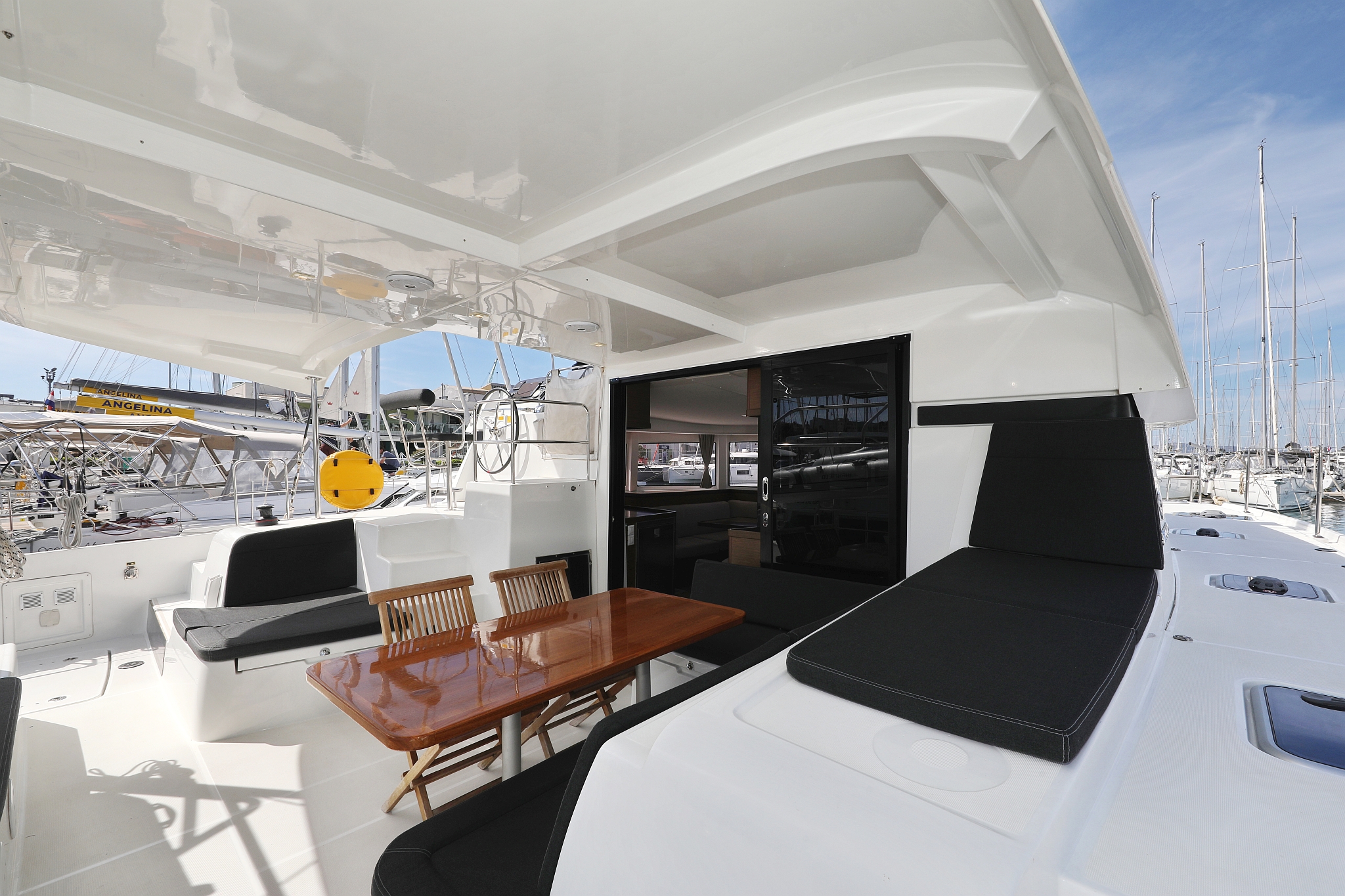 | Outside | 220V shore connection, Anchor with chain, Bathing ladder, Bimini top, Boat hook, Cockpit shower, Refrigerator in cockpit, Cockpit speakers, Cockpit cushions, Cockpit table, Deck cushions, Delta anchor, Electr. anchor windlass, electr. winch, Fender, Mooring lines, Gangway, Hardtop, Anchor Jambo, Sun deck, Water hose, Winches |