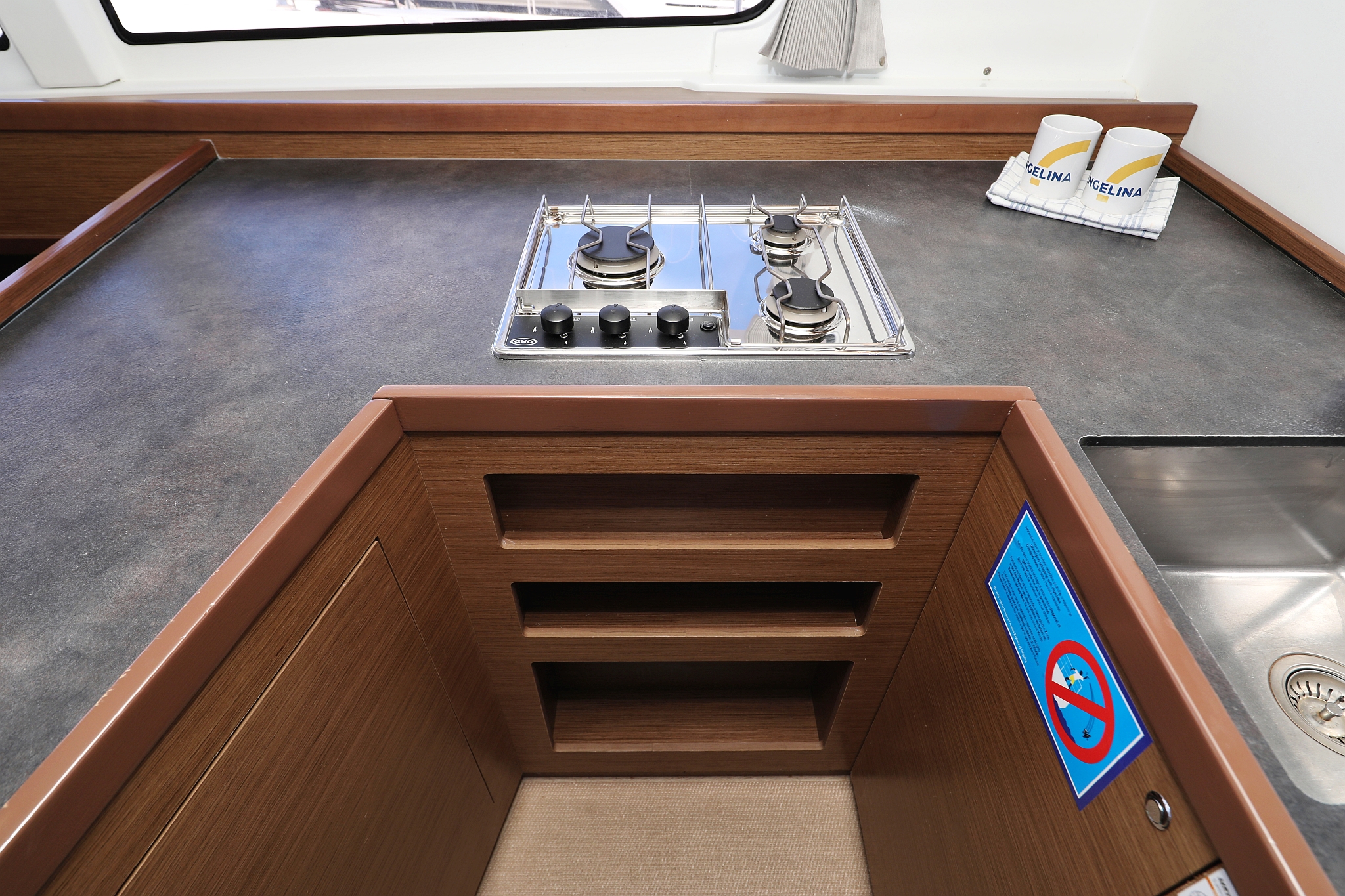 | Inside | 2nd refrigerator, 220V sockets, Clock, Black water tank, Gas stove with oven, Heating, Dock A/C 220V (cool&heat), fridge and freezer, Battery charger, Shore power cable, Speakers in saloon, Moka pot, Pantry equipment, Radio, Sink, Warm water, Kettle |