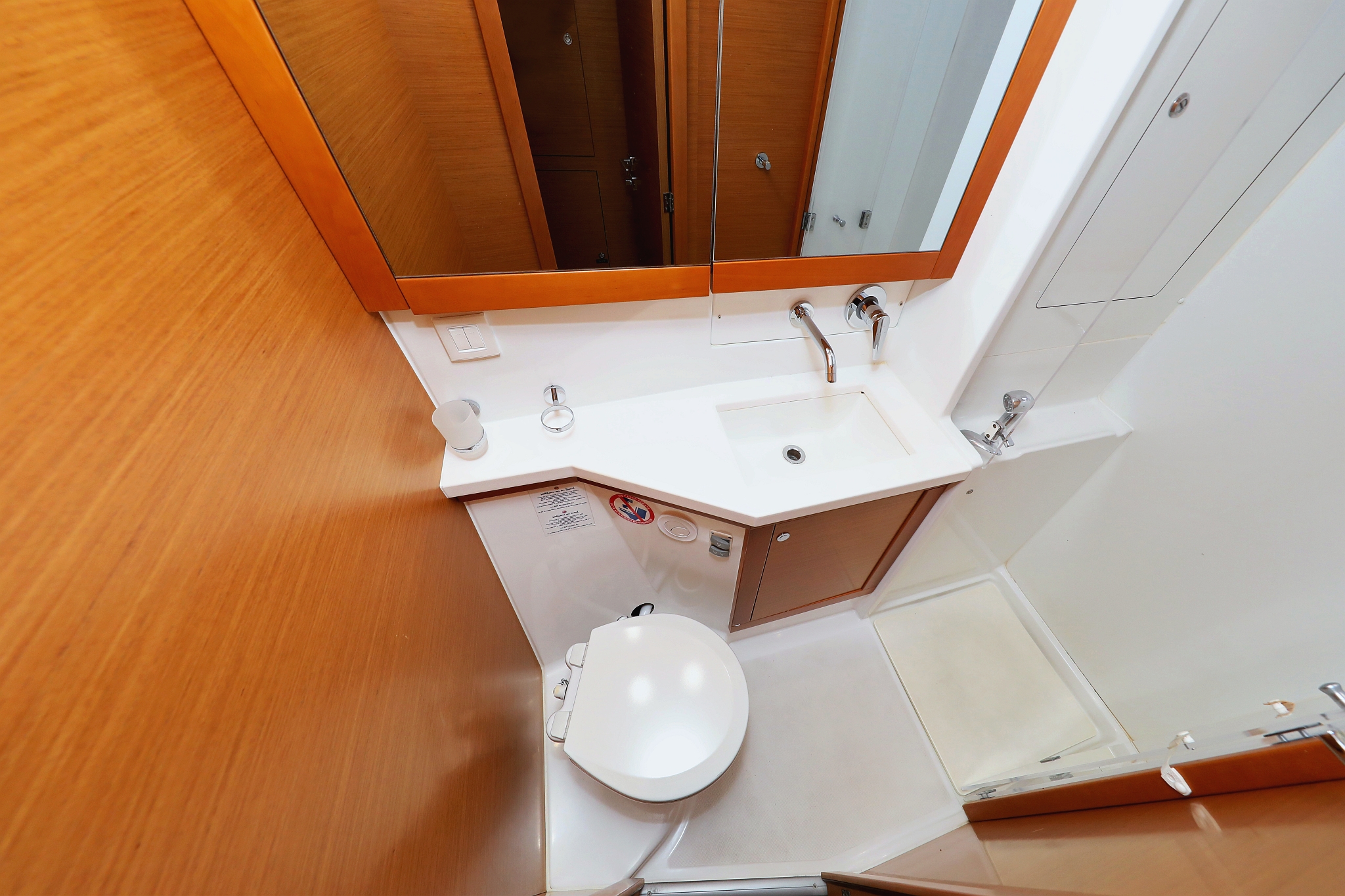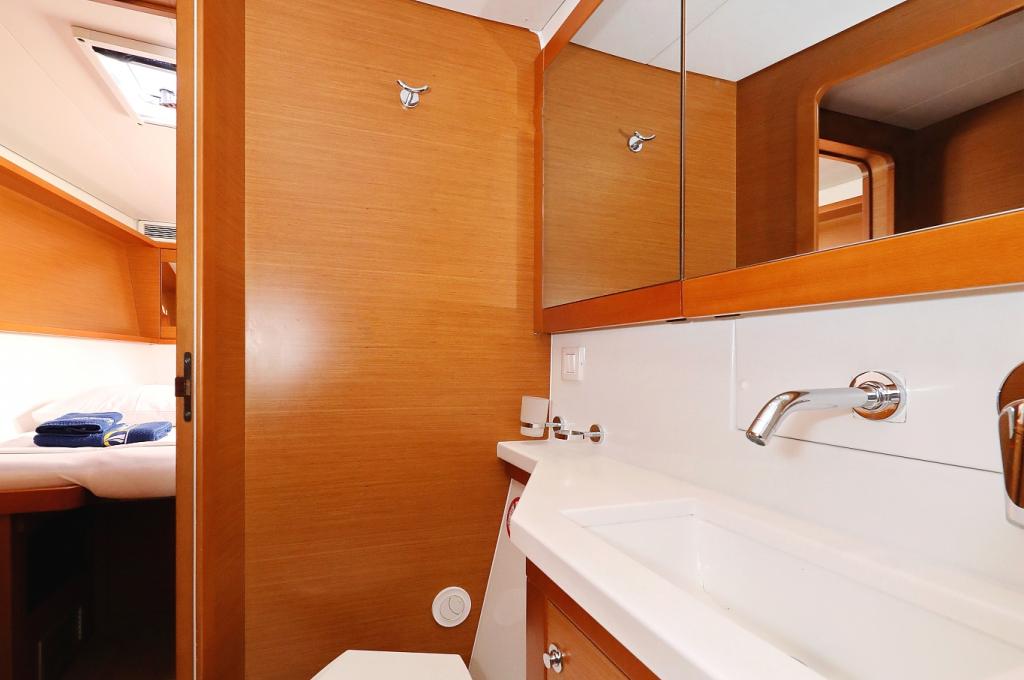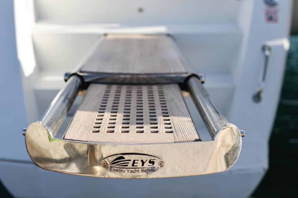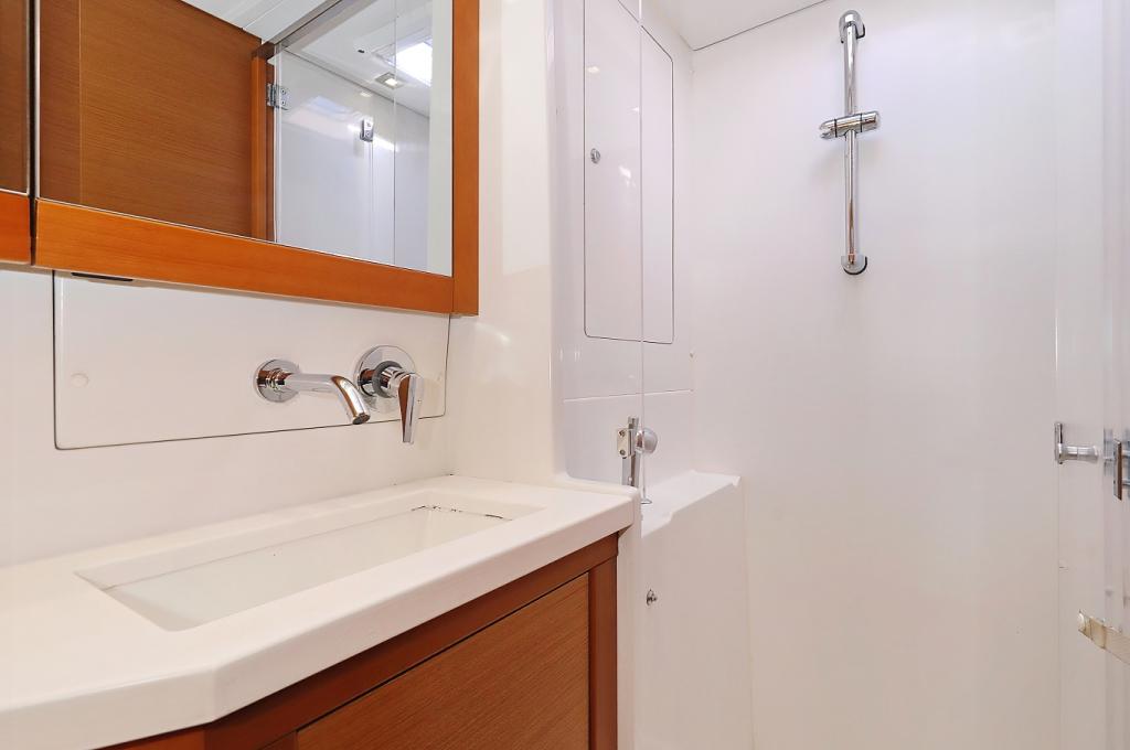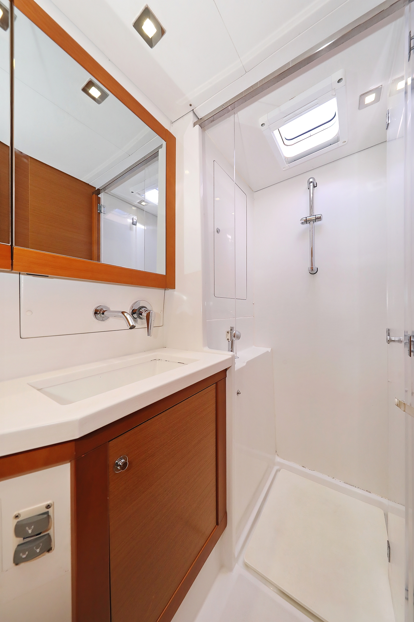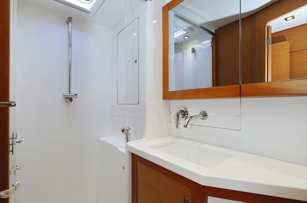 | Outside | 220V shore connection, Anchor with chain, Anchor chain counter, Boat hook, Cockpit shower, Refrigerator in cockpit, Cockpit speakers, Cockpit cushions, Cockpit table, Electr. anchor windlass, Electr. genoa winch, Electr. main sail winch, Fender, Mooring lines, Hardtop, hydraul. Gangway, Ball fender, Solar panels, Sun deck, Teak in cockpit, Water hose, Winches |