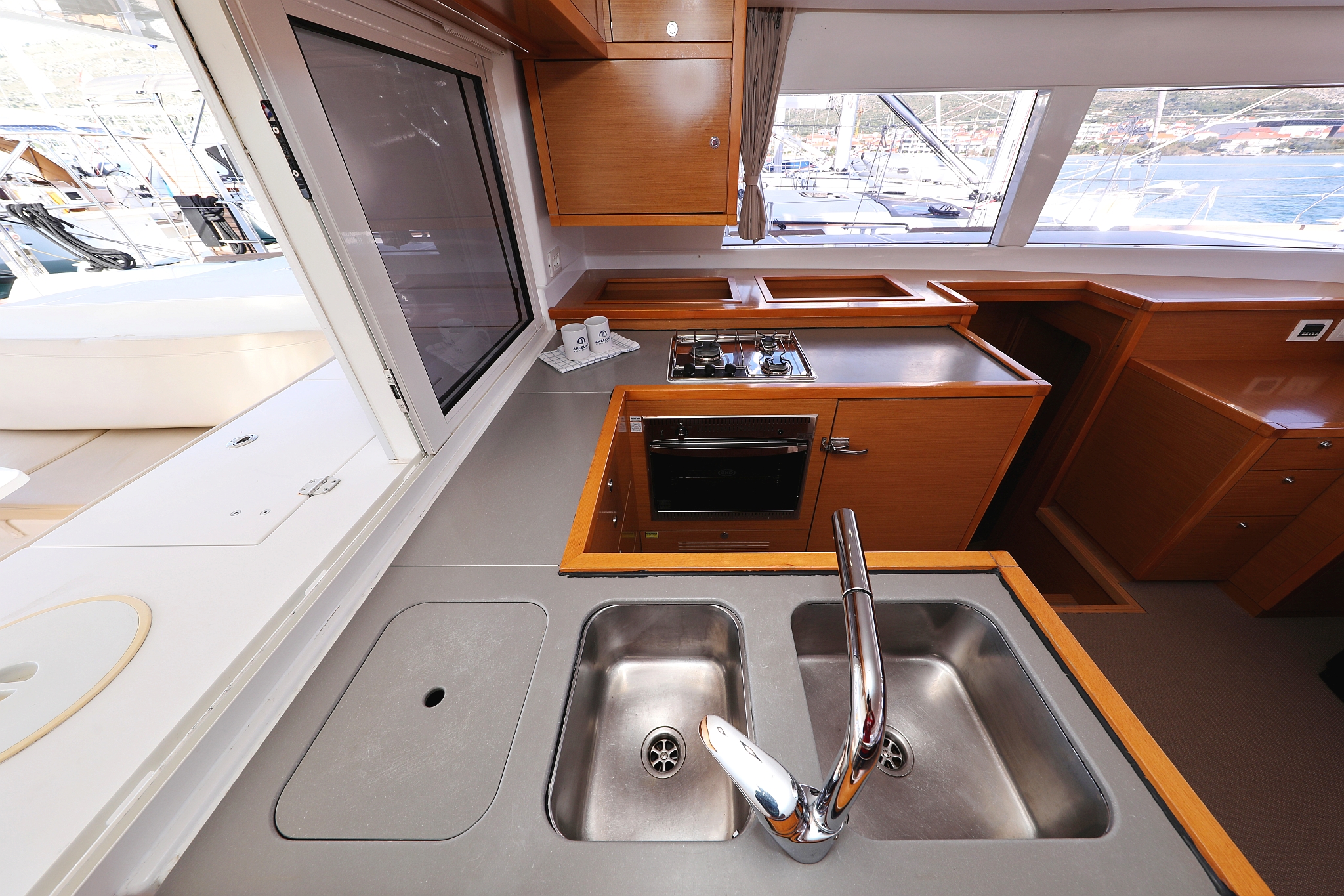 | Inside | 2nd refrigerator, 220V sockets, Black water tank, Gas stove with oven, Generator, Airconditioning (independent from shore power), fridge and freezer, Battery charger, Moka pot, Pantry equipment, Radio with CD, AUX and USB, Sink, Warm water, Kettle, WC (electr.) |
