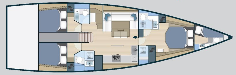 | Sails | Battened main sail, Lazy-Jack System, Lazybag, Furling genoa, Spi facility |