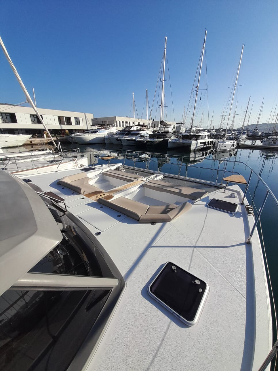 | Outside | Bathing ladder, Bimini top, Cockpit shower, Refrigerator in cockpit, Cockpit cushions, Cockpit table, Electr. anchor windlass, Flybridge |