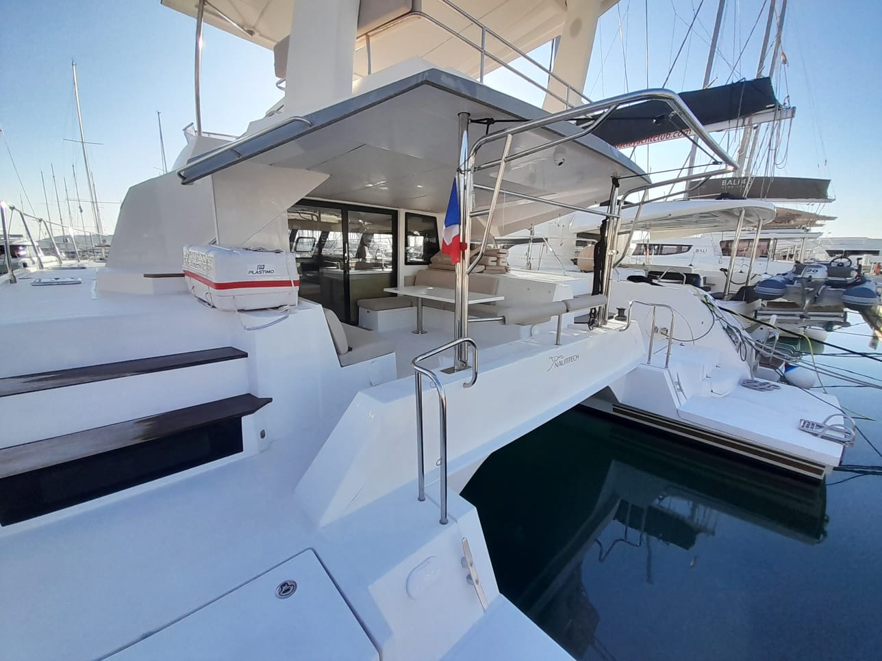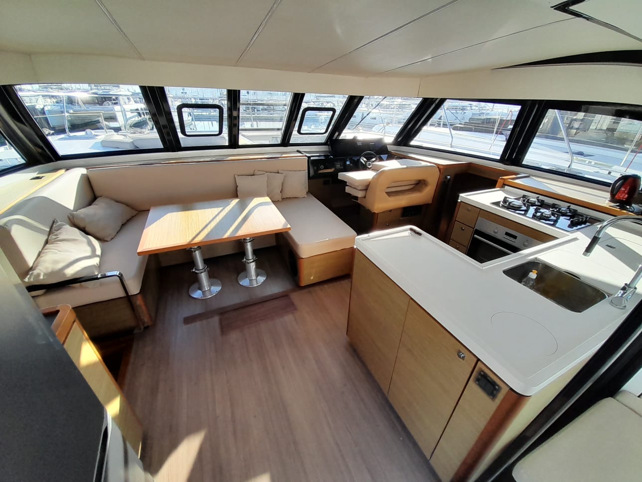 | Inside | Oven, Gas oven, Generator, Inverter 12V/220V, Airconditioning (independent from shore power), Refrigerator, Radio, Convertible salon table, USB Socket, fans in cabins, Watermaker, WC (electr.) |