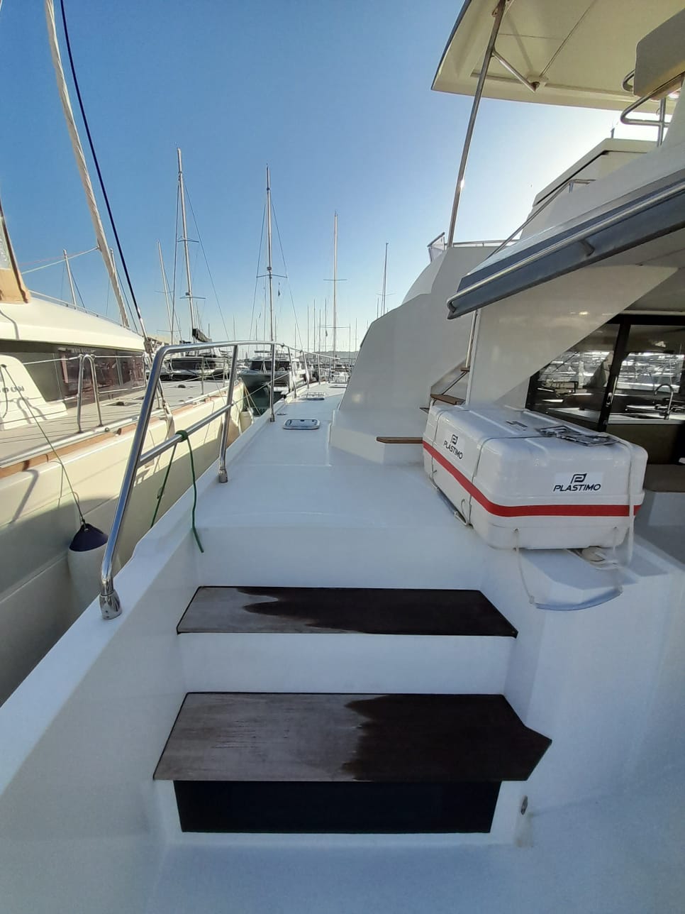 | Inside | Fusion sound system , Generator, Airconditioning (independent from shore power), Refrigerator, Nespresso machine, Pantry equipment, Watermaker |