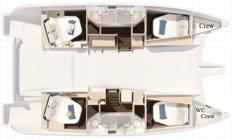 | Safety | AIS receiver, Autopilot, Lightning buoy, Bosun's chair, First aid kit, Tools, Solid life vests, Fire extinguisher, Fog horn, Radar reflector, Repair box for dinghy, Life raft, Searchlight, Torchlight, VHF Radio |