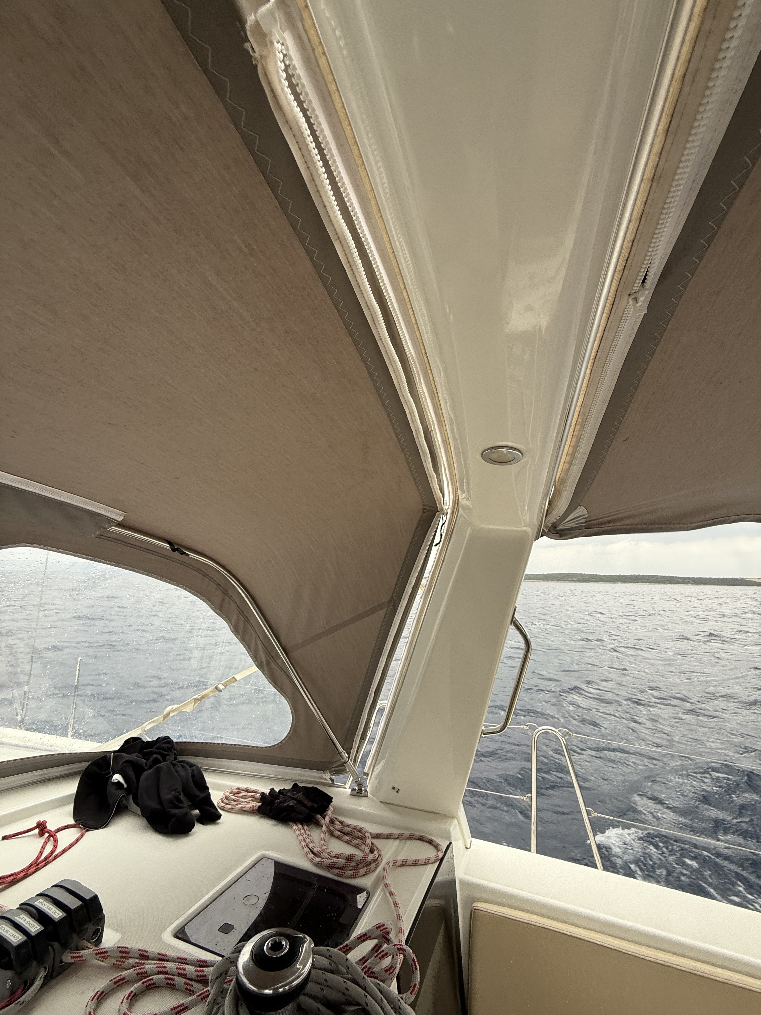 | Outside | 220V shore connection, Bathing platform, Bimini top, Boat hook, Cockpit shower hot/cold, Cockpit speakers, Cockpit cushions, Cockpit table, Delta anchor, Electr. anchor windlass, Fender, Mooring lines, Gangway, Solar panels, Sprayhood, Teak in cockpit, Water hose, Winches |