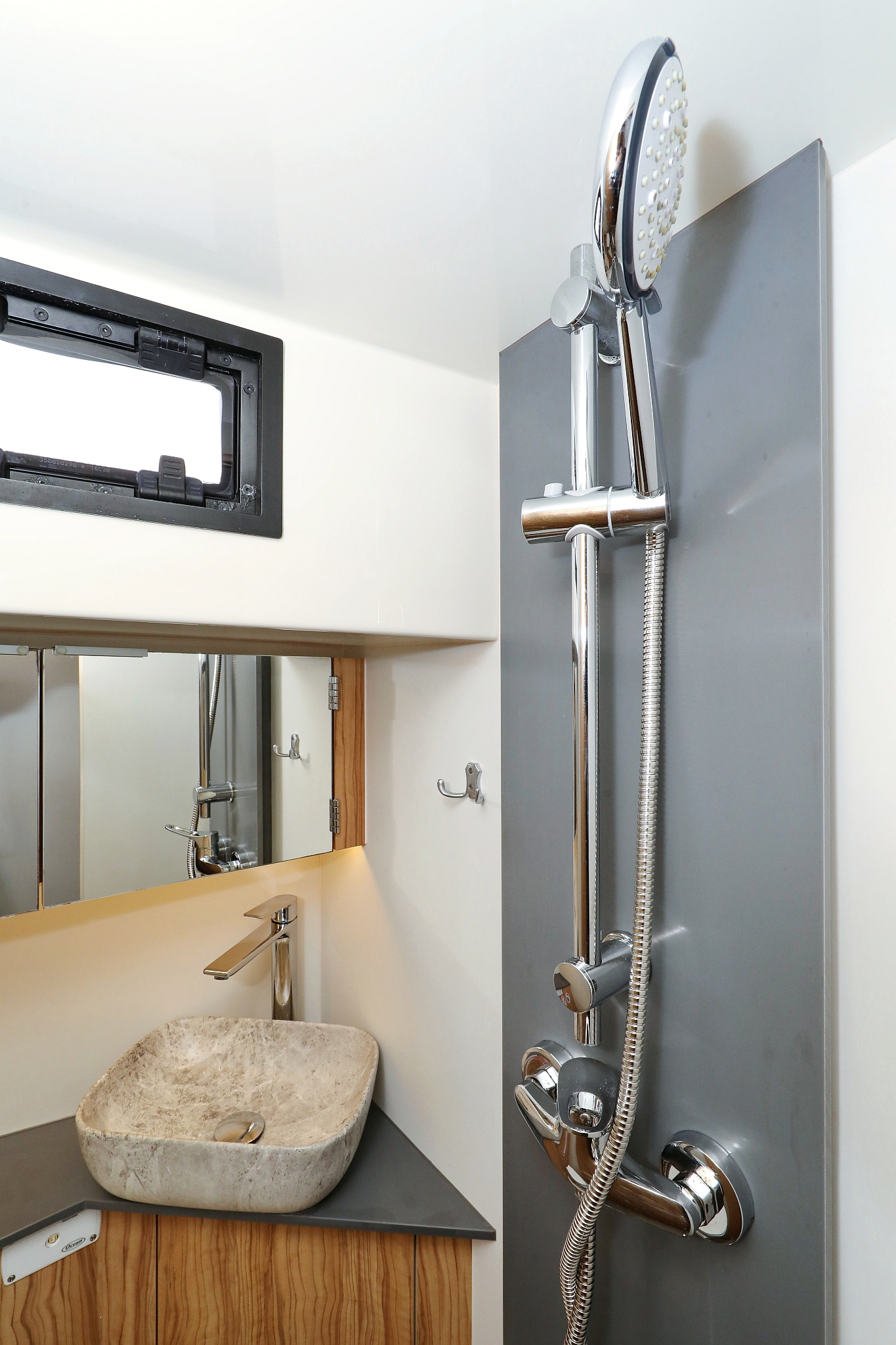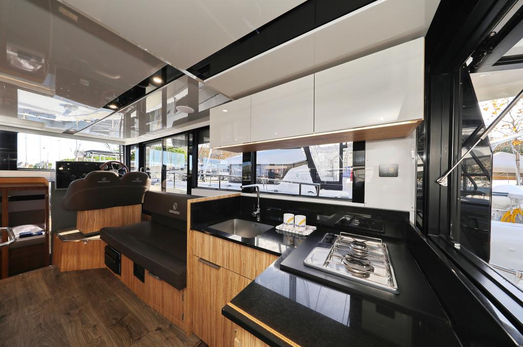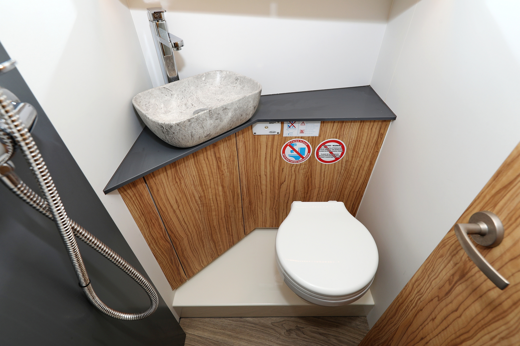| Inside | 220V sockets, Black water tank, Gas oven, Heating, Inverter 12V/220V, Dock A/C 220V (cool&heat), Refrigerator, Battery charger, Shore power cable, Speakers in saloon, Moka pot, Pantry equipment, Radio with bluetooth, Sink, Kettle, WC (electr.) |