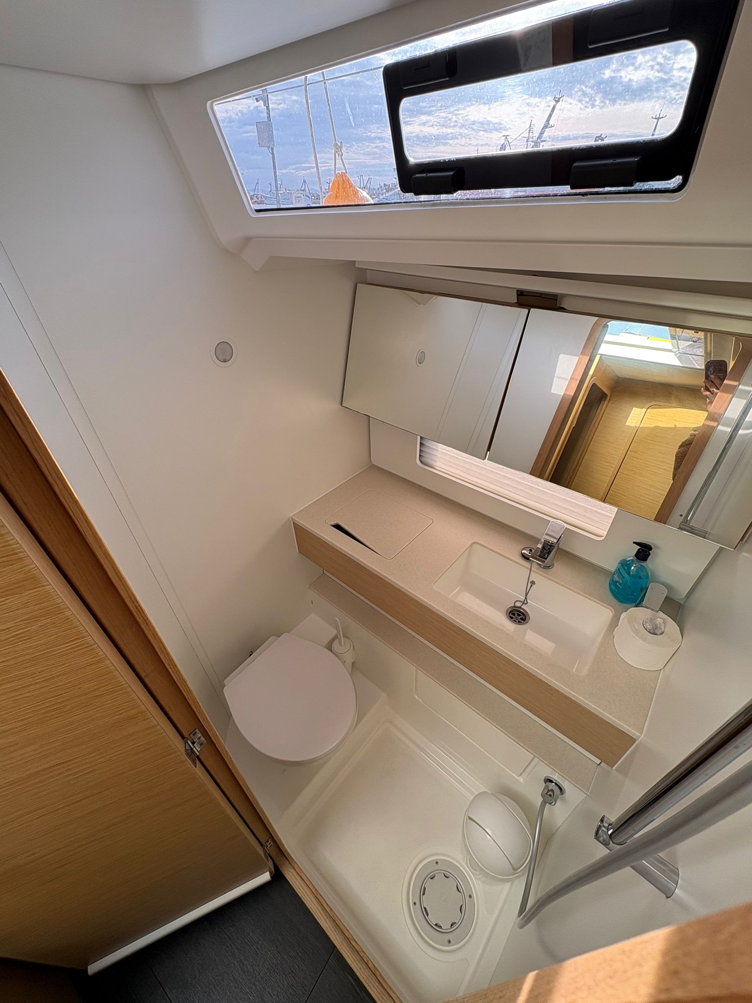 | Navigation | Binoculars, GPS Chart Plotter, Hand bearing compass, Compass, Navigation set, Nautical charts, Tridata (Log, Echosounder, Windm.), Anemometer |