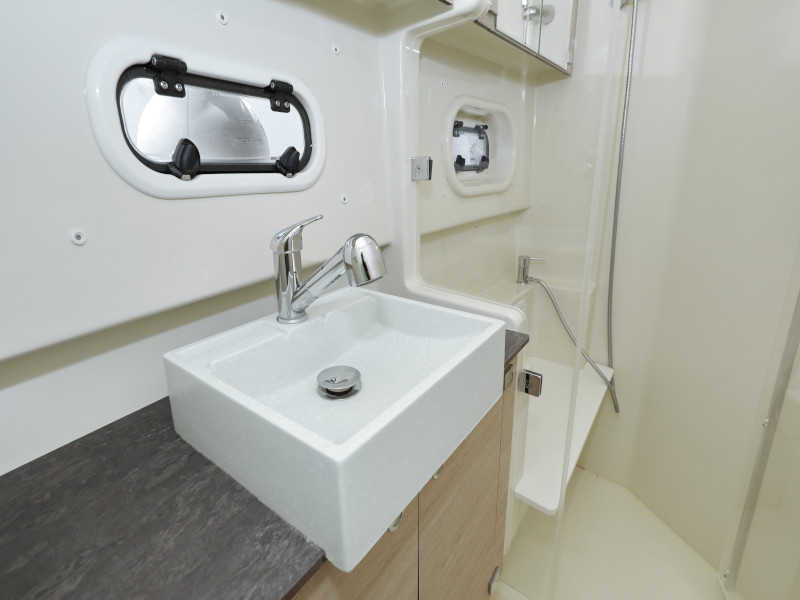 | Inside | Oven, Gas oven, Refrigerator, Battery charger, Shore power cable, Microwave oven, Radio, Convertible salon table, Warm water, WC (electr.) |