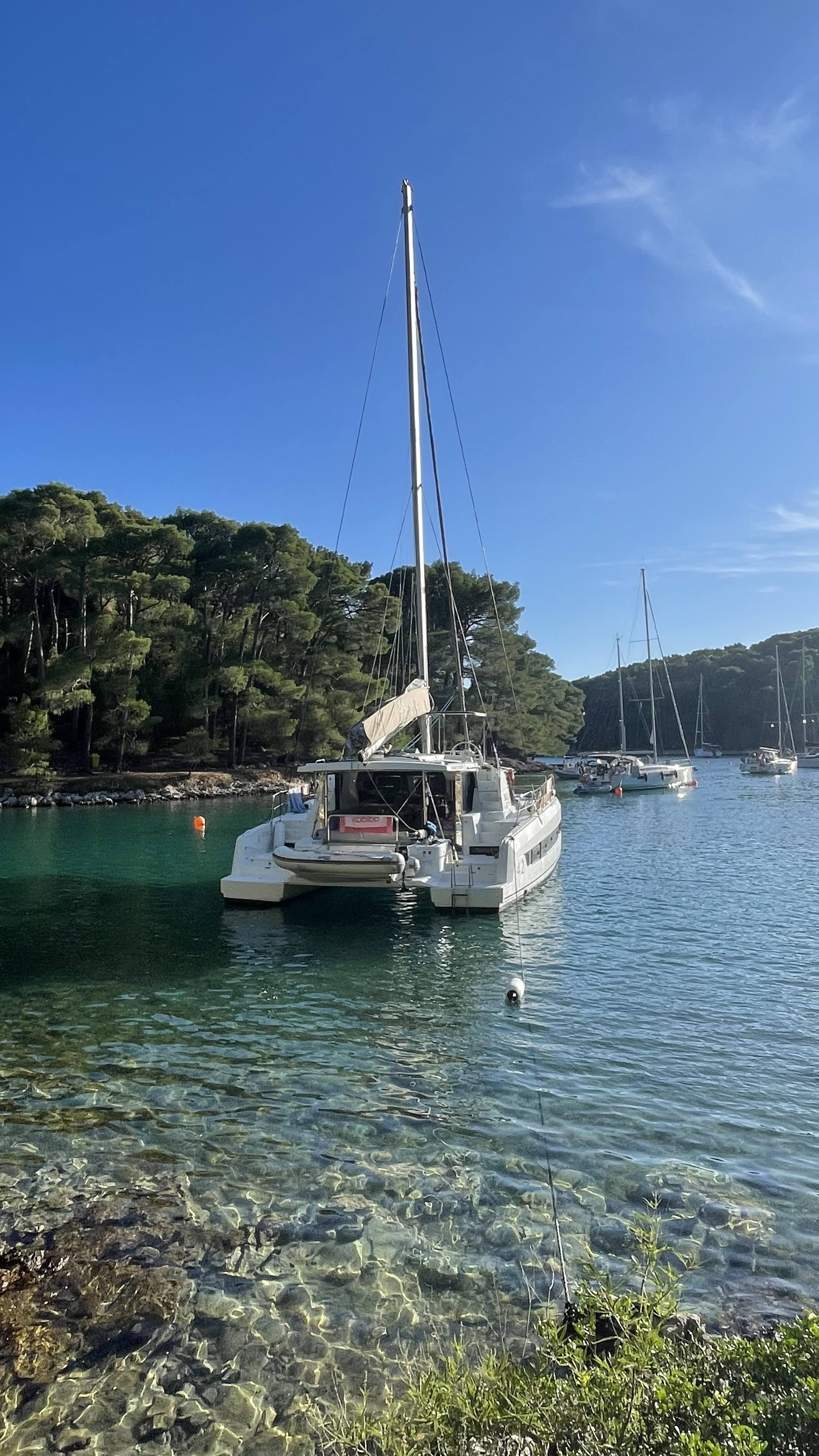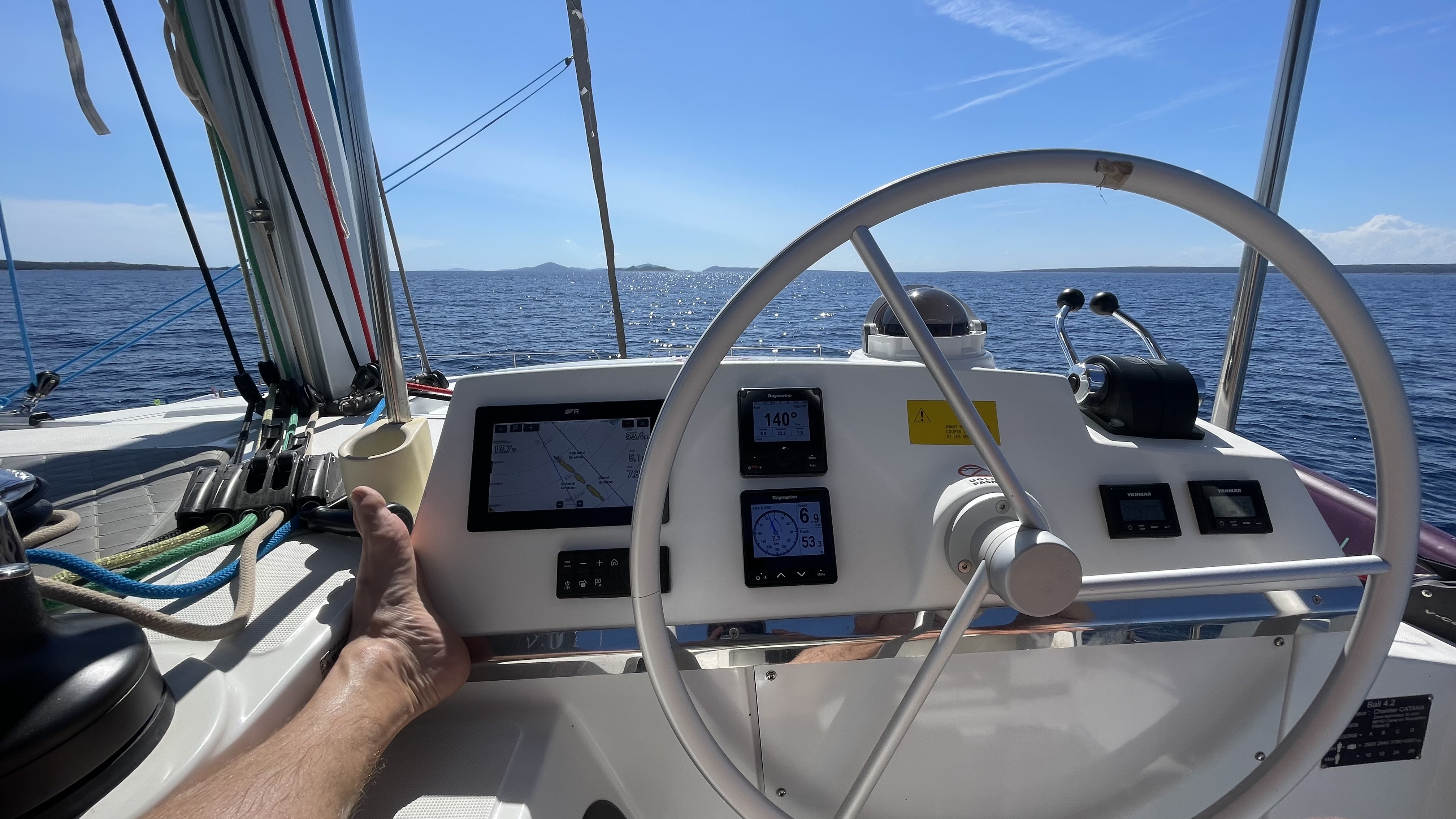 Die Yacht hat ein paar kleinere technische Macken (eine der beiden Dieselfüllstandanzeigen funktioniert nicht richtig, die Schalt- bzw. Gashebel sind schwergängig beim Einlegen von Vor- oder Rückwärtsgang und an einer nicht identifizierbaren Stelle dringt bei starkem Regen Wasser in eine steuerbordseitige Achterkabine ein) und die Segeleigenschaften sind bauartbedingt eher bescheiden (habe aber auch nicht anders erwartet). Insgesamt ist die Stairway To Heaven ein sehr komfortables und gut ausgestattetes Boot, auf dem wir eine sehr schöne Segelwoche verbracht haben.
