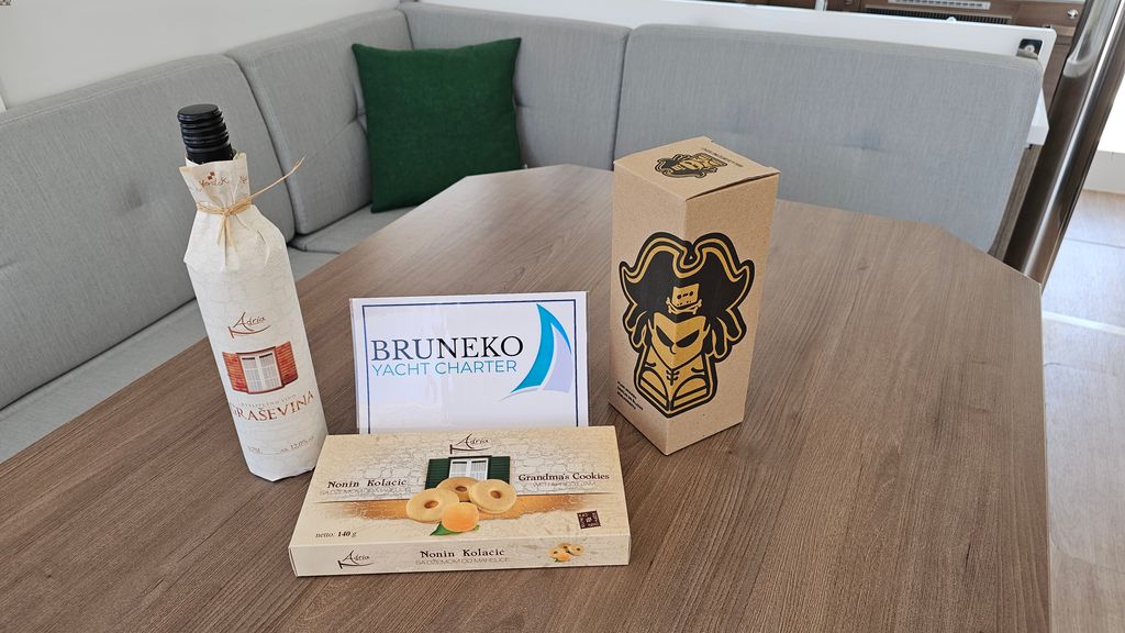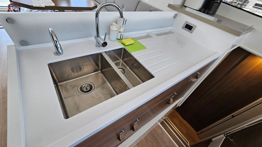 | Inside | Ice cube machine, Gas stove with oven, Generator, Crockery, Inverter 12V/220V, Coffee machine, Airconditioning (independent from shore power), Refrigerator, Battery charger, Shore power cable, Pantry equipment, Convertible salon table, Sound system, Sink, Warm water, WC (electr.) |