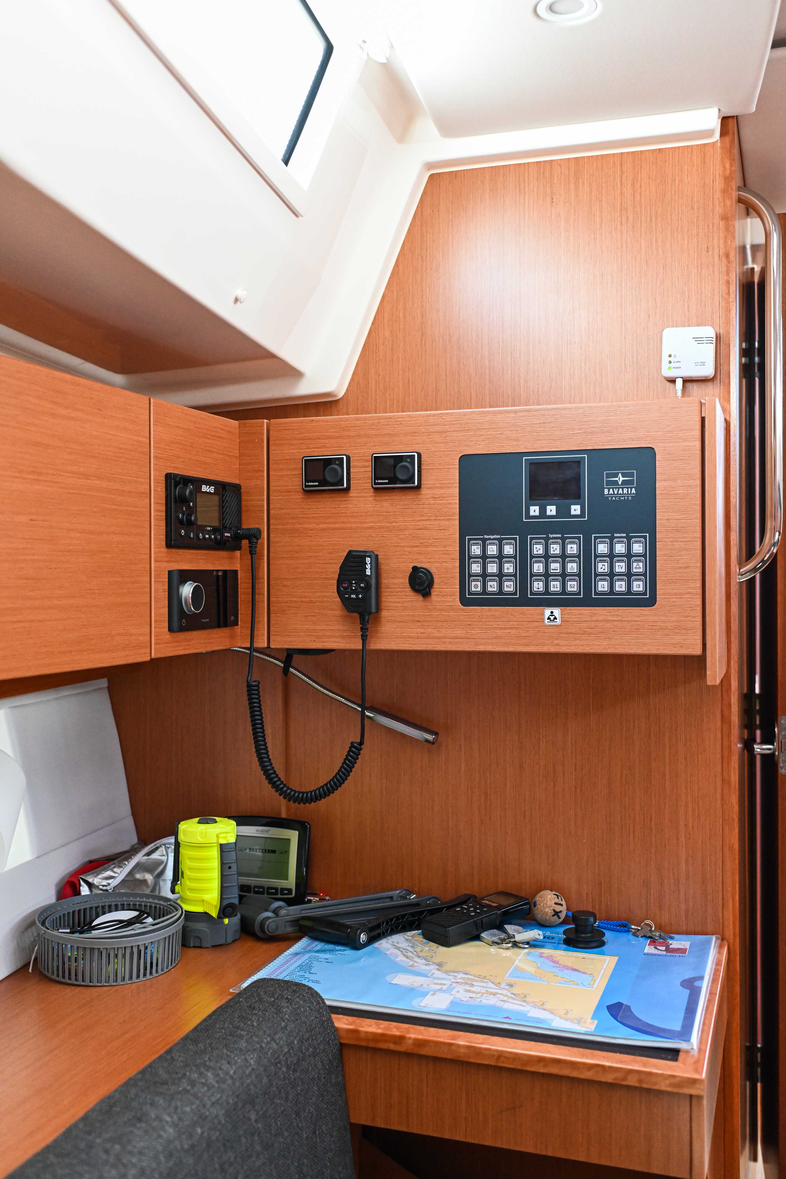 | Navigation | Barometer, GPS with chart plotter in cockpit, Harbour books, Hand bearing compass, Compass, Navigation set, Nautical charts, Log, Anemometer |