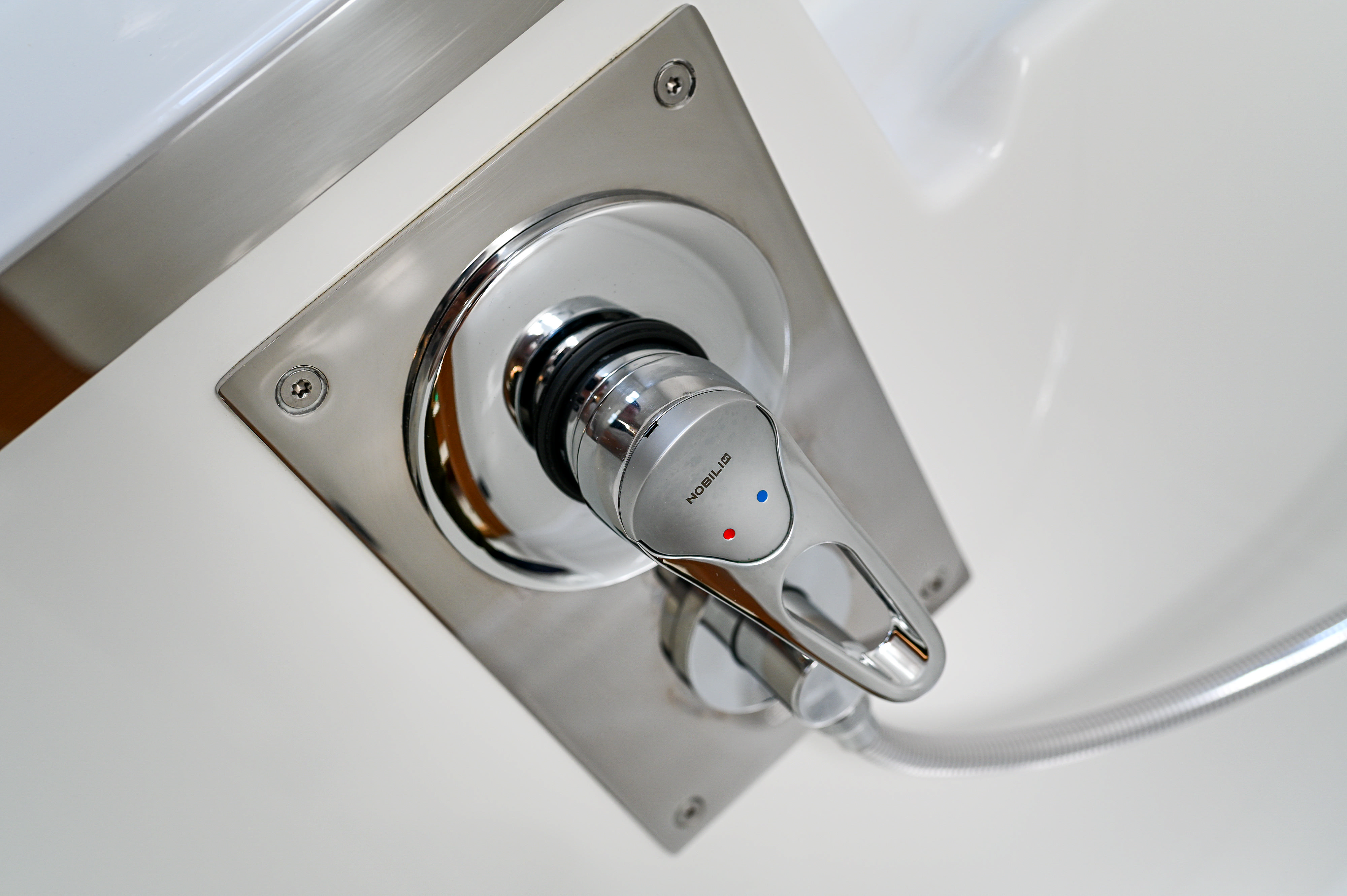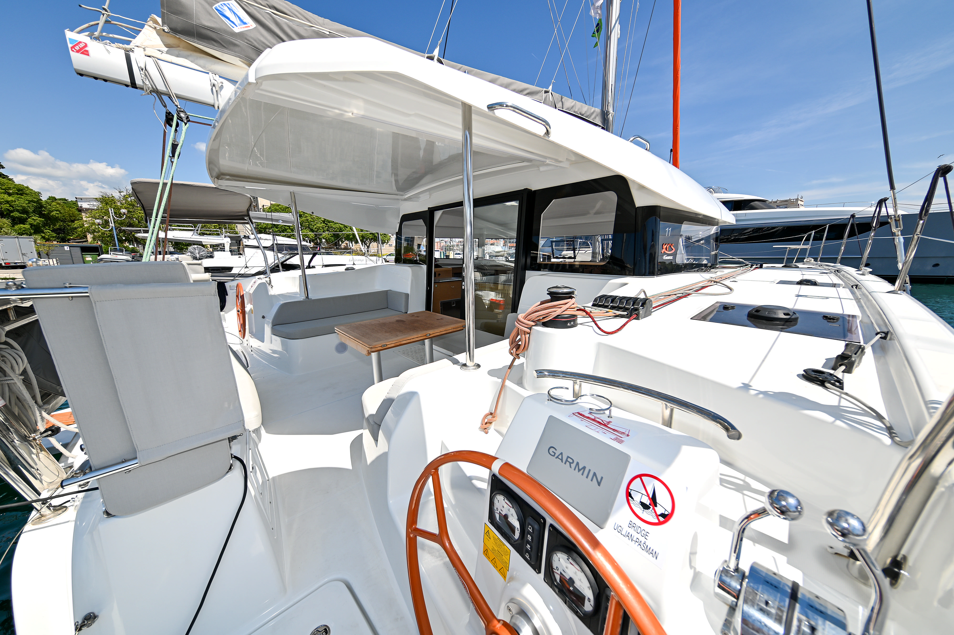 | Outside | Anchor with chain, Anchor with rope , Bimini top, Boat hook, Cockpit shower, Refrigerator in cockpit, Cockpit cushions, Cockpit table, Electr. anchor windlass, Electr. davits, electr. winch, Fender, Mooring lines, Solar panels, Sprayhood, Water hose |