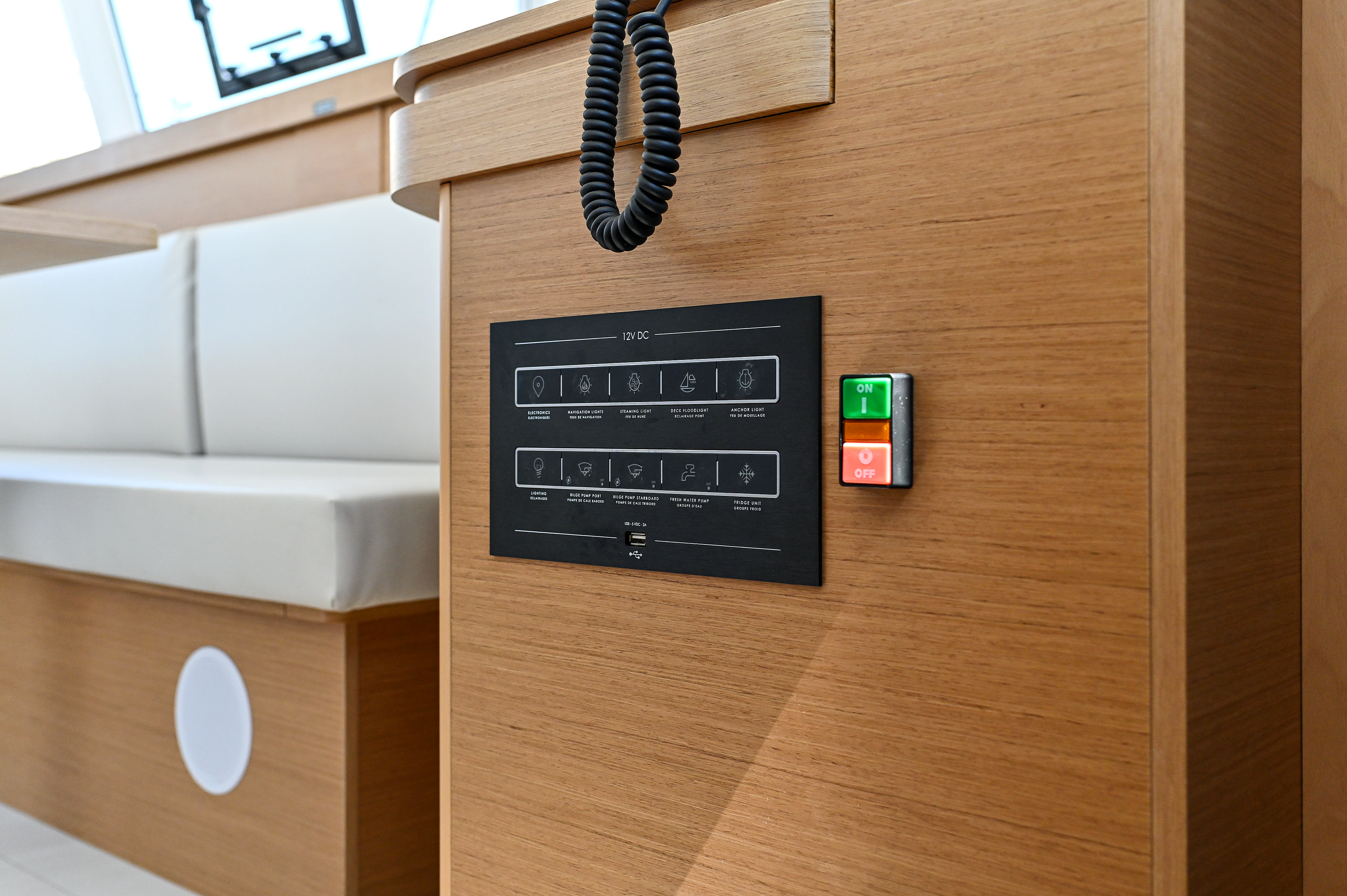 | Inside | 12 V socket, 220V sockets, Oven, Fusion sound system , Gas oven, Refrigerator, Battery charger, Shore power cable, Speakers in saloon, fans in cabins, Warm water, Watermaker, WC (electr.) |