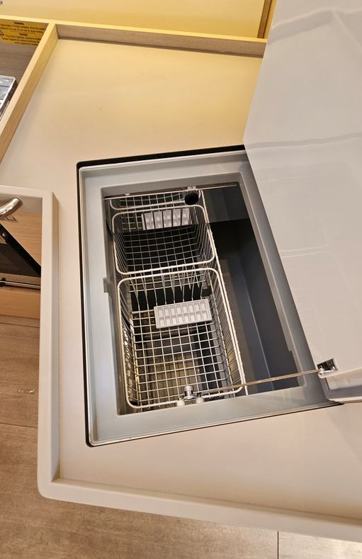 | Inside | 12V/220V sockets, Black water tank, Gas stove with oven, Freezer, Generator, Crockery, Inverter 12V/220V, Coffee machine, Airconditioning (independent from shore power), Refrigerator, Battery charger, Shore power cable, Pantry equipment, Radio, Convertible salon table, Sound system, Sink, TV, Warm water, WC (electr.) |