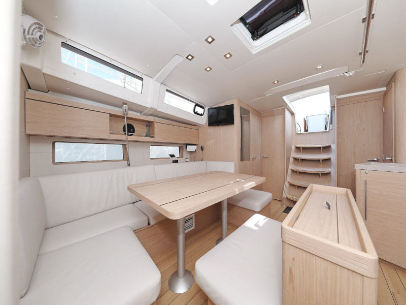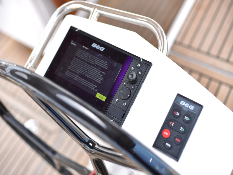 | Navigation | Binoculars, GPS with chart plotter in cockpit, Hand bearing compass, Navigation set, Nautical charts, Steering compass, Tridata (Log, Echosounder, Windm.) |