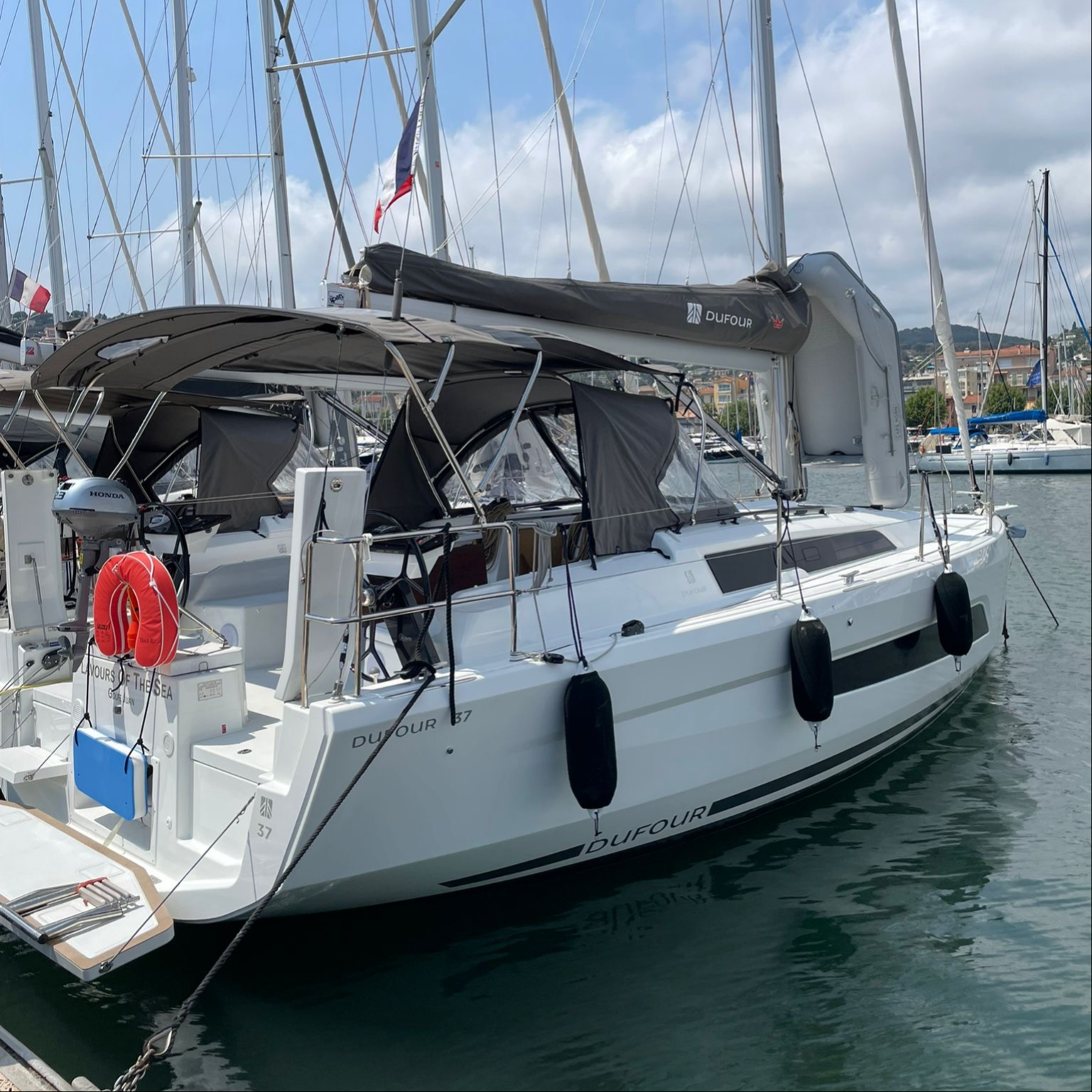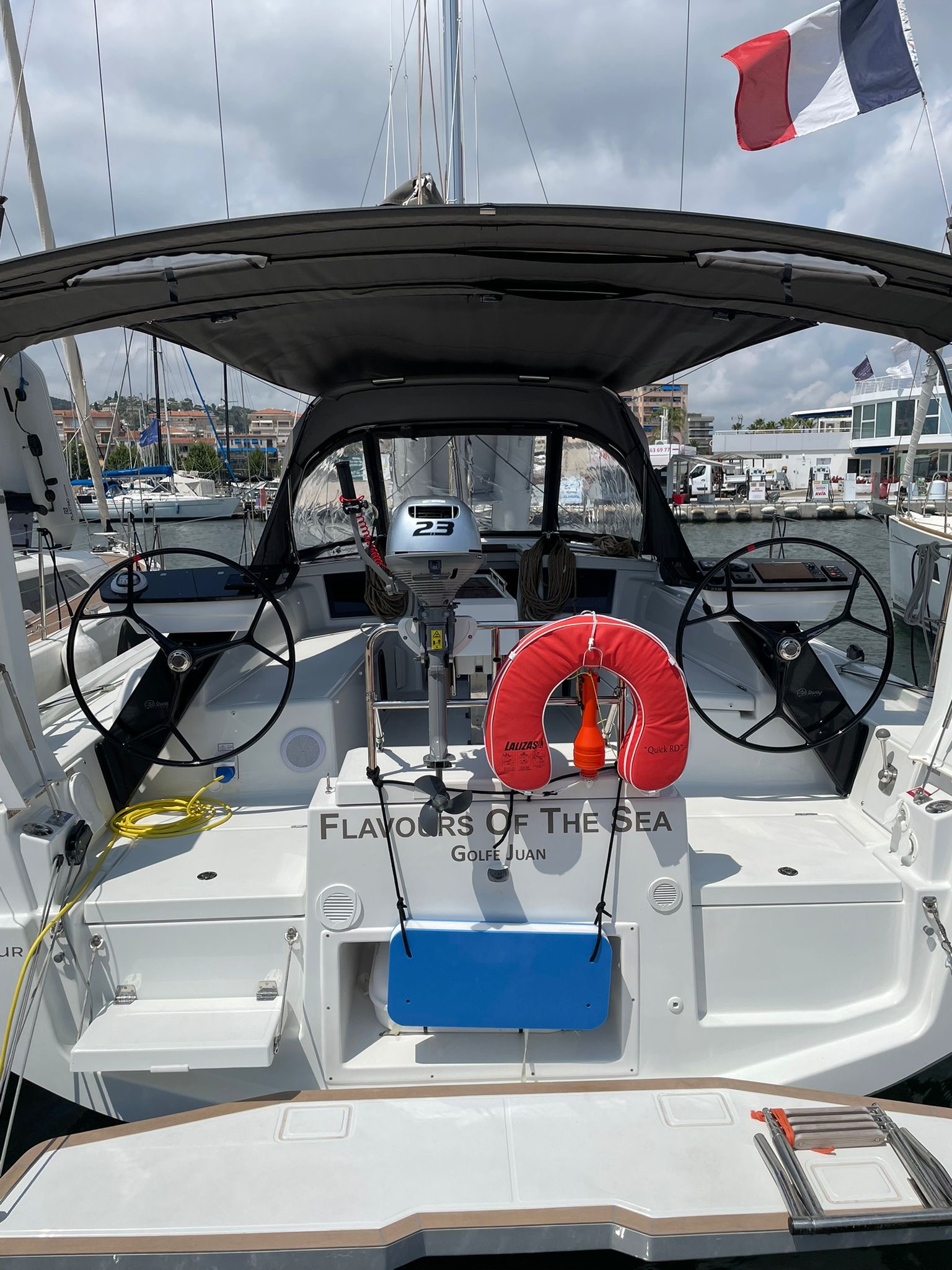 | Outside | Bimini top, Cockpit table, Electr. anchor windlass, BBQ, Sprayhood |