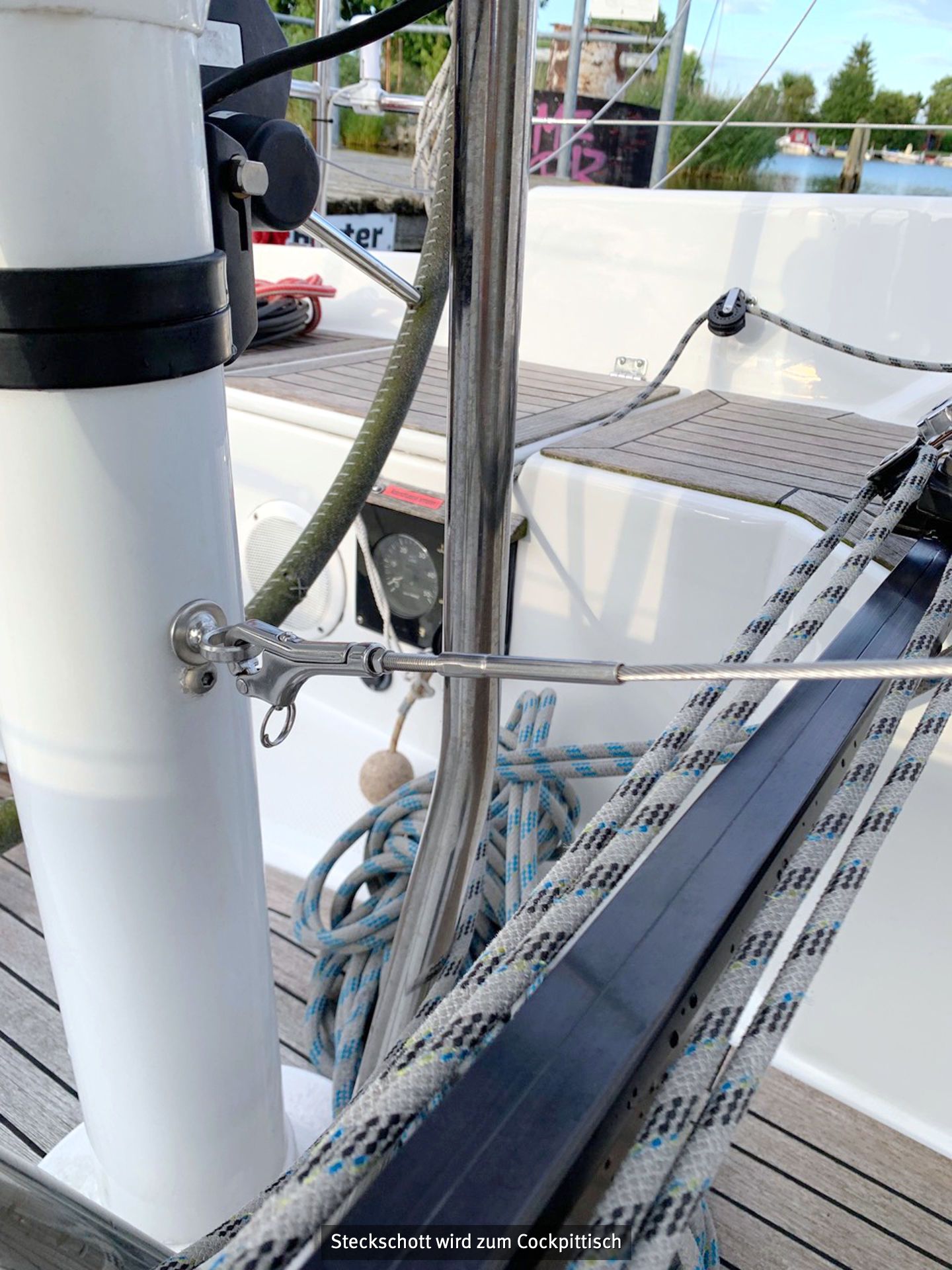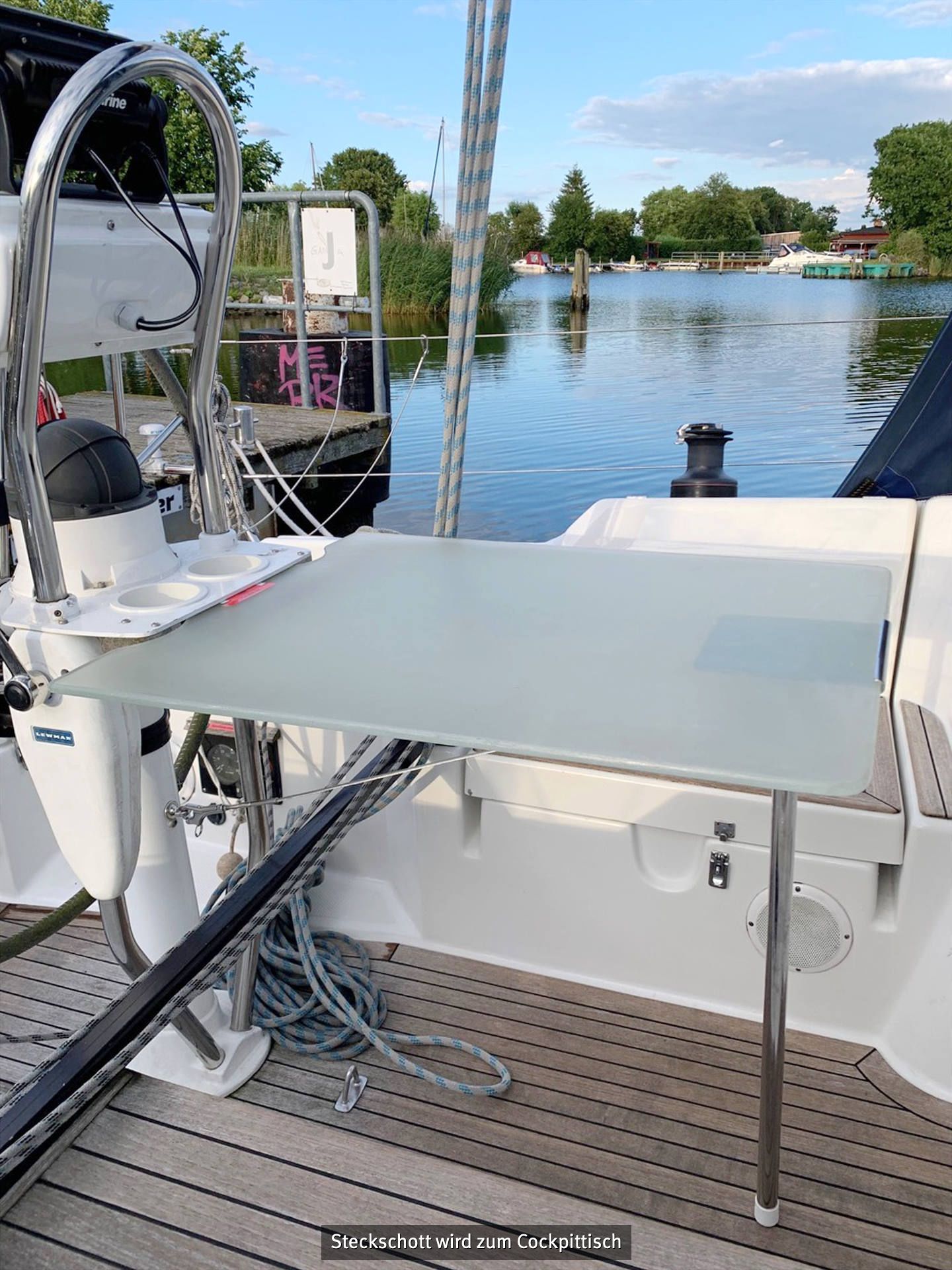 | Outside | Boat hook, Cockpit table, Cover brush, Fender, Mooring lines |