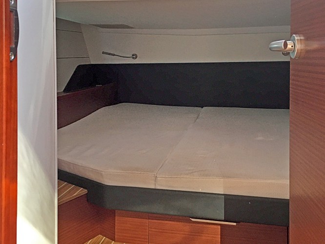 | Outside | 220V shore connection, Boat hook, CQR anchor, Electr. anchor windlass, Halyard winches, self-tailing, Fender, Mooring lines, Genoa pinches, self-tailing, Stern anchor, Sprayhood, Windex |