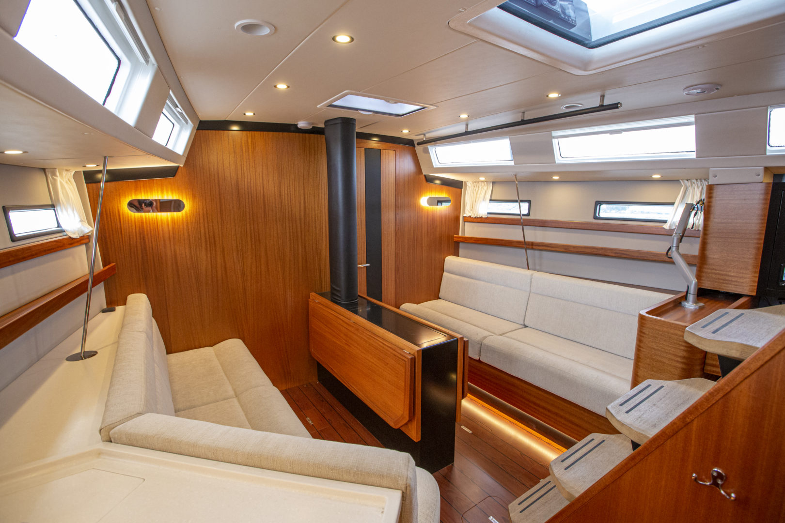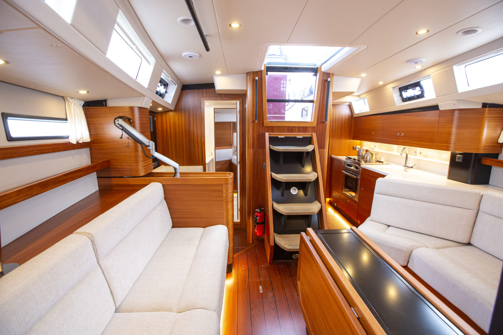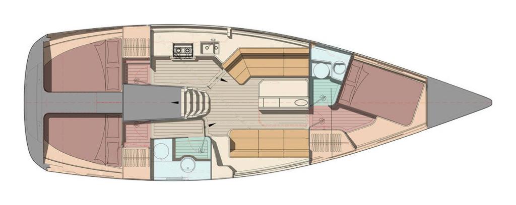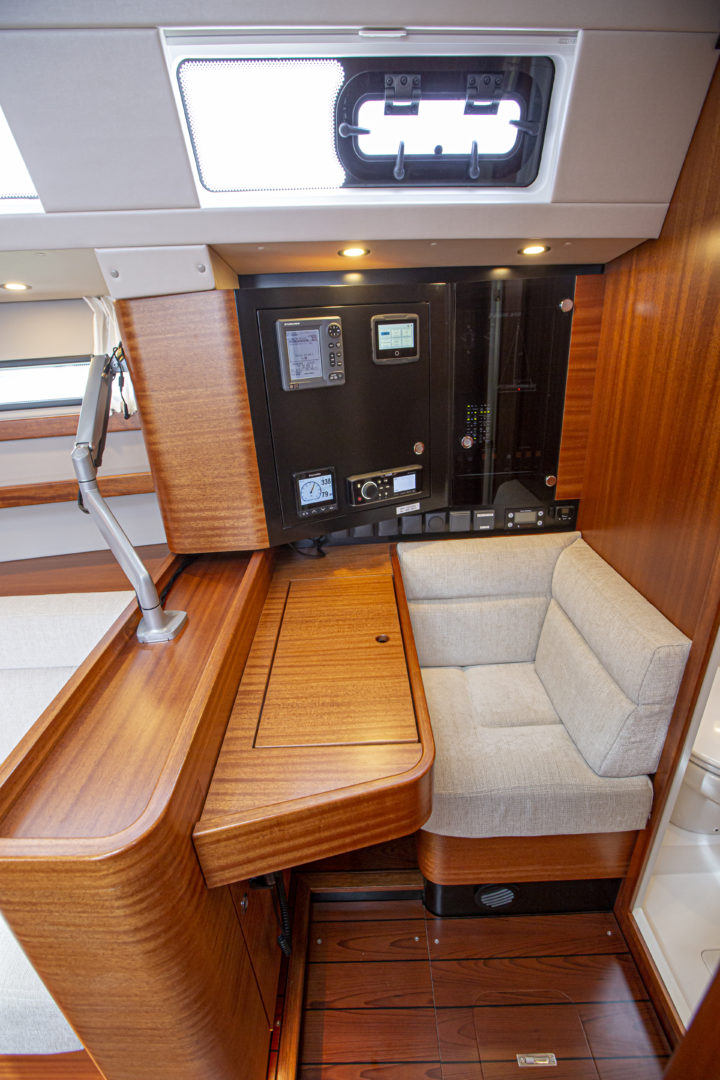 | Outside | Anchor chain counter, Electrical swimming platform, Cockpit shower, Cockpit table, Electr. anchor windlass, Electr. genoa winch, Solar panels, Teak deck |