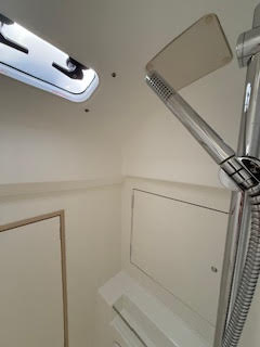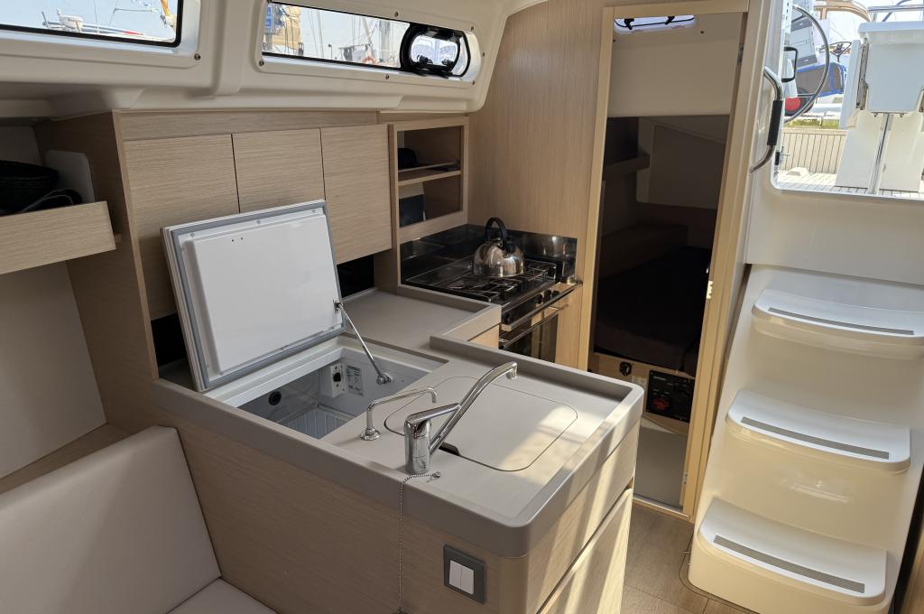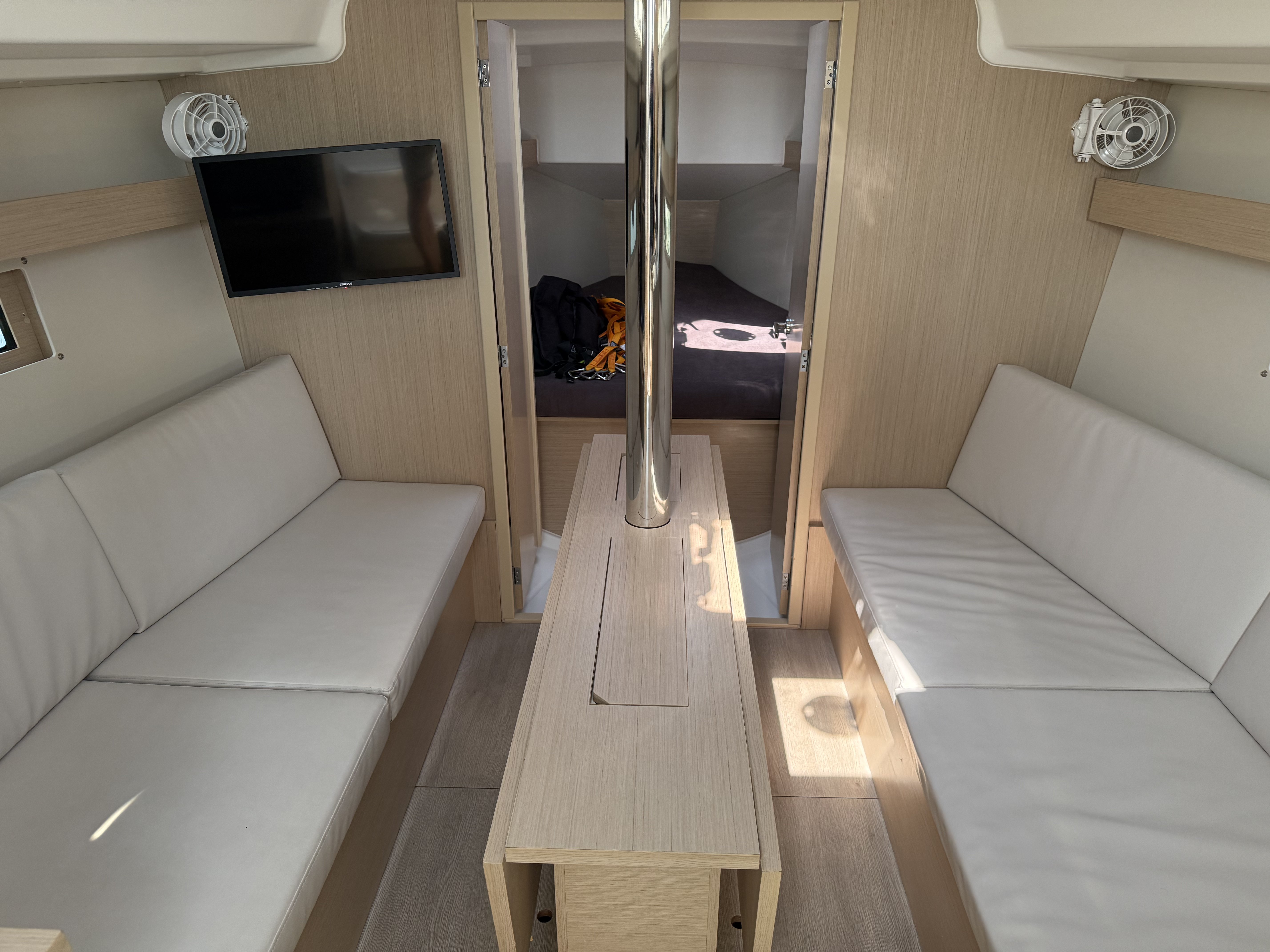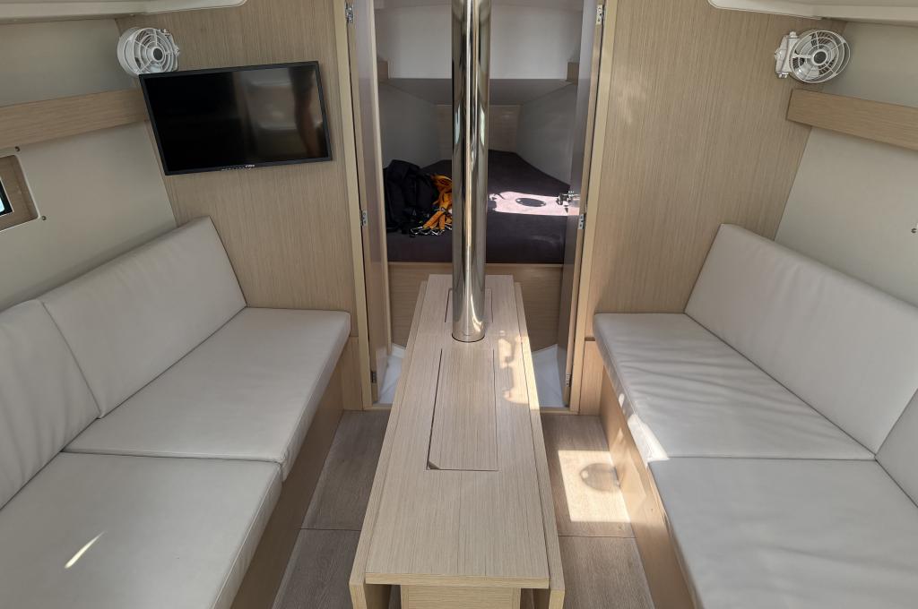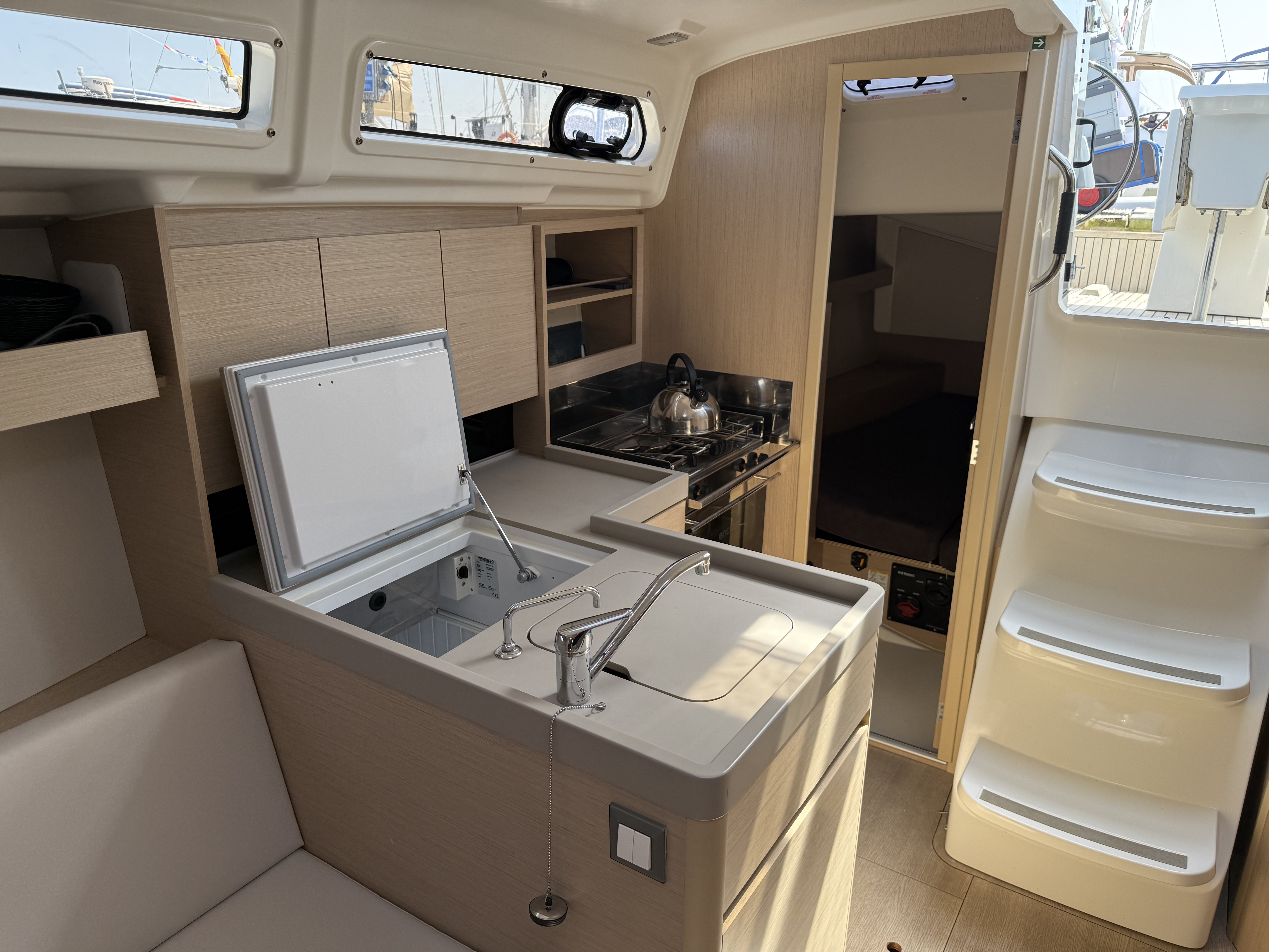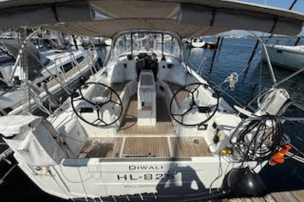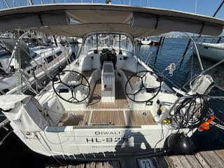 | Outside | Bathing platform, Bimini top, Boat hook, Cockpit shower hot/cold, Cockpit table, Anchor windlass electrical with chain counter, Teak on bathing platform, Teak in cockpit |