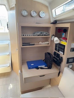 | Navigation | Binoculars with compass, Color chart plotter (GPS) in cockpit, Navigation set, Depth + Speed instruments, Anemometer |