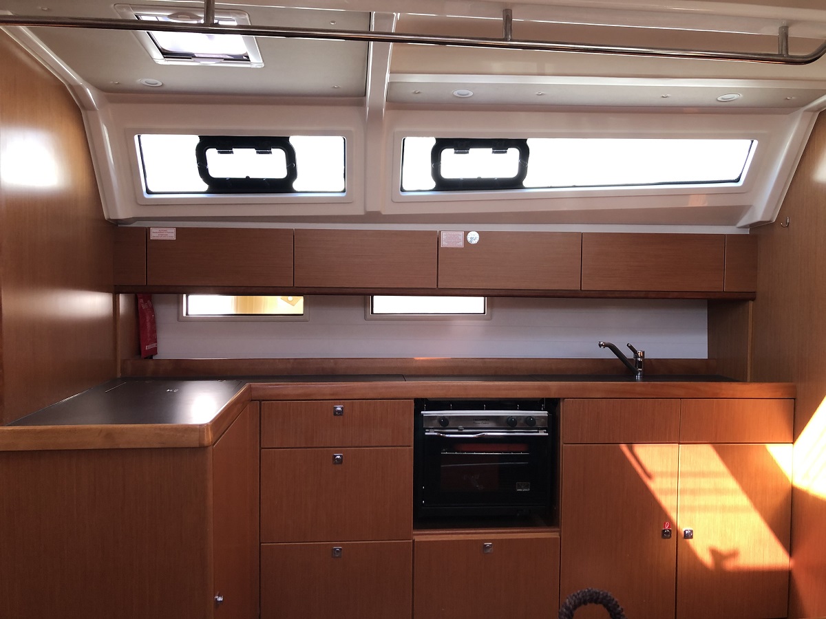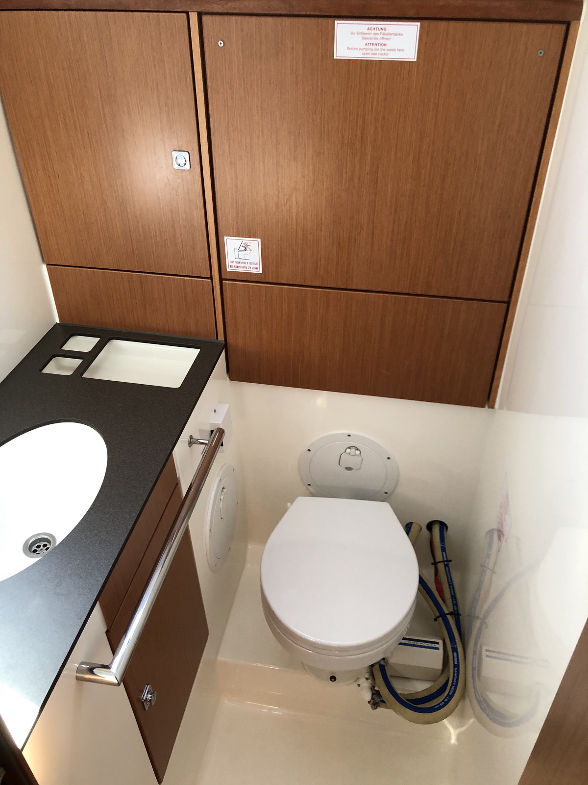| Outside | Anchor with chain, Bathing ladder, Bathing platform, Bimini top, Boat hook, Cockpit shower, Cockpit speakers, Cockpit cushions, Electr. anchor windlass, Mooring lines, Gangway, Solar panels, Sprayhood, Wire (shroud) cutter |
