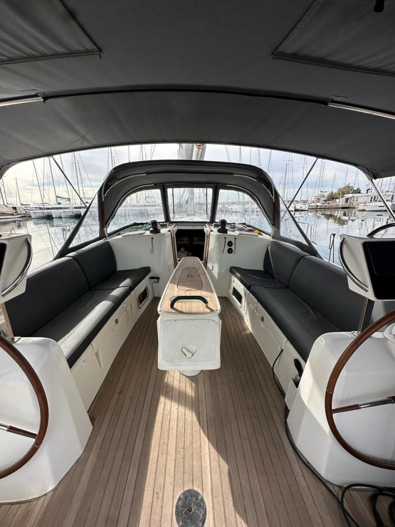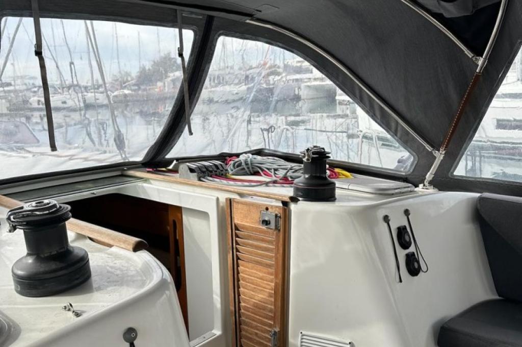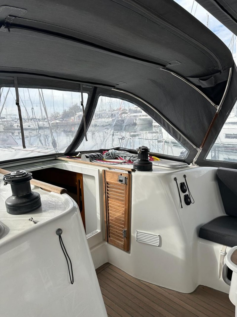 | Outside | 12V - connection, Cable 220V with battery charger, Bathing ladder, Bimini top, Boat hook, Cockpit cushions, Fender, Gangway, Solar panels, Sprayhood, Water hose |