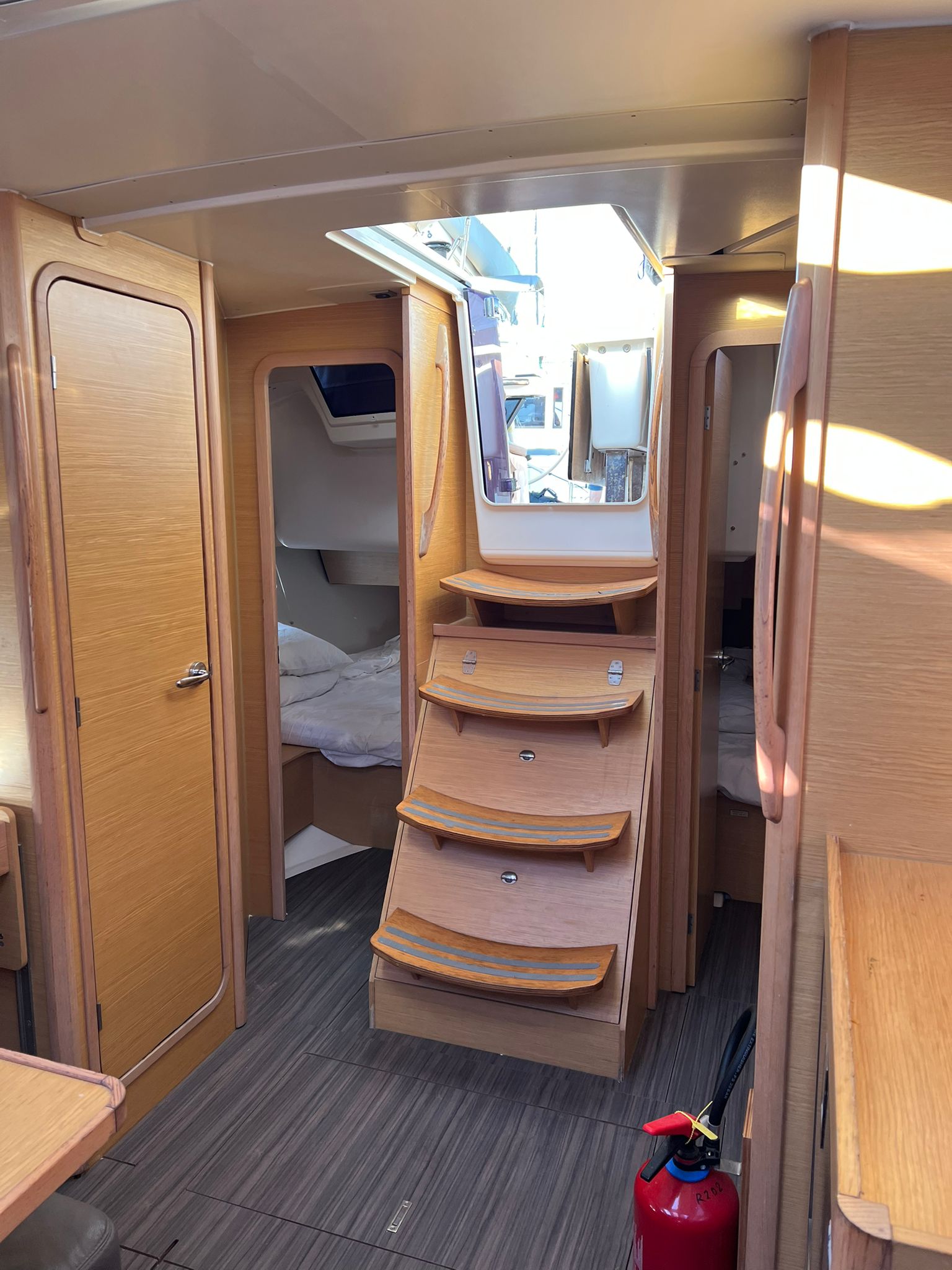 | Safety | AIS receiver, Autopilot, Bowthruster, Epirb, Solid life vests, Life vests for children, Lifebelts, Navigational lights, Radar reflector, Life raft, VHF Radio, Second anchor |