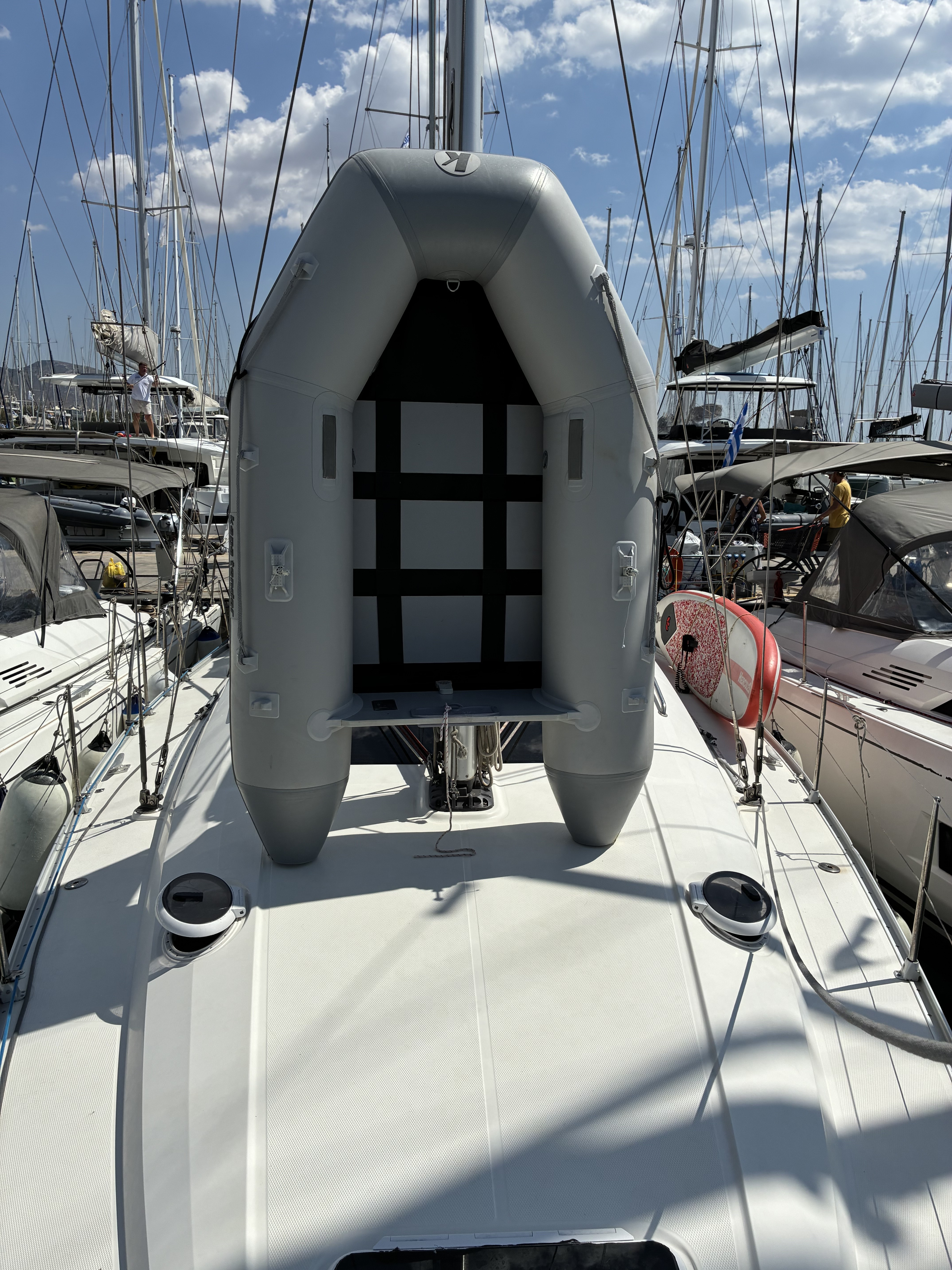 | Outside | 12V - connection, Bathing ladder, Bathing platform, Bimini top, Cockpit shower, Cockpit speakers, Cockpit cushions, Cockpit table, Electr. anchor windlass, Gangway, Self-tailing winches, Solar panels, Sprayhood, Windex |