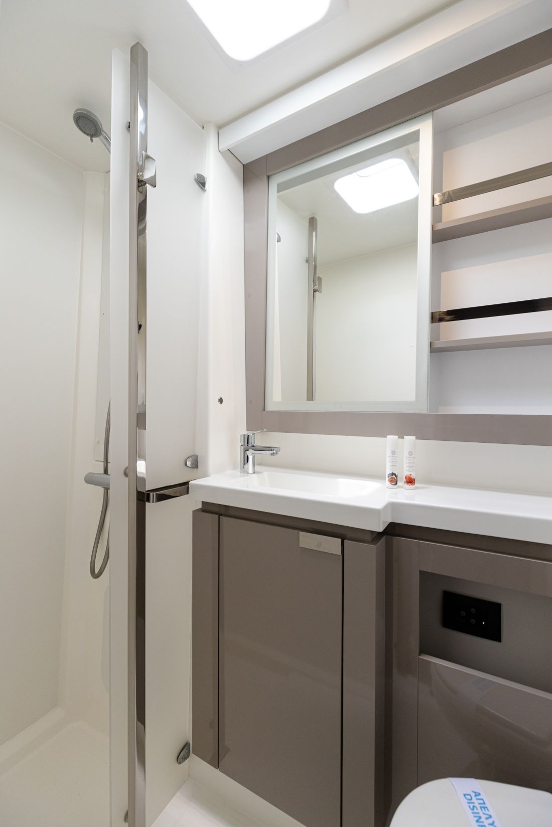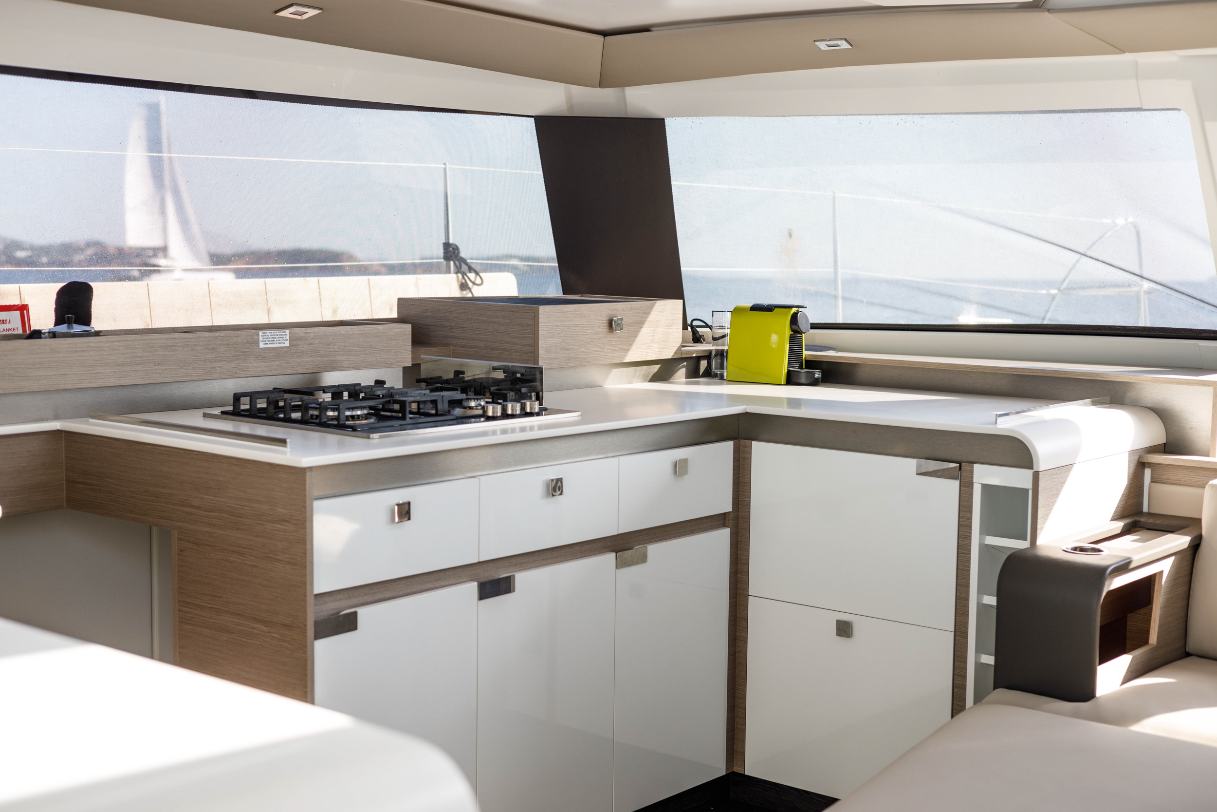| Inside | Gas oven, Generator, Inverter 12V/220V, Airconditioning (independent from shore power), Refrigerator, Battery charger, Pantry equipment, Radio CD player with USB and Bluetooth, Watermaker, WC (electr.) |