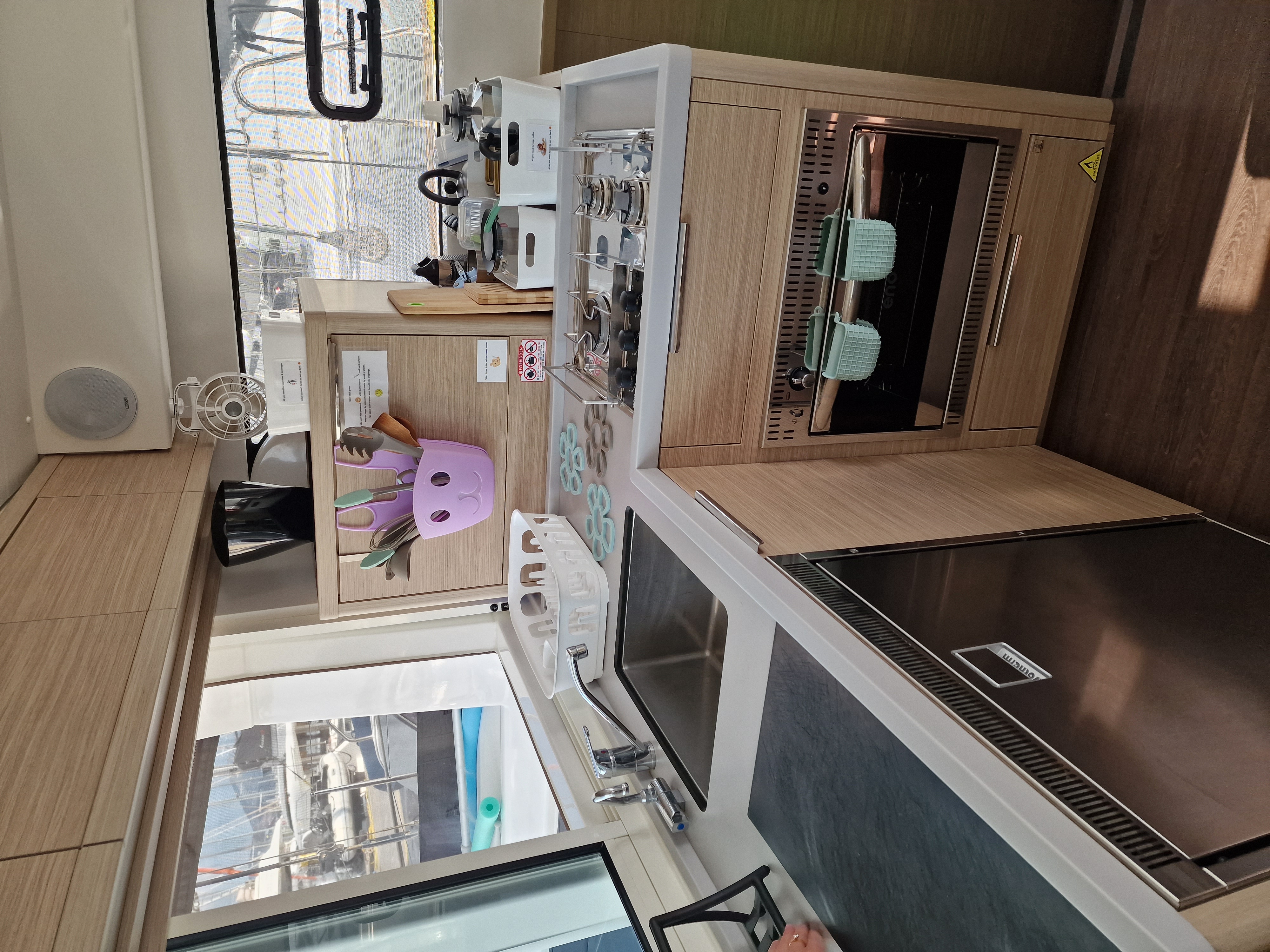 | Inside | 220V sockets, Bluetooth player, Freezer, Generator, Coffee machine, Airconditioning (independent from shore power), Refrigerator, Pantry equipment |