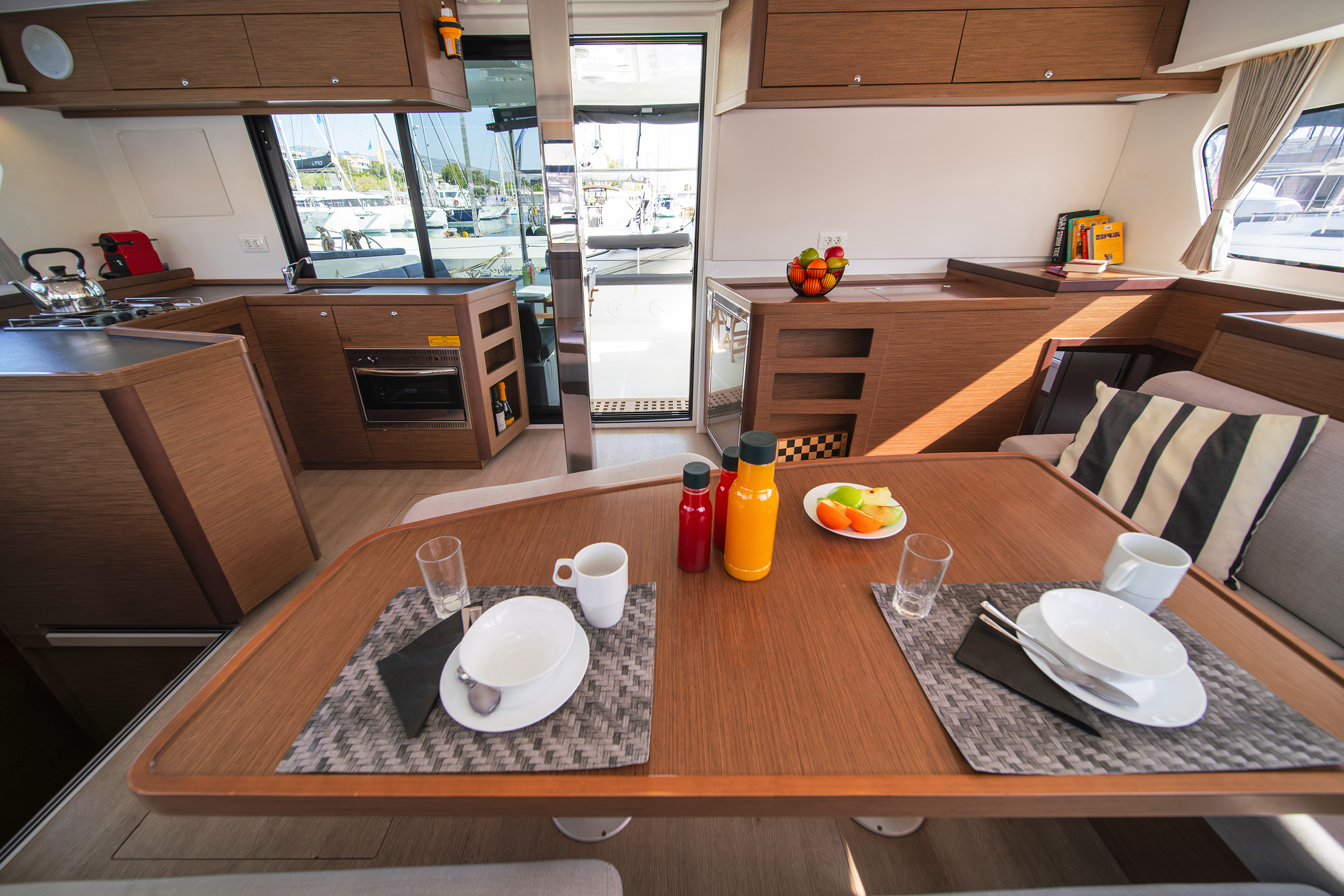 | Outside | Bimini top, Cockpit cushions, Gangway, Solar panels, Sprayhood |