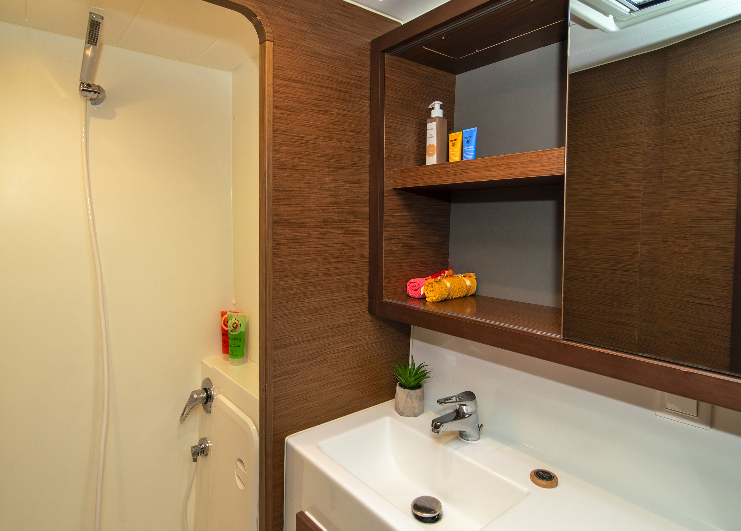 | Inside | Generator, Airconditioning (independent from shore power), Pantry equipment, Radio, WC (electr.) |