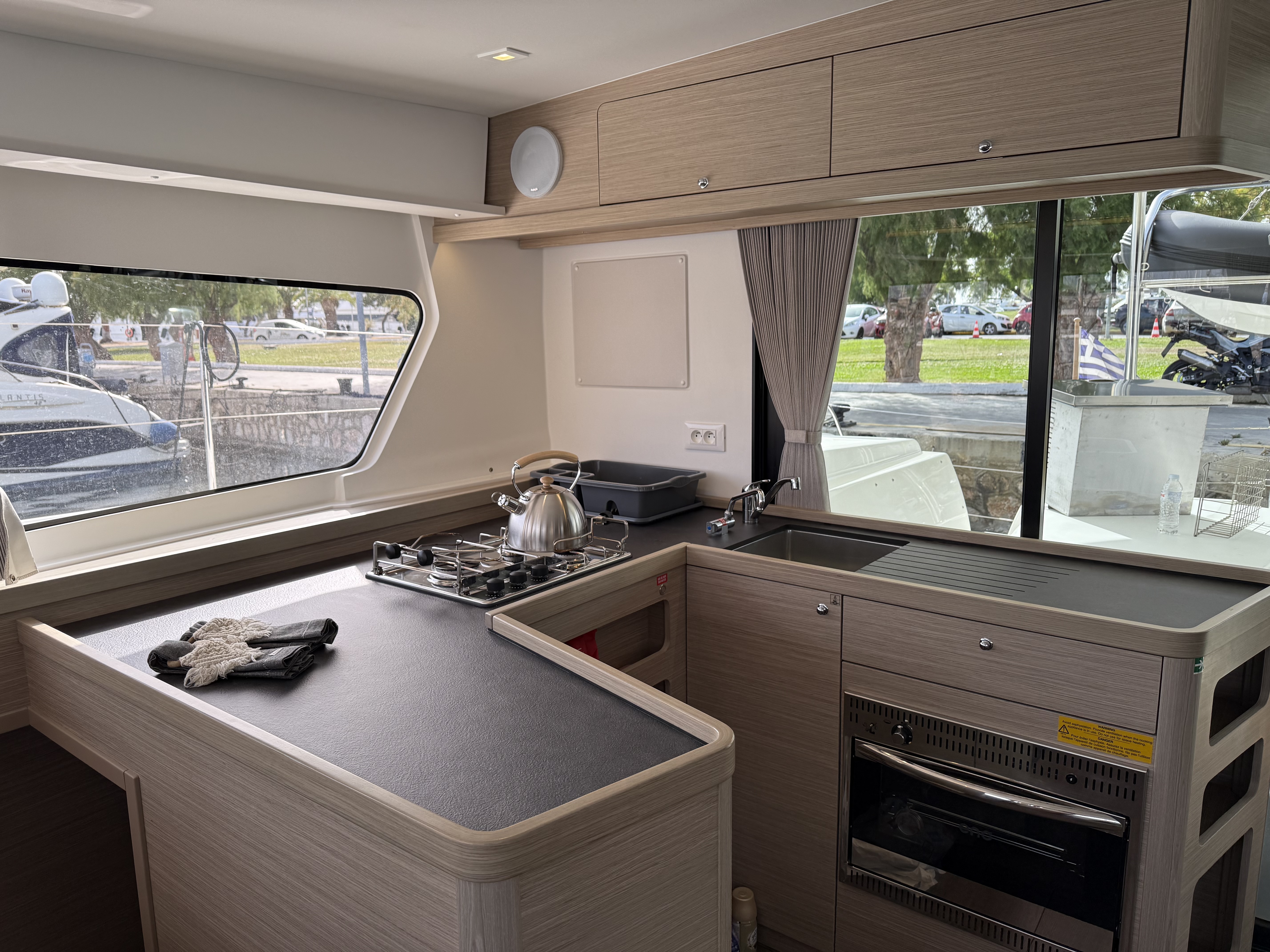 | Inside | Generator, Inverter 12V/220V, Coffee machine, Airconditioning (independent from shore power), Refrigerator, USB Socket, Warm water, Watermaker, WC (electr.) |