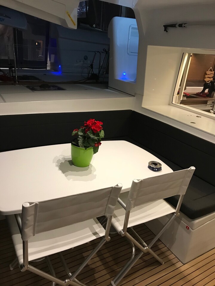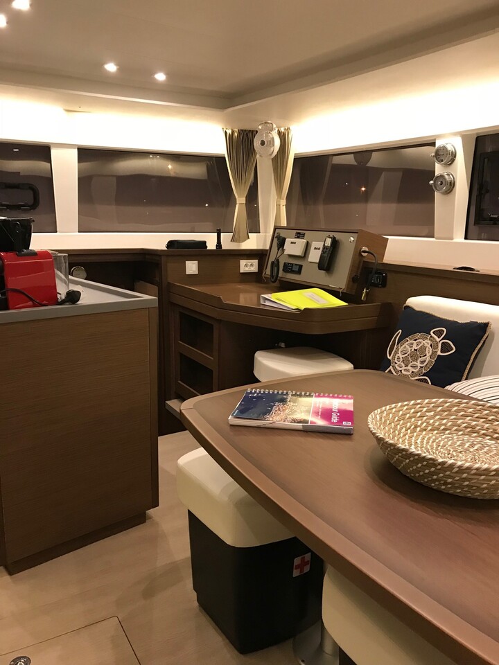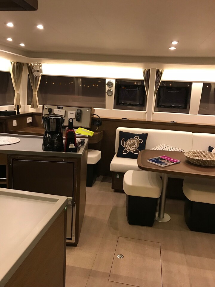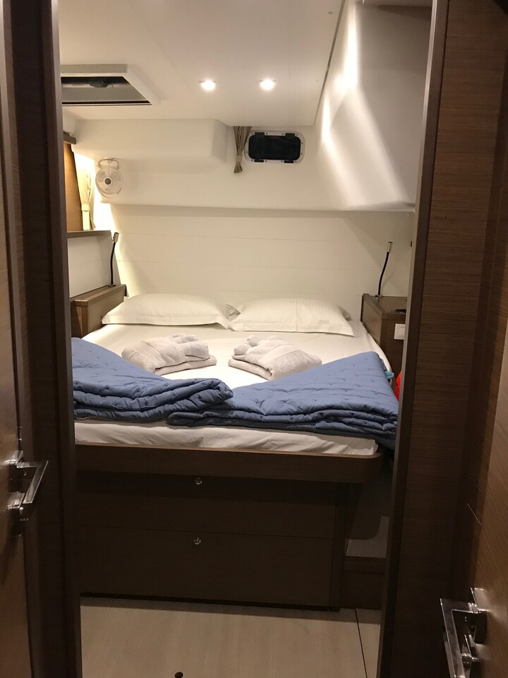 | Inside | Clock, Gas oven, Generator, Crockery, Airconditioning (independent from shore power), Refrigerator, Pantry equipment, Radio with MP3, Watermaker |