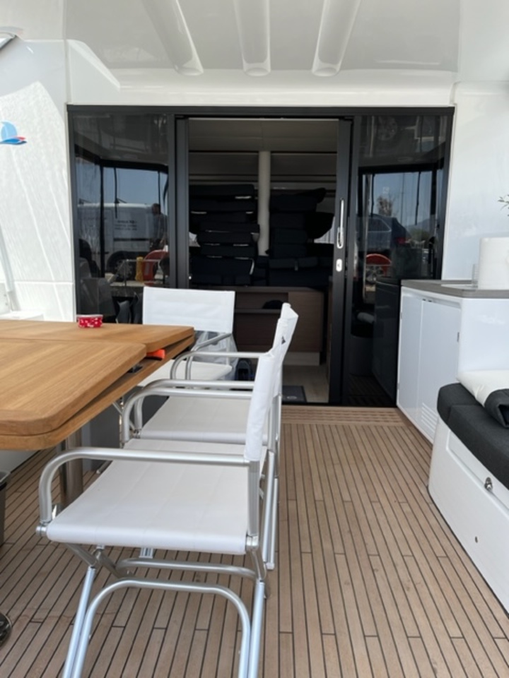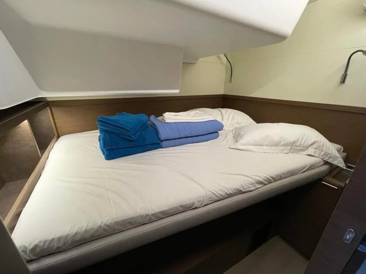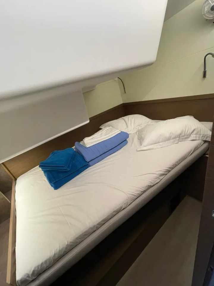 | Inside | Clock, Gas oven, Generator, Crockery, Airconditioning (independent from shore power), Refrigerator, Pantry equipment, Radio with MP3, Watermaker |