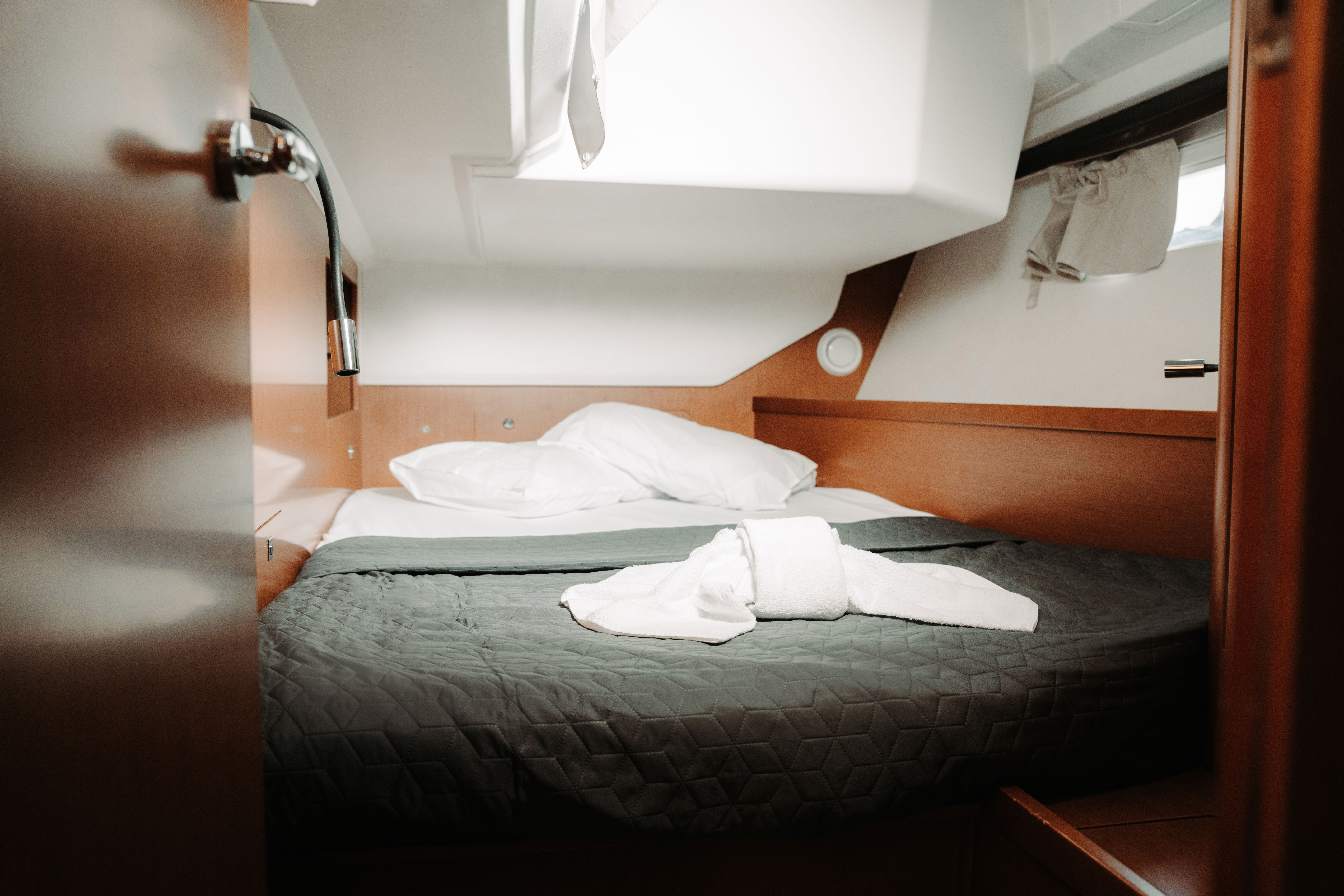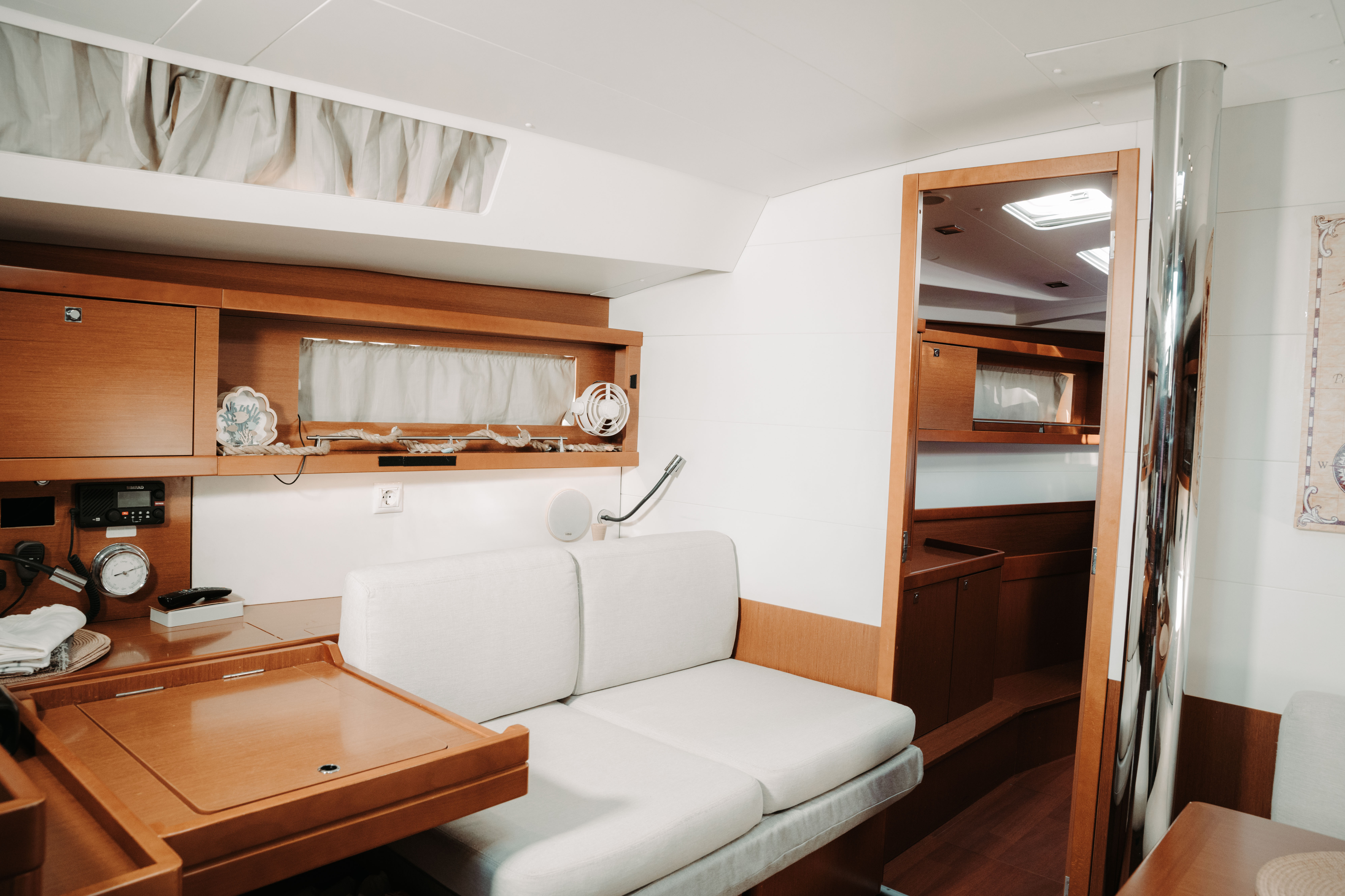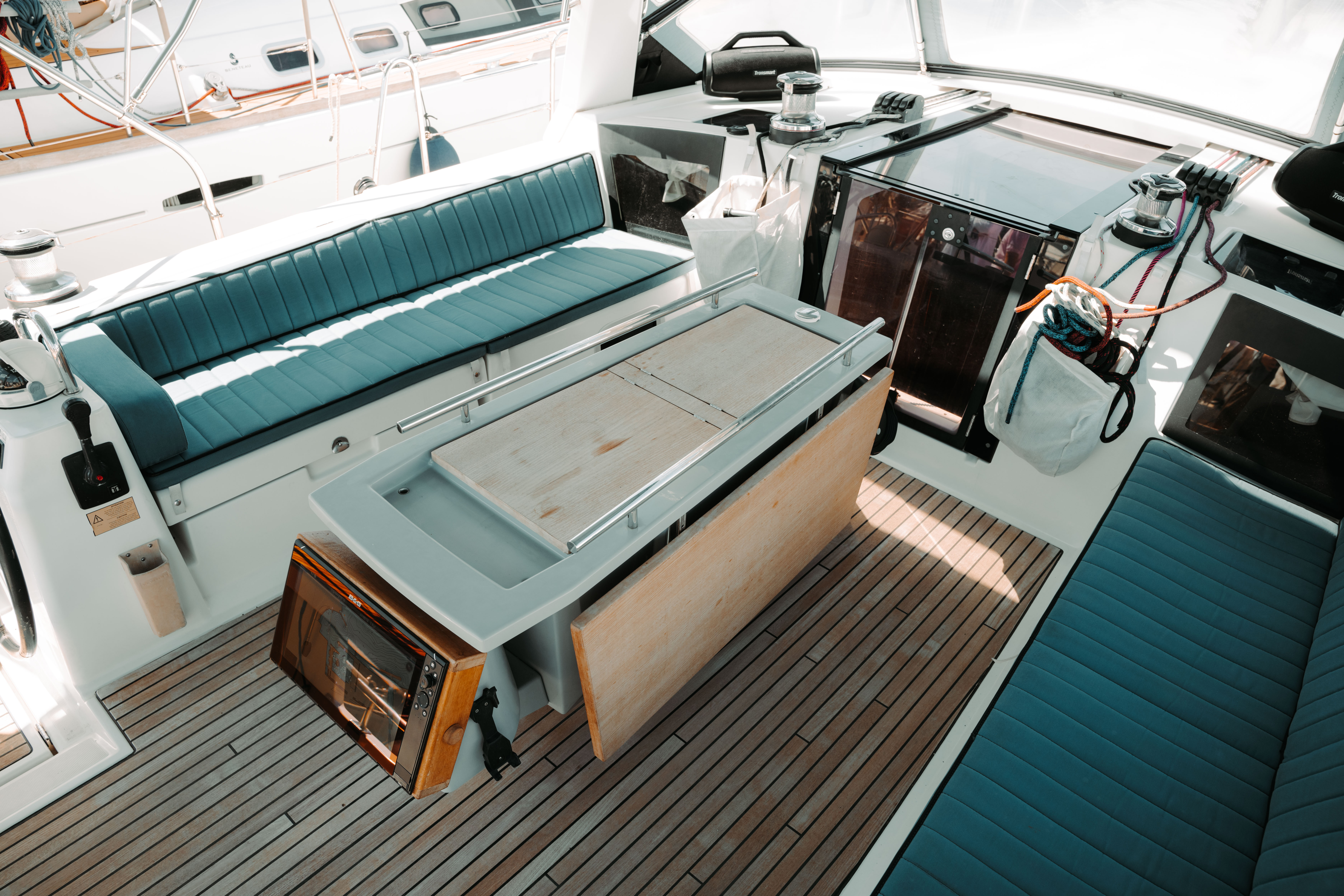 | Safety | Autopilot, First aid kit, Bowthruster, Solid life vests, Fire extinguisher, Light buoy, Navigational lights, Distress signals, Life raft, VHF Radio, Second anchor |