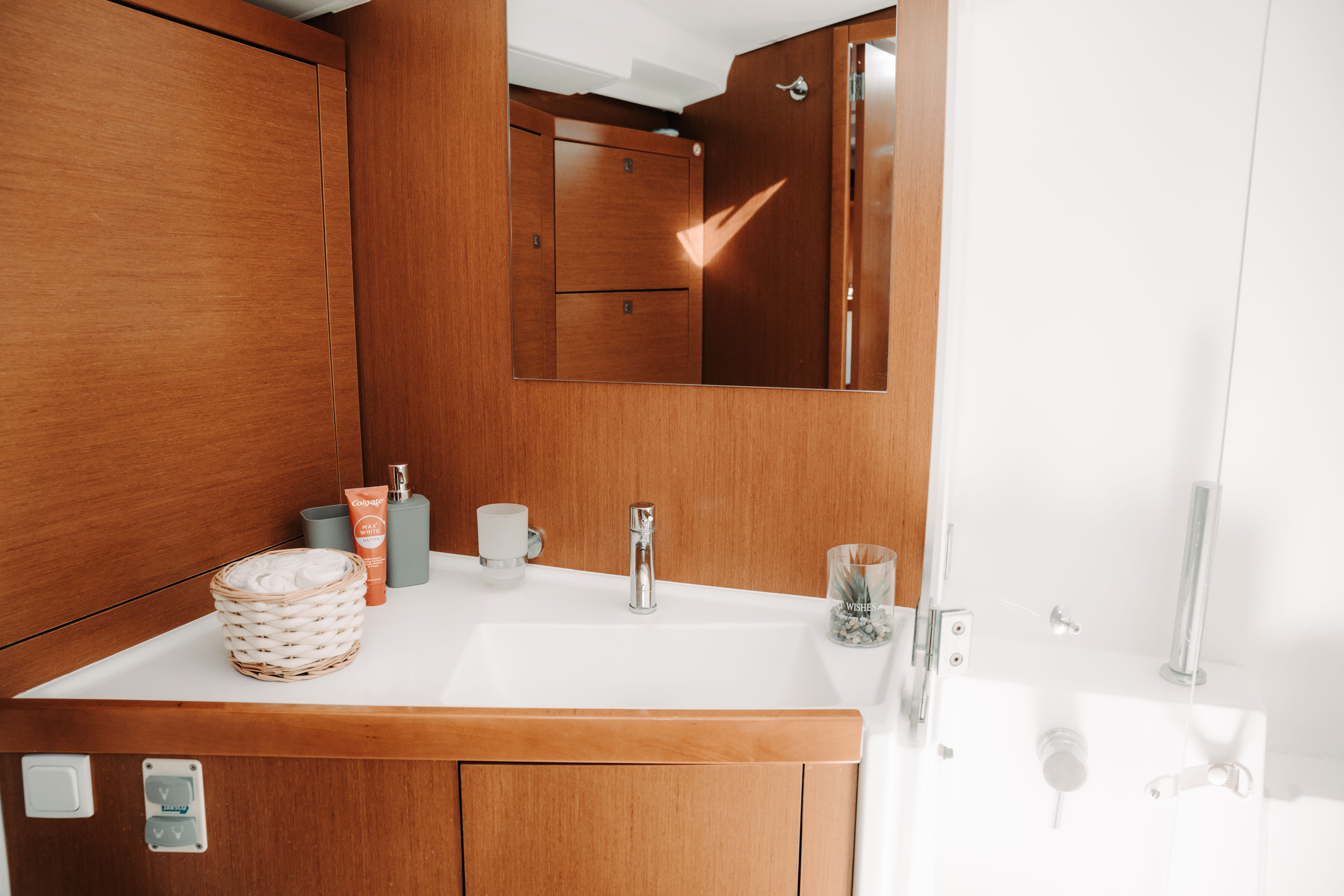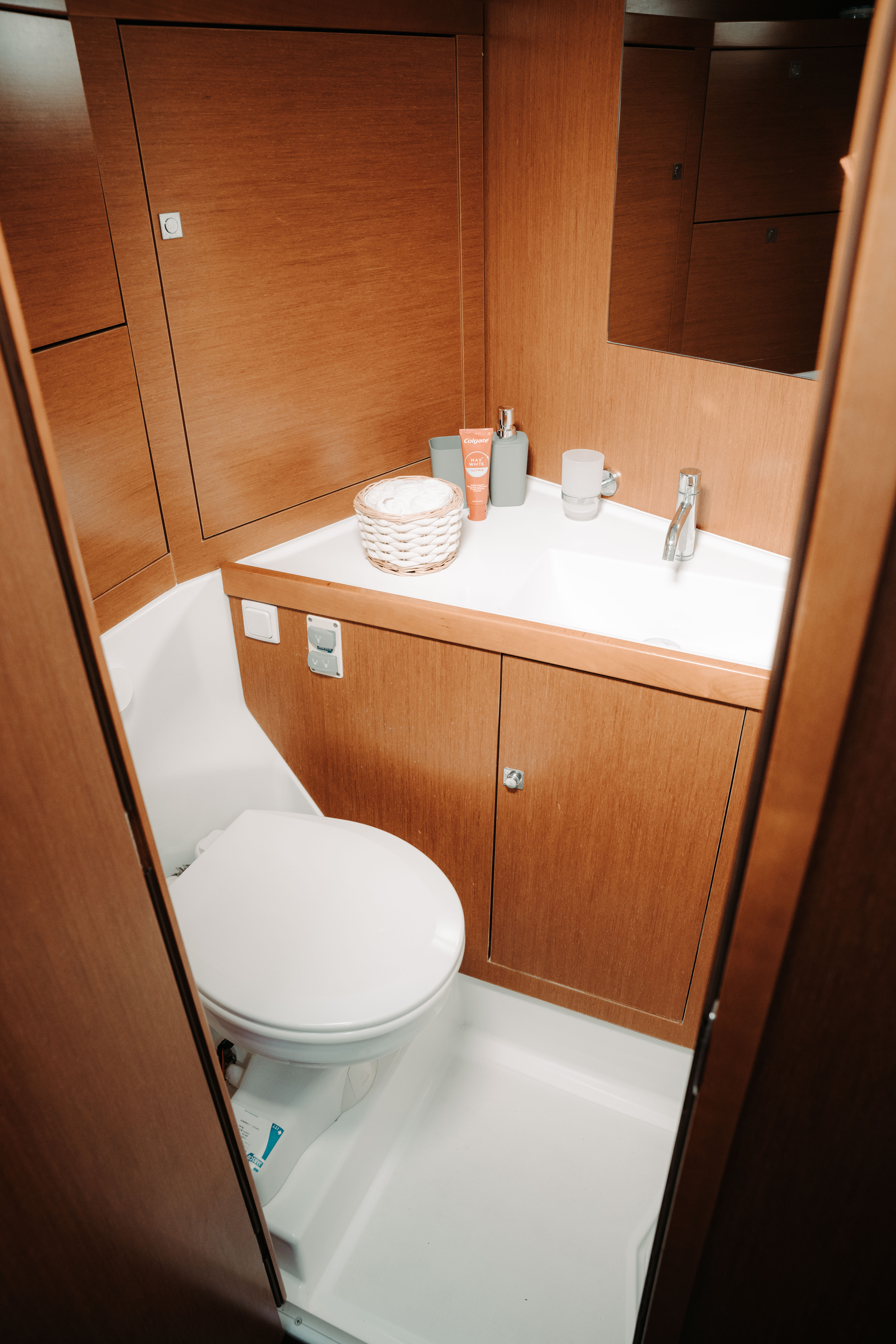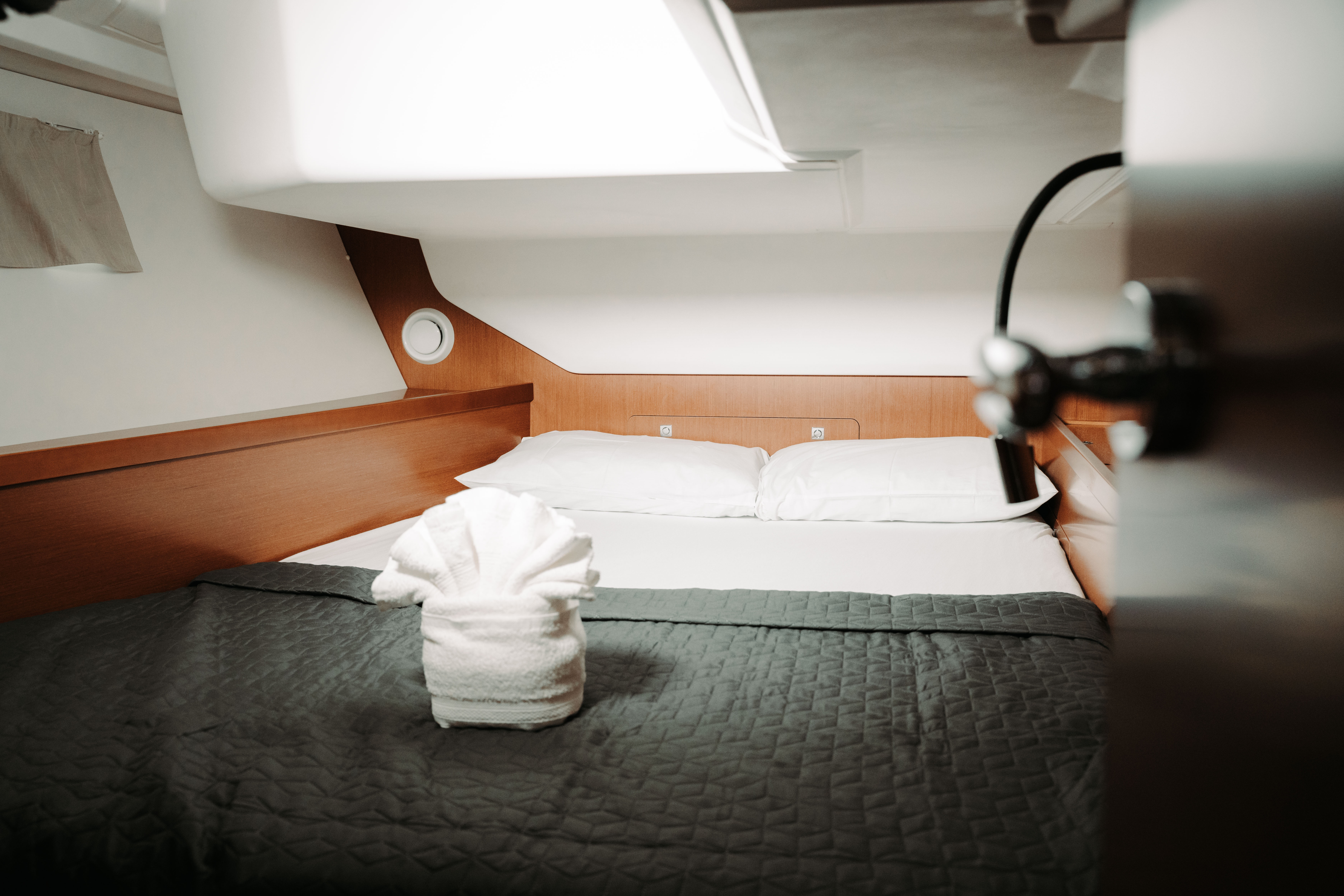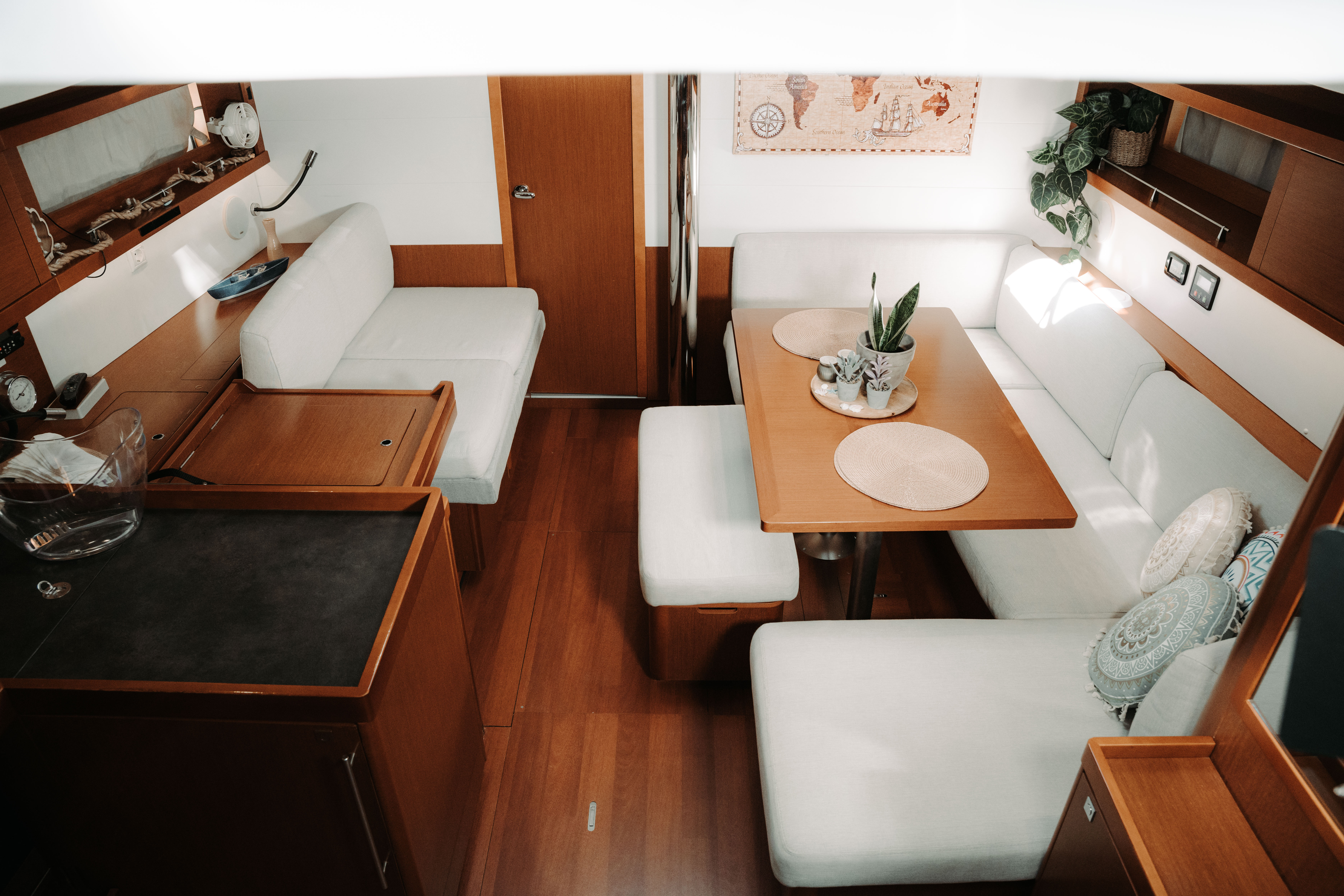 | Safety | Autopilot, First aid kit, Bowthruster, Solid life vests, Fire extinguisher, Light buoy, Navigational lights, Distress signals, Life raft, VHF Radio, Second anchor |